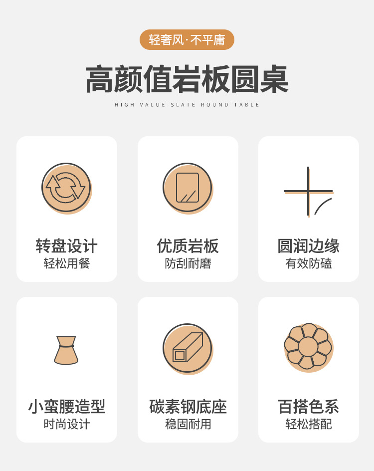 | Artículo No. | Mesa de comedor de placa Round Rock 07 |