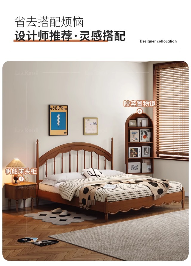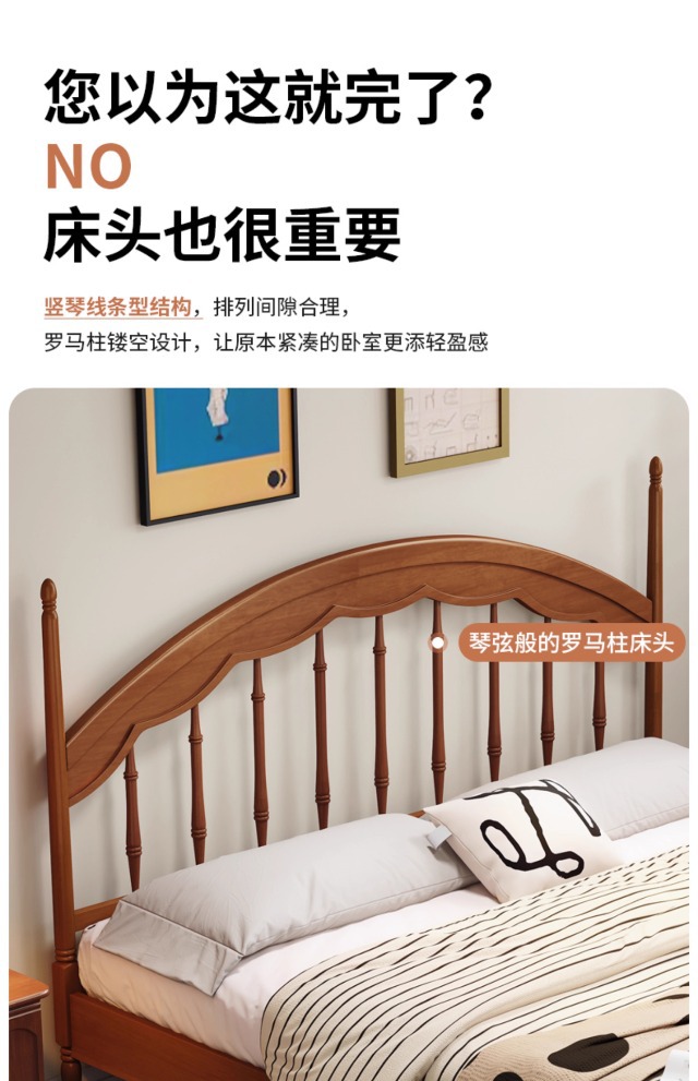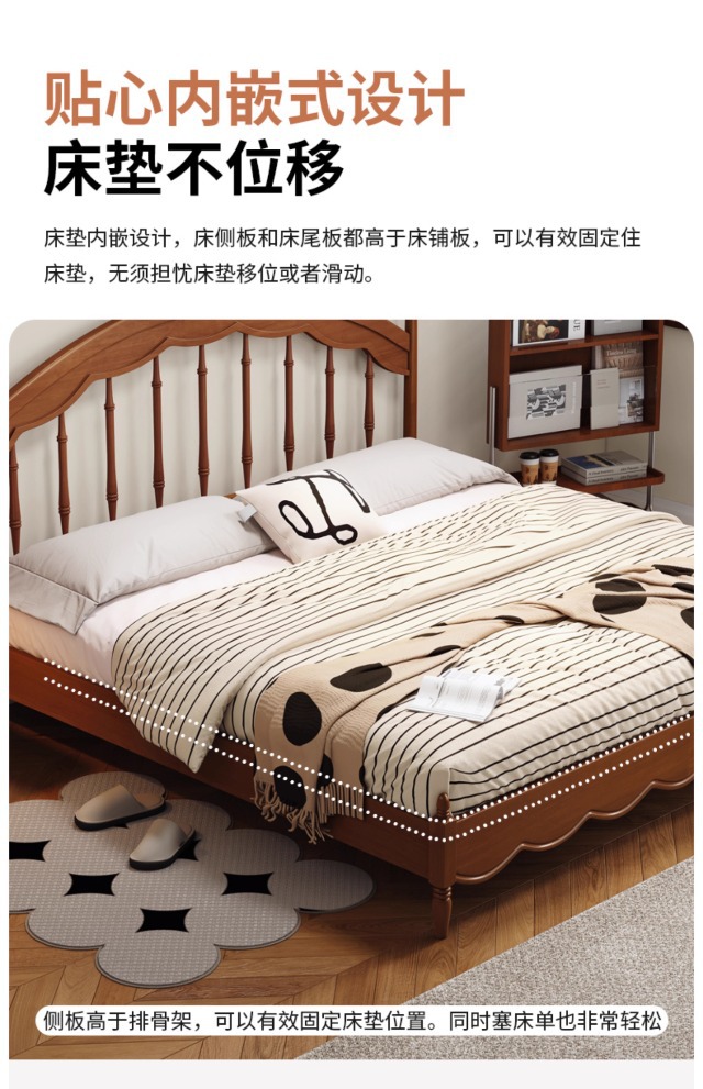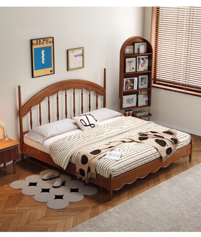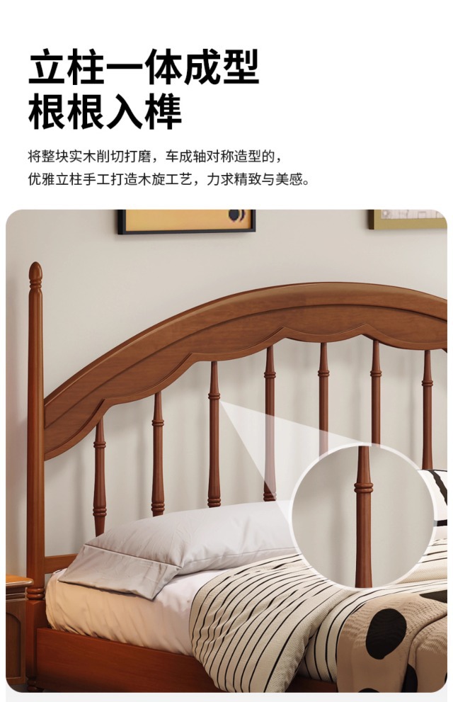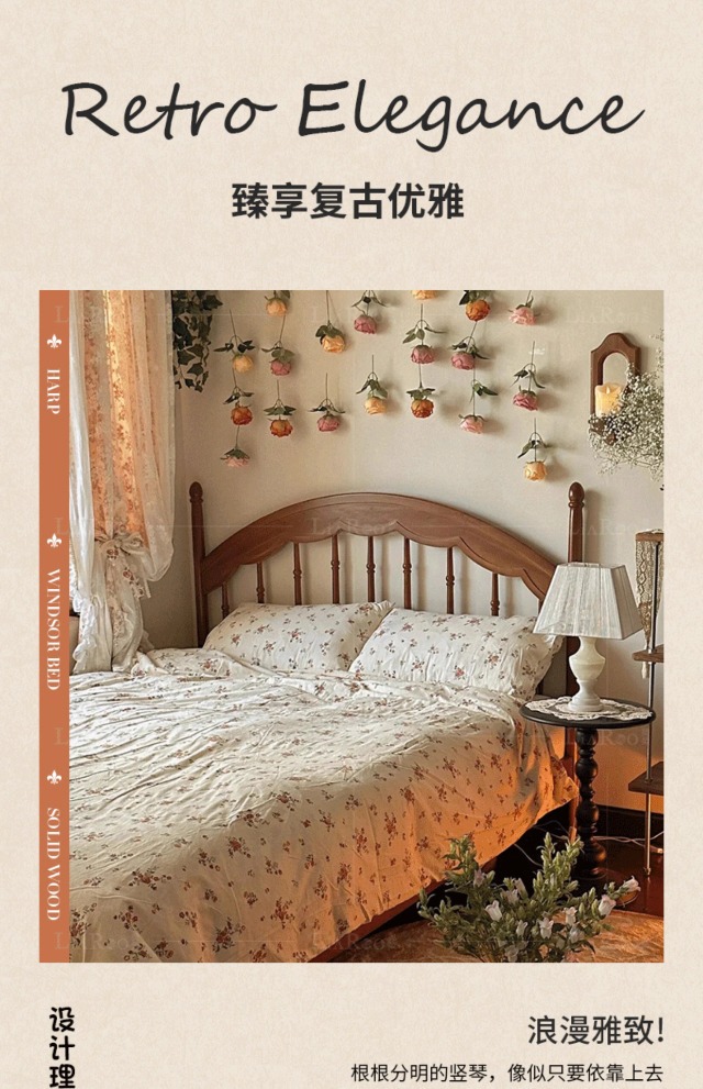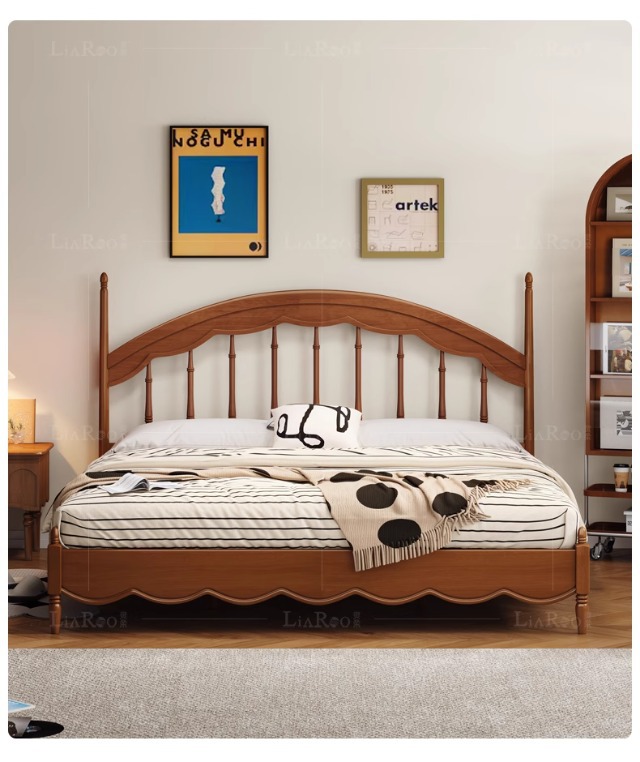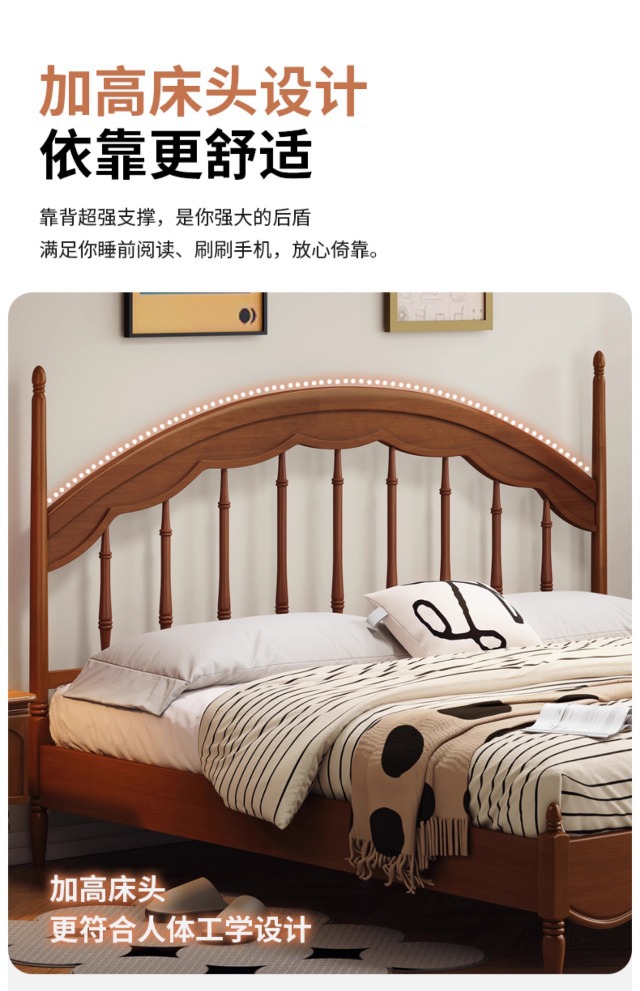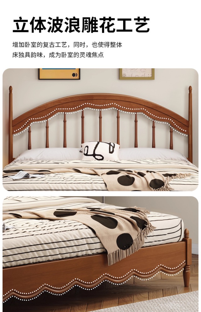 Cama Windsor medieval Cama de arpa Retro francés 1 metro 8 Dormitorio principal Muebles de madera maciza Cama doble Cama de almacenamiento