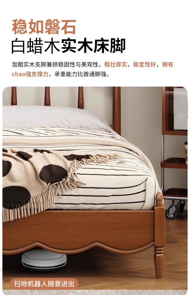 Cama silenciosa de estilo crema blanca nórdica moderna simple cama de madera maciza 1.5m 1.8 cama principal cama económica