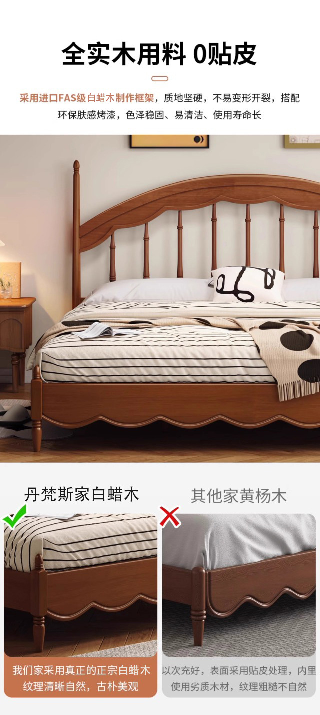 Cama de madera maciza nórdica 1,5 m cera blanca cama doble moderna minimalista 1,8 dormitorio principal muebles de madera maciza estilo de registro cama de boda