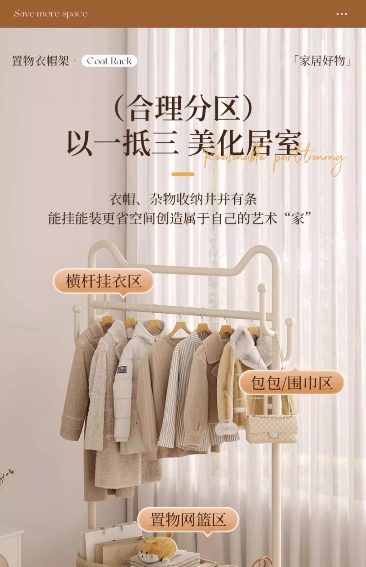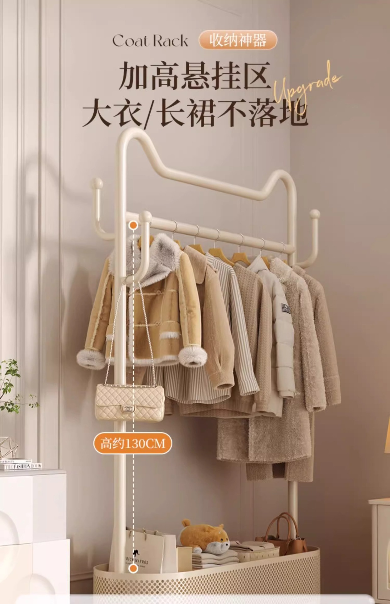 | Estante de almacenamiento para percheros | Dormitorio de piso con perchero grueso y grueso |
