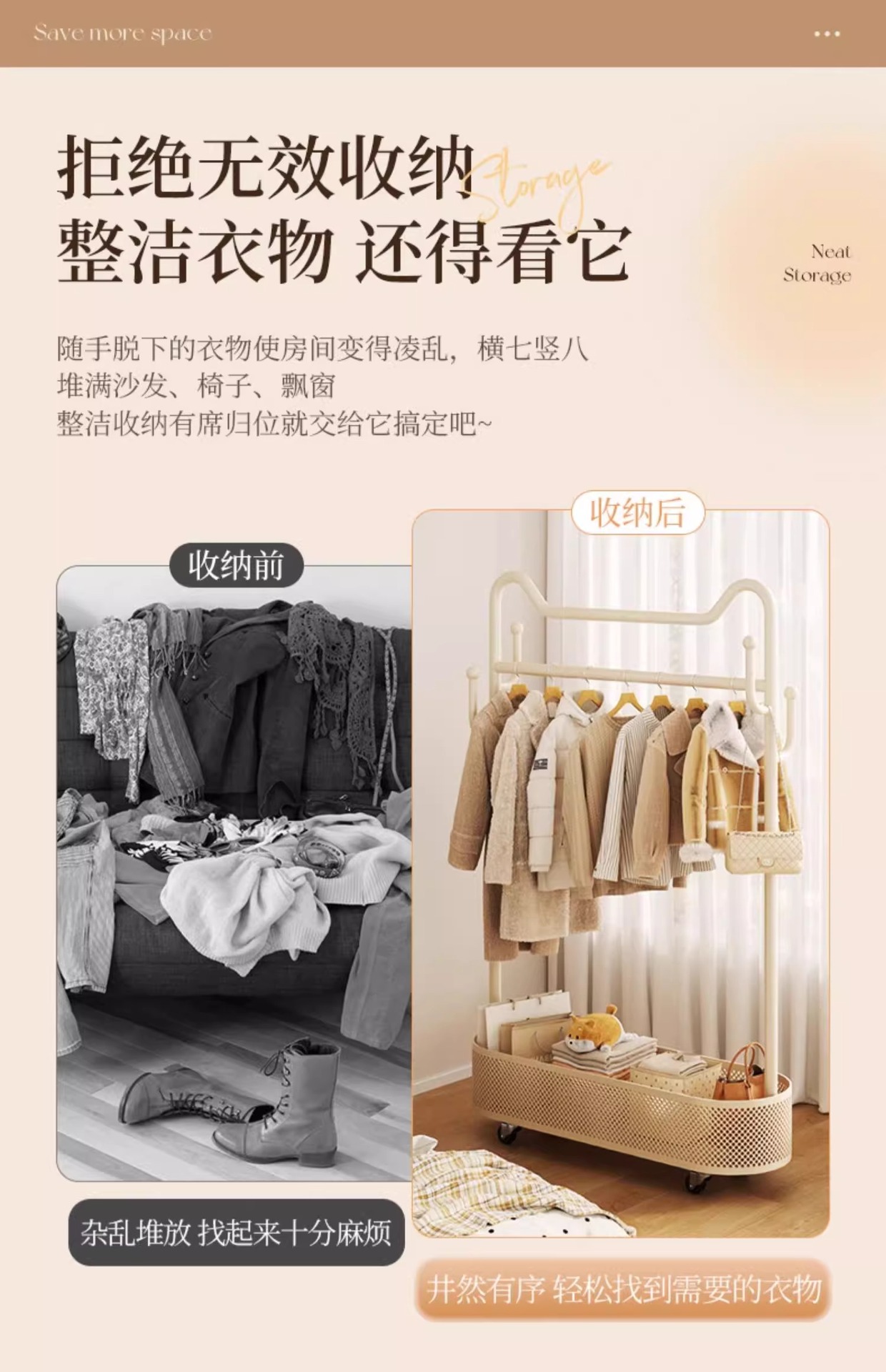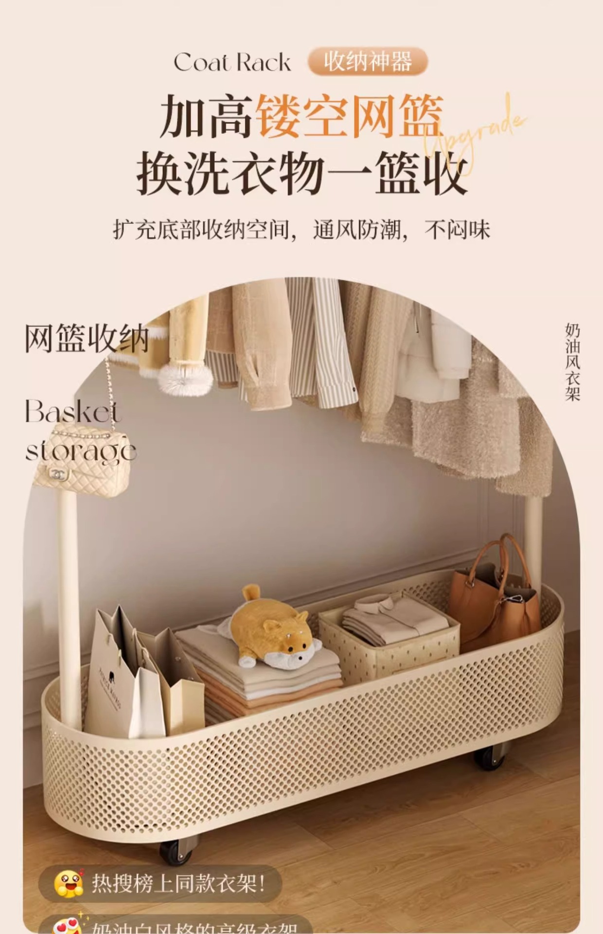 | Estante de almacenamiento para perchero | Cesta de almacenamiento para perchero |