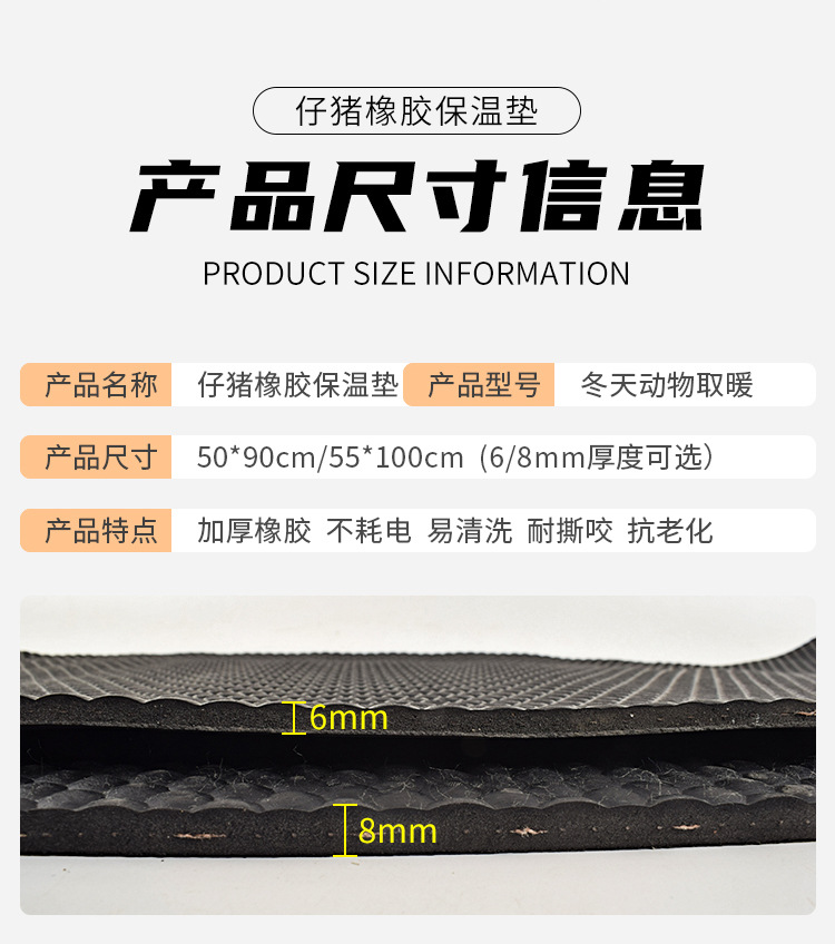 | Tipo | Almohadilla térmica de caucho para lechones |