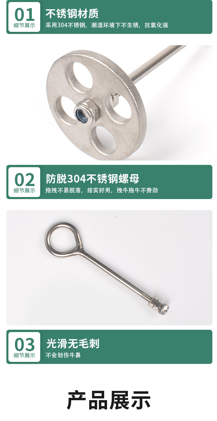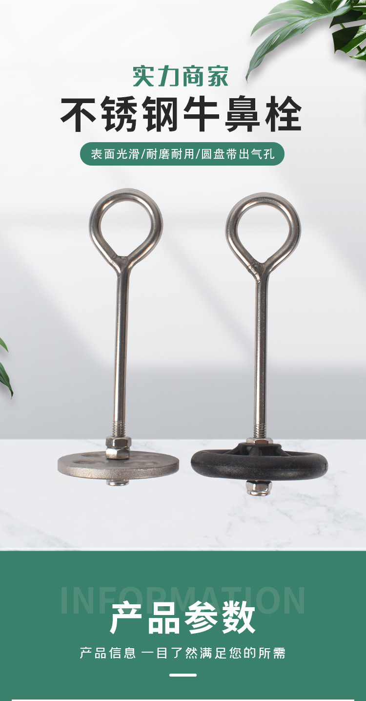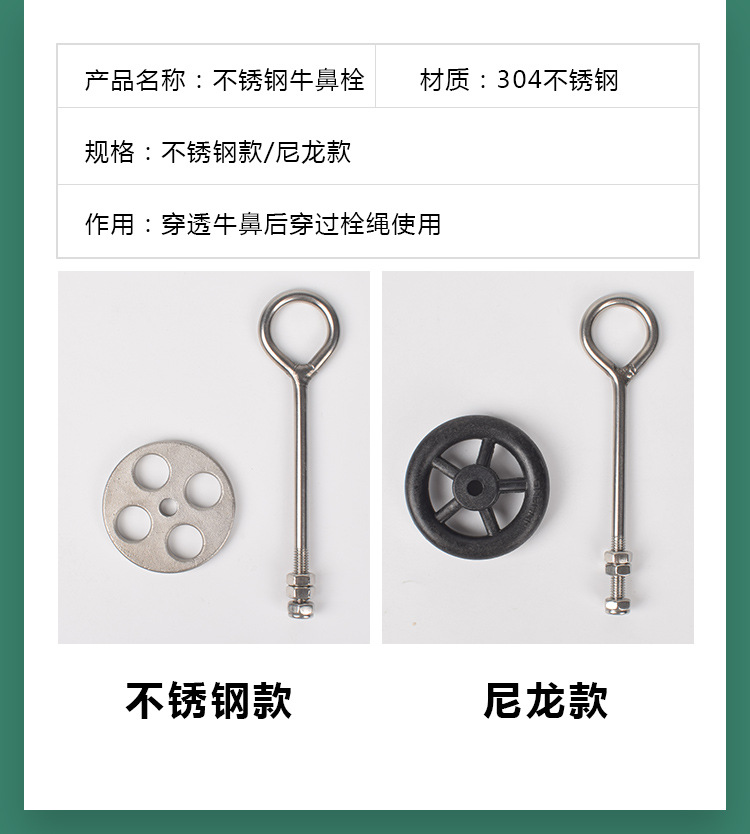 | Especificaciones del producto | Anillo de nylon gran nariz de buey Bolt 1,Una nariz de buey grande de acero inoxidable Bolt |