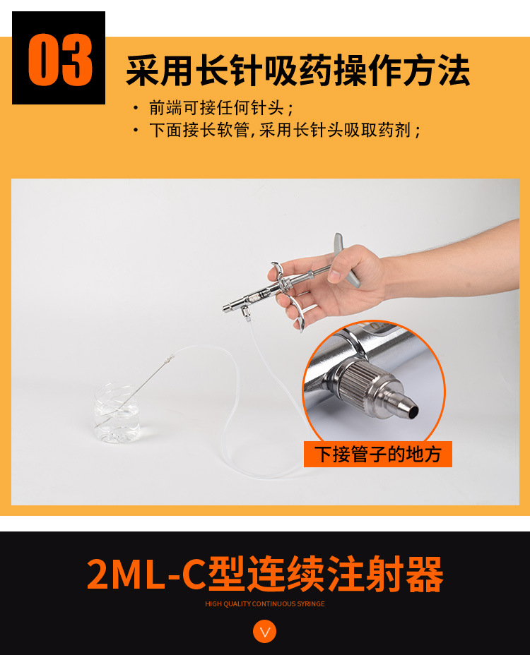 Vacuna de pollo jeringa continua ajustable veterinaria de acero inoxidable Dispositivo de medicina jeringa automática Dispositivo de inyección de ganso de pato