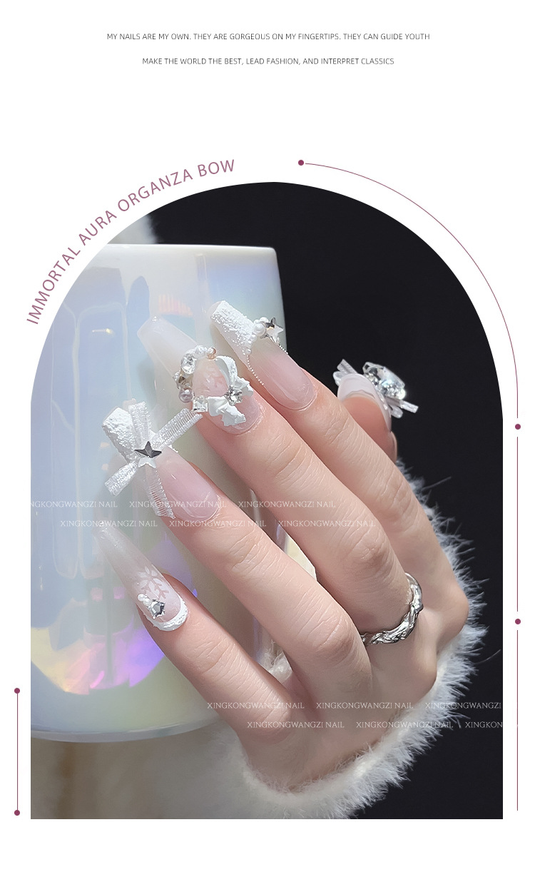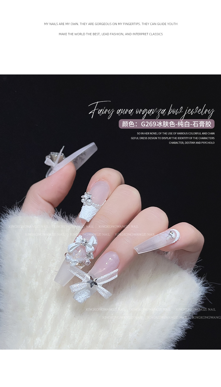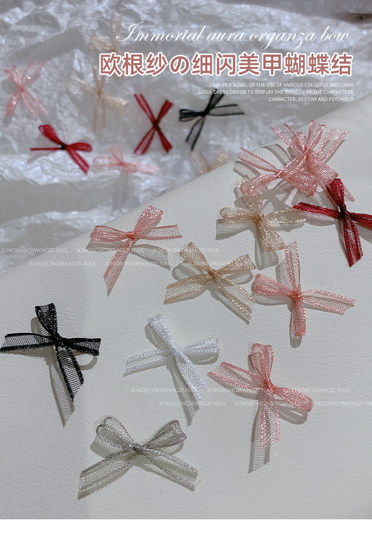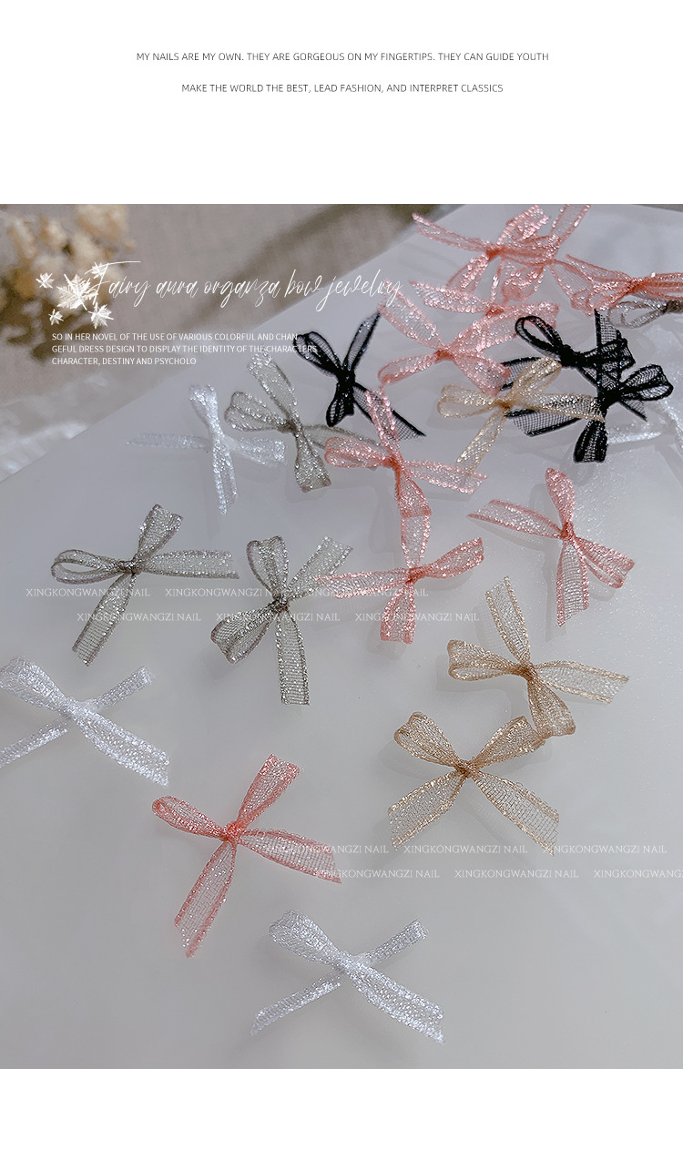 Decoraciones de Uñas con Lazo de Organza y Purpurina Fina, Populares en Internet, Novedad Otoño-Invierno, Accesorios para Uñas con Diseño de Zapatos de Ballet