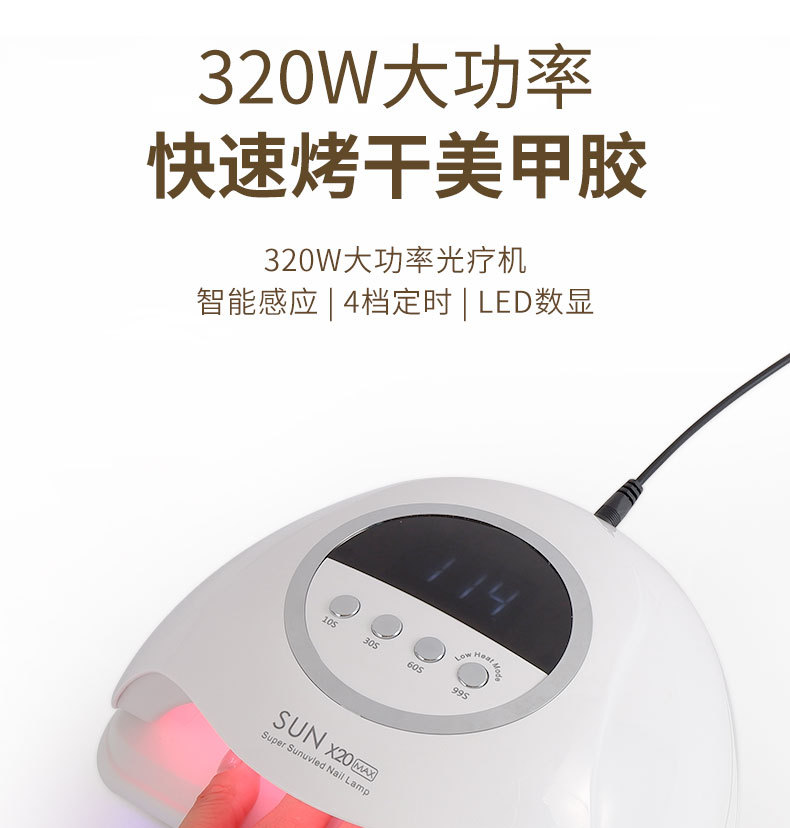 320W lámpara de uñas de alta potencia máquina de fototerapia esmalte de uñas UV pegamento lámpara para hornear secado de uñas de secado rápido luz de curado transfronterizo