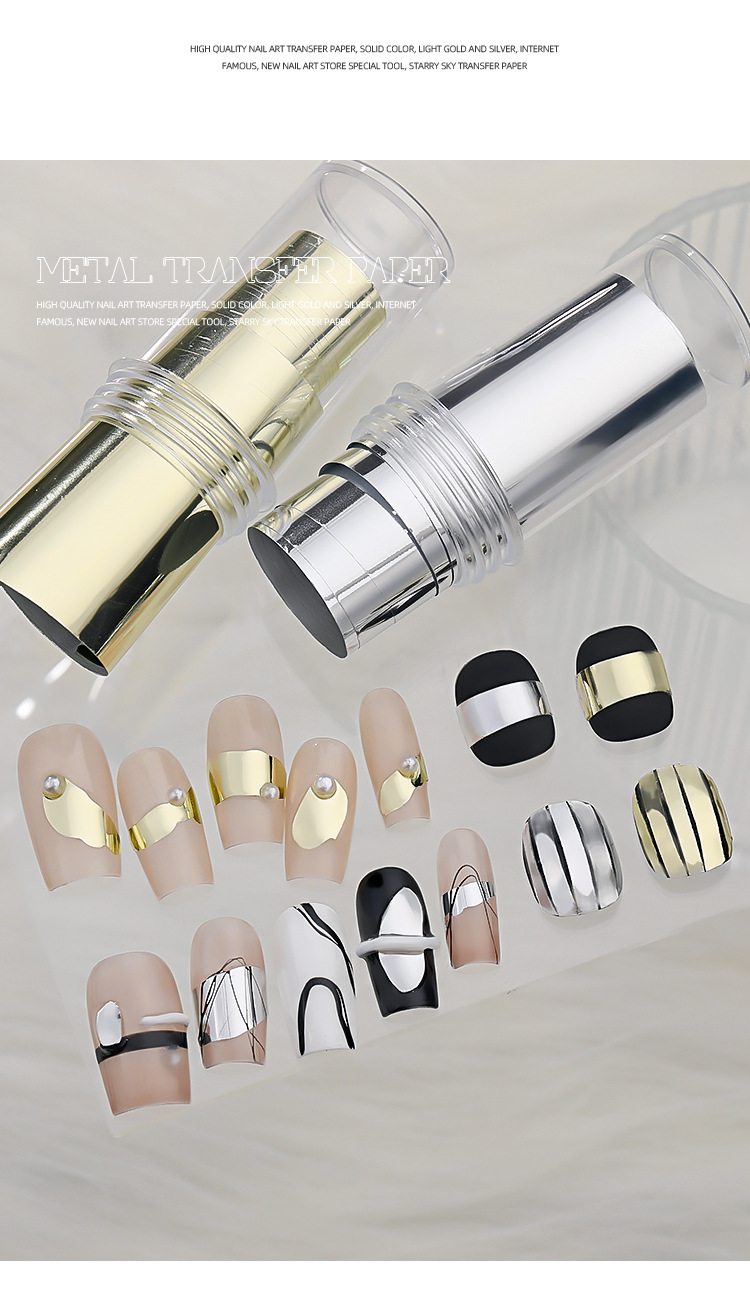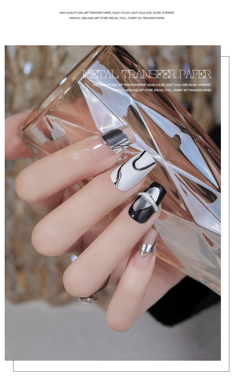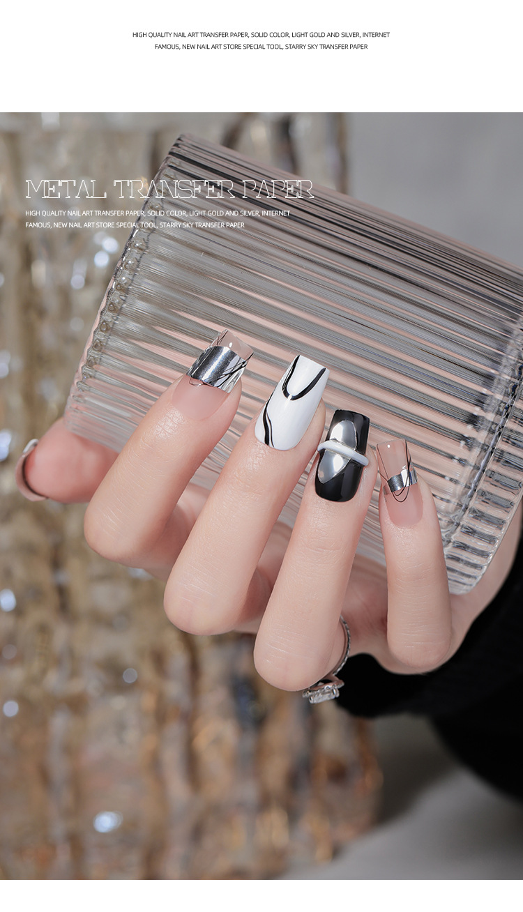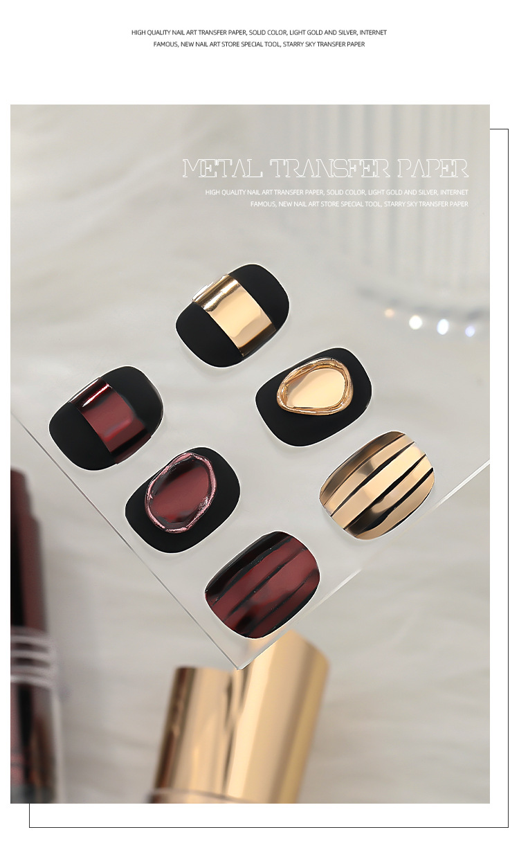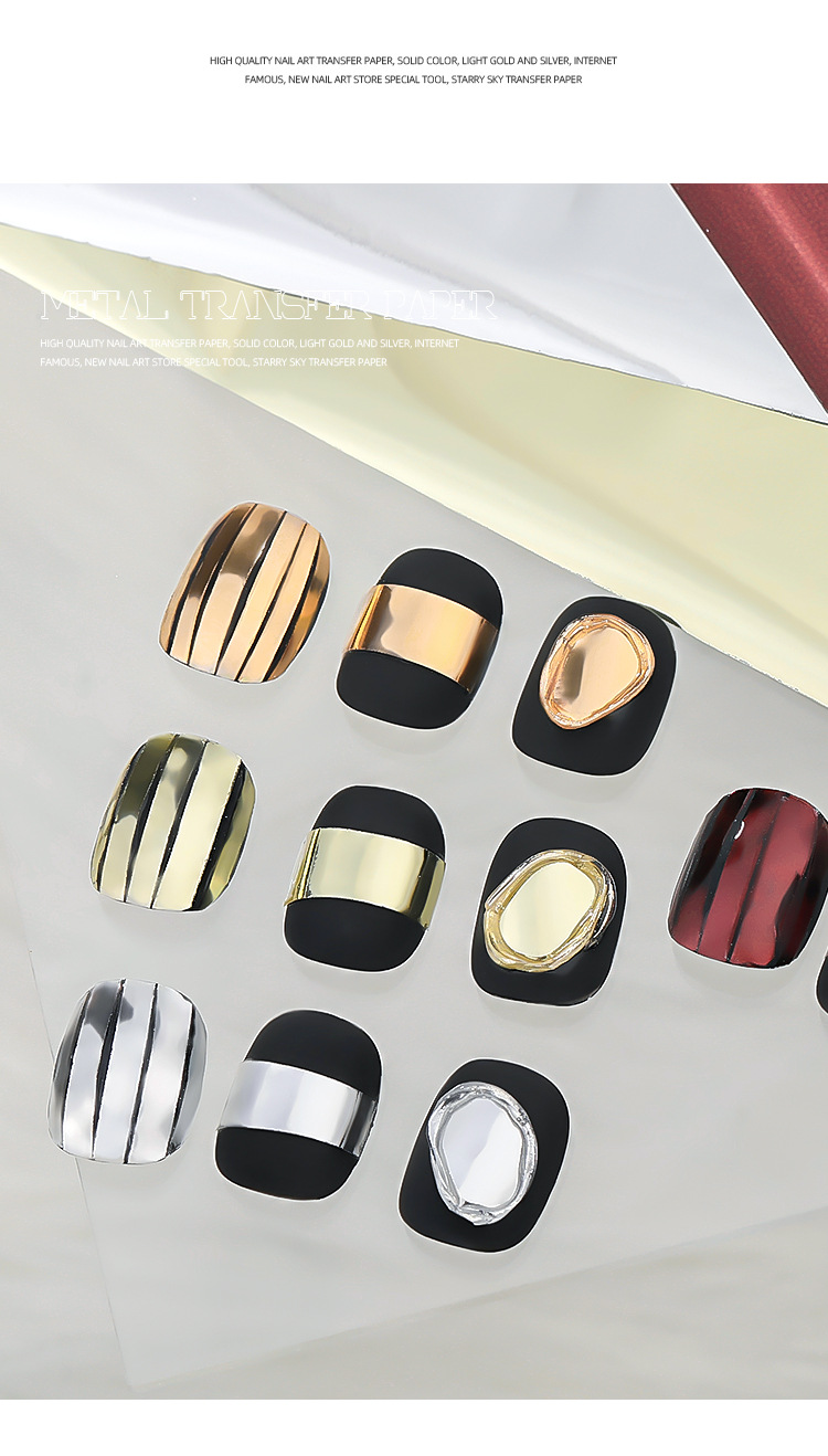 Manicure metal retro papel de transferencia nuevo estilo punk brillante oro puro plata bronce desgaste decoración de uñas al por mayor