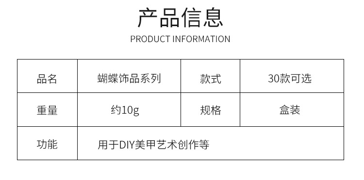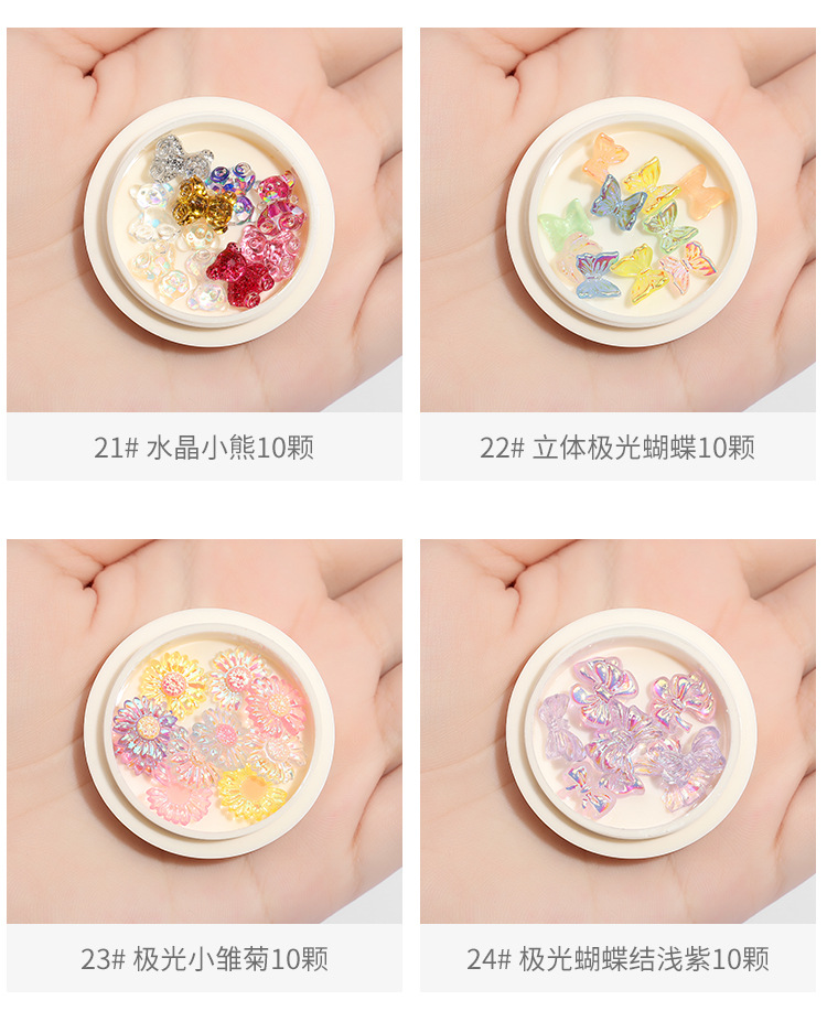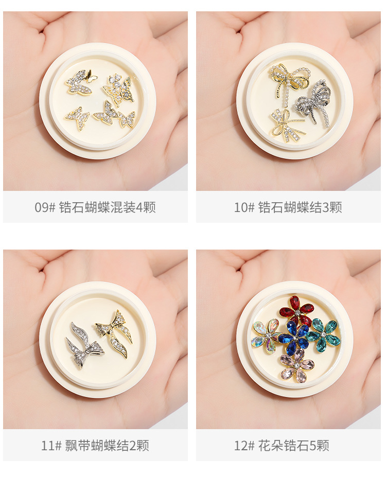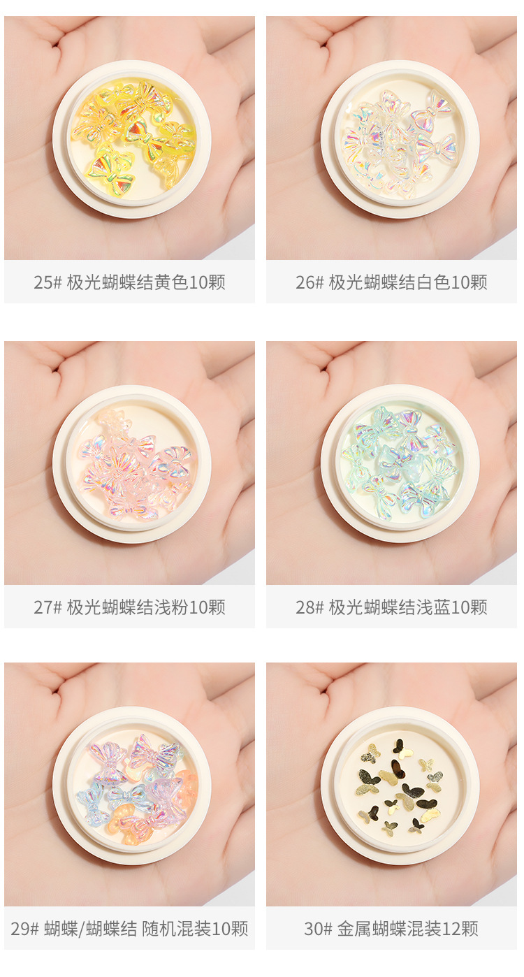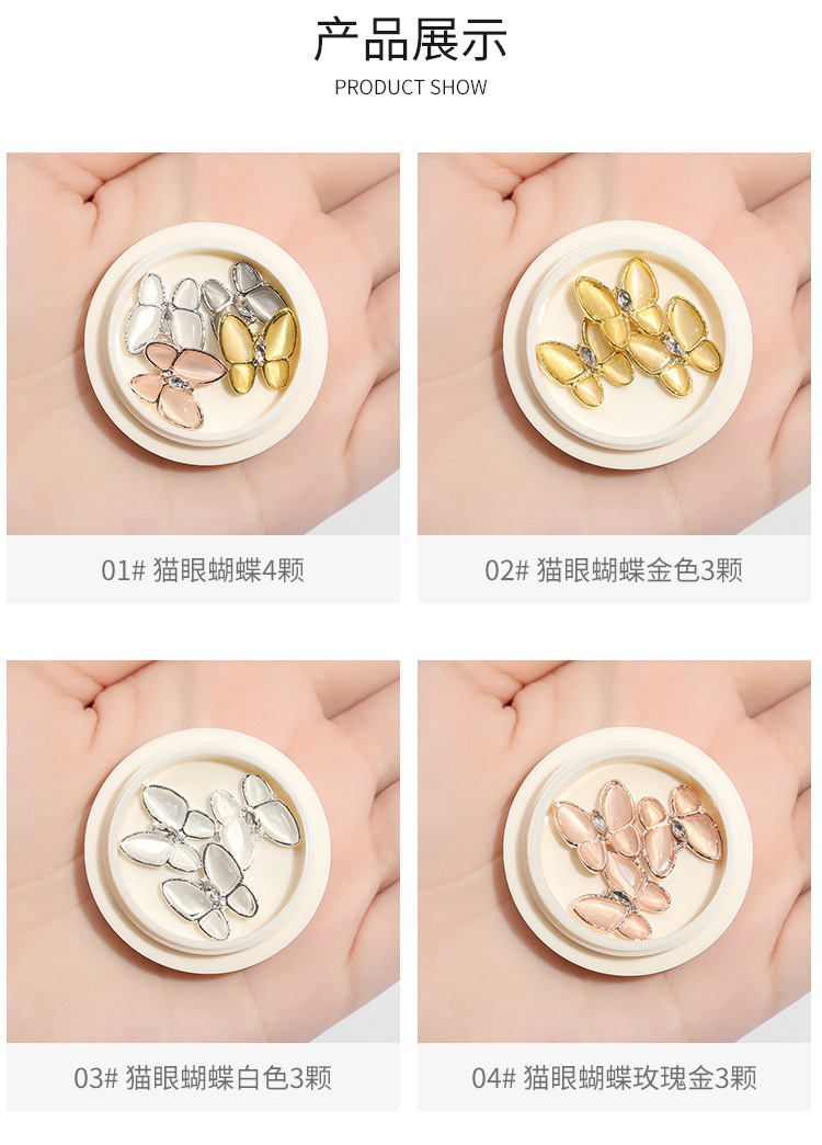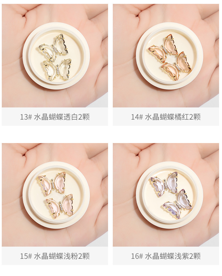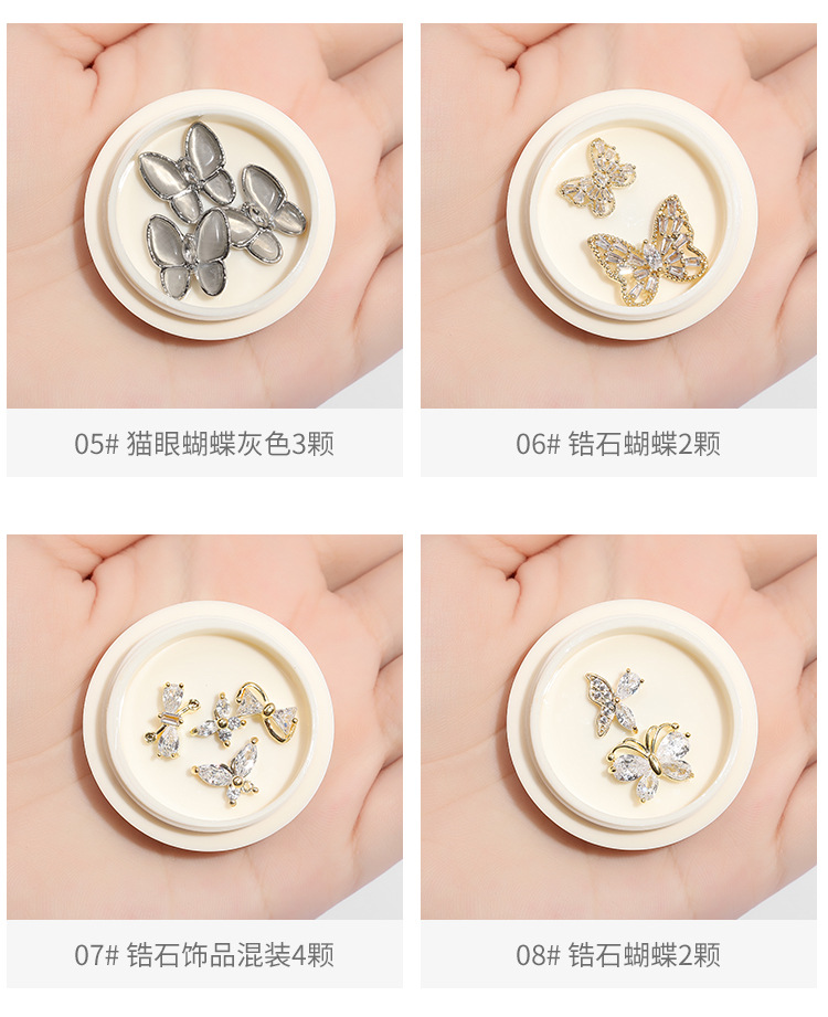 | Especificaciones | 01 #4 mariposas ojo de gato,02 #3 Mariposas de ojo de gato dorado,03 #3 mariposas Ojo de gato blanco,04 # oro rosa ojo de gato mariposa 3,05 #3 mariposas ojo de gato gris,06 #2 Zircon mariposas,11 #2 arcos de cinta,13 #2 mariposas heladas de cristal,14 #2 mariposas de cristal helado,15 #2 mariposas de cristal de hielo,16 #2 mariposas heladas de cristal,17 #2 mariposas heladas de cristal,18 #2 mariposas heladas de cristal,19 #2 mariposas heladas de cristal,20 # mariposa acabada tridimensional 10,21 #10 Osos de cristal,22 #10 mariposas tridimensionales Aurora,23 # tridimensional Aurora Daisy 10,25#Paquete mixto de mariposas metálicas de 12 piezas.,26#2 mariposas de circonitas |