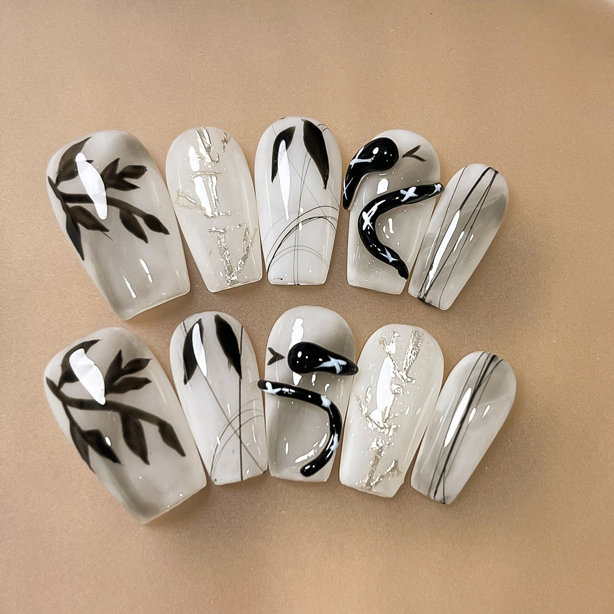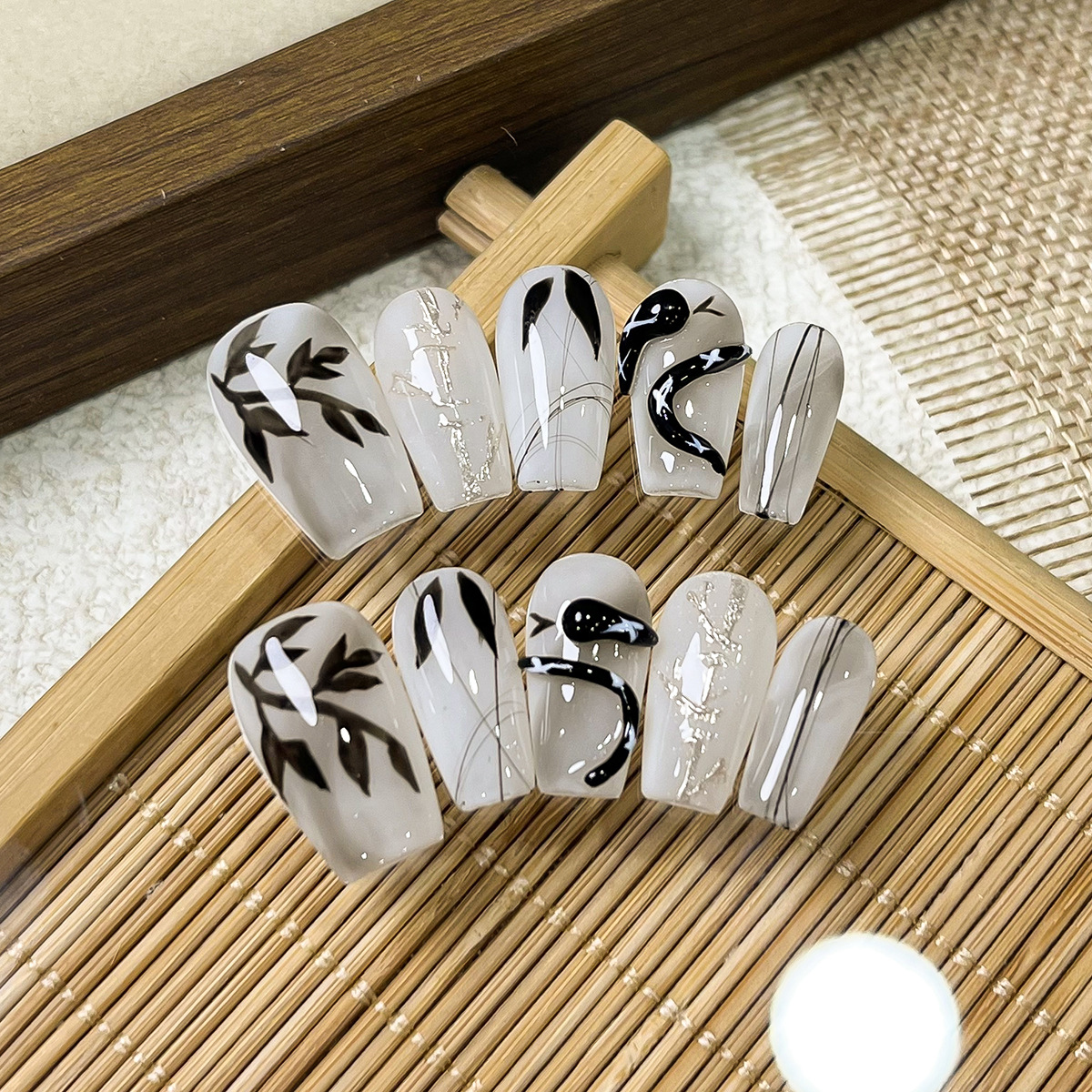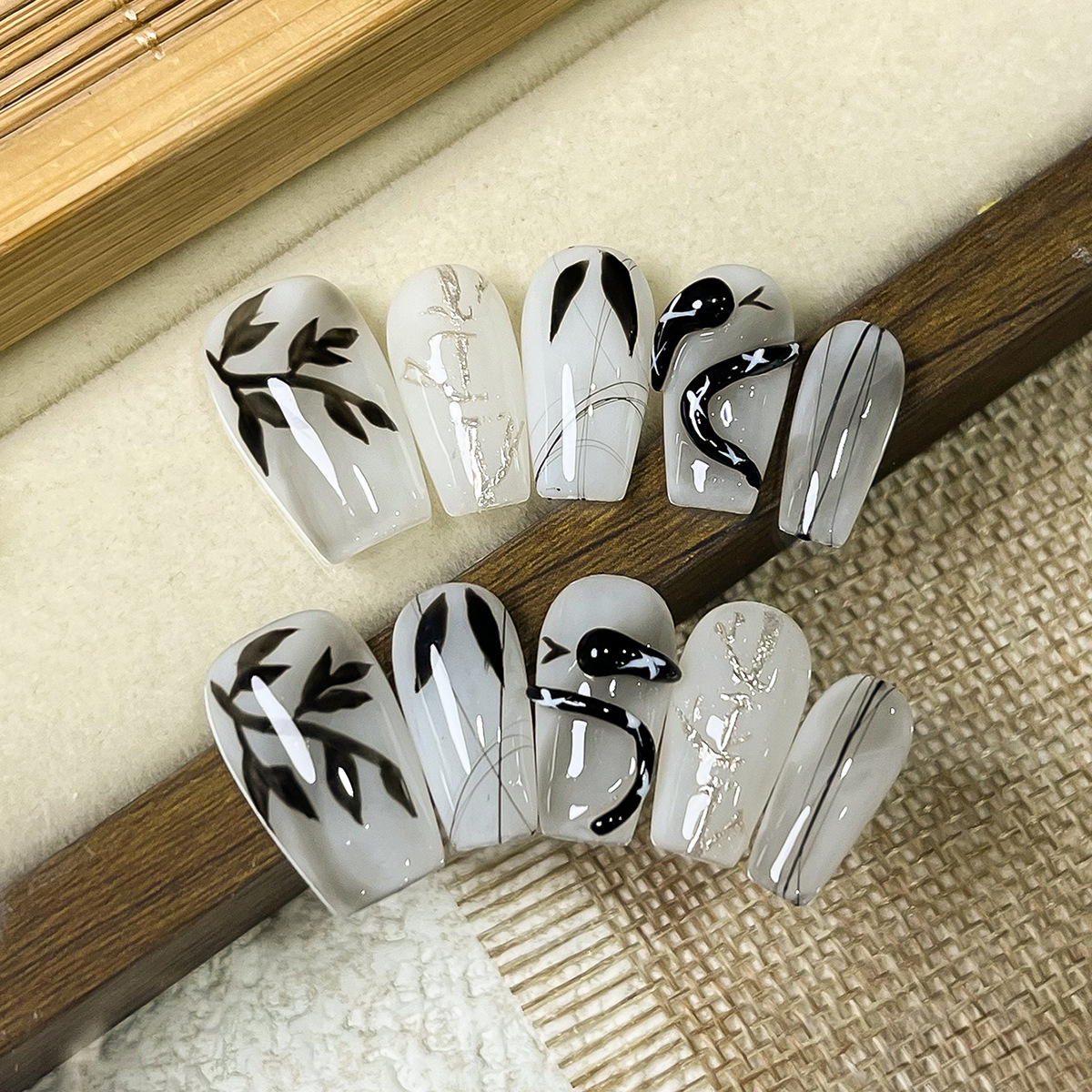 Armadura de vestir, estilo nacional puro hecho a mano, orquídea pintada a mano, armadura de vestir, serpiente pequeña, sensación fría y avanzada, parche de uñas blancas