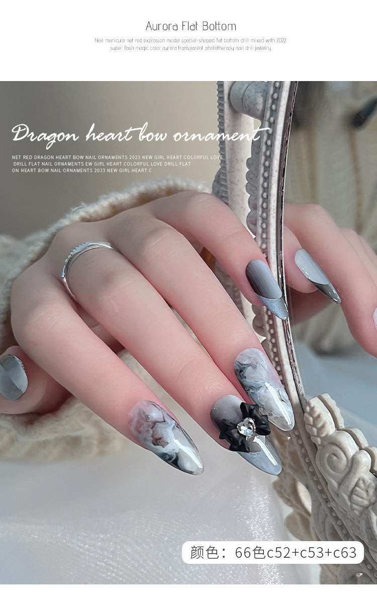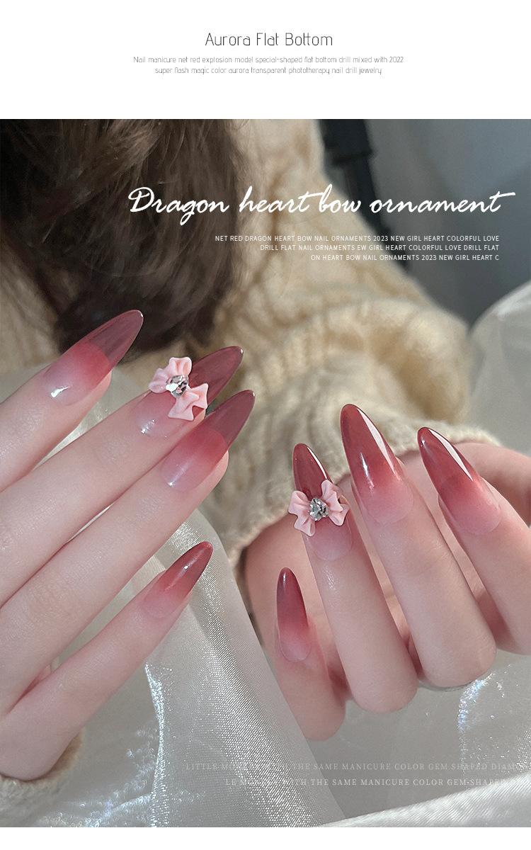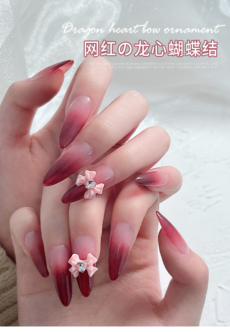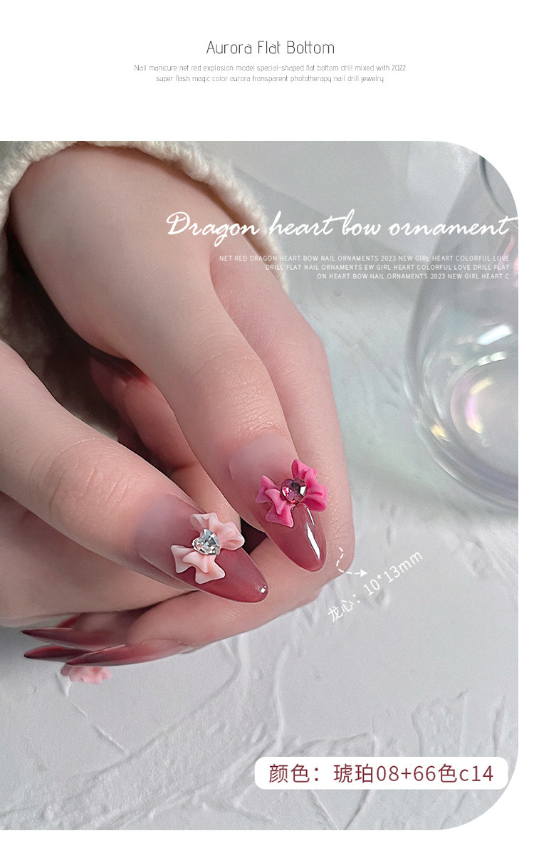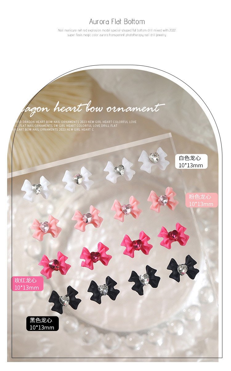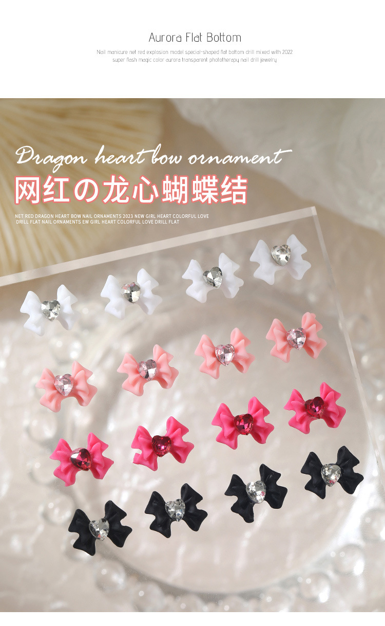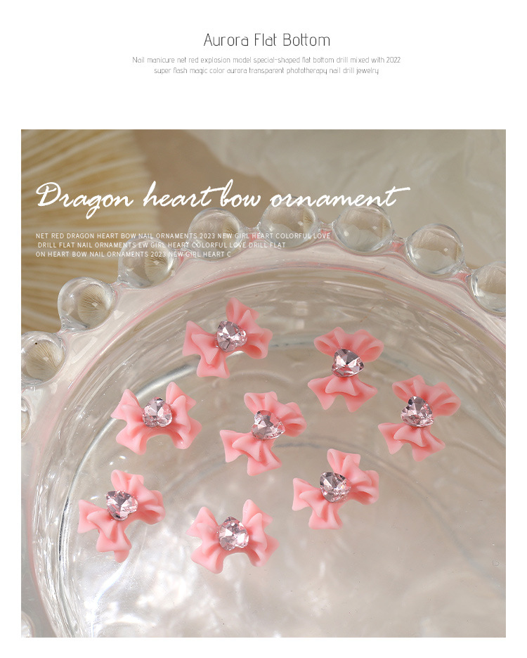 Celebridad en línea dragón corazón arco uñas joyería nueva chica corazón color resina plana tridimensional decoración al por mayor