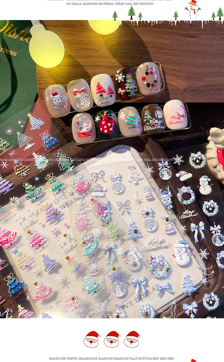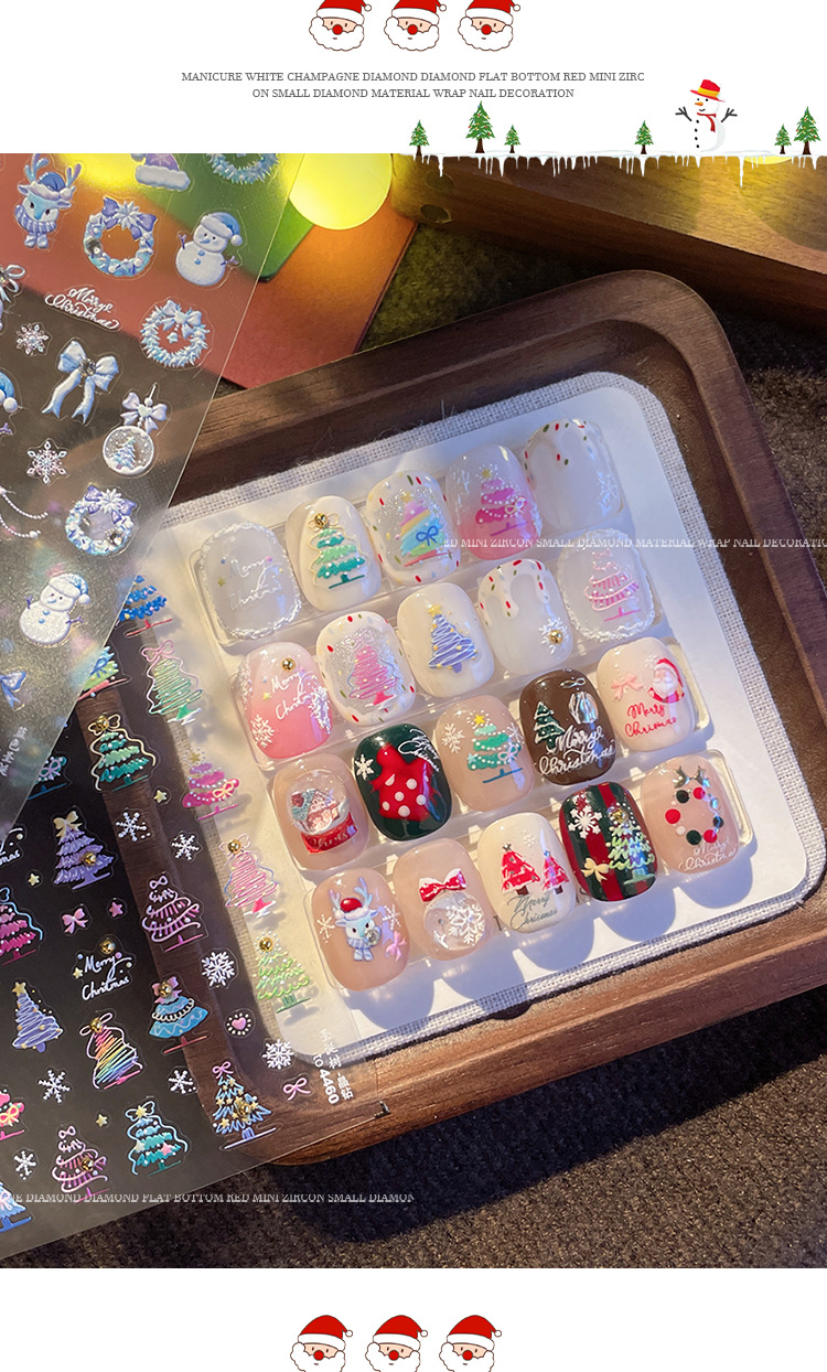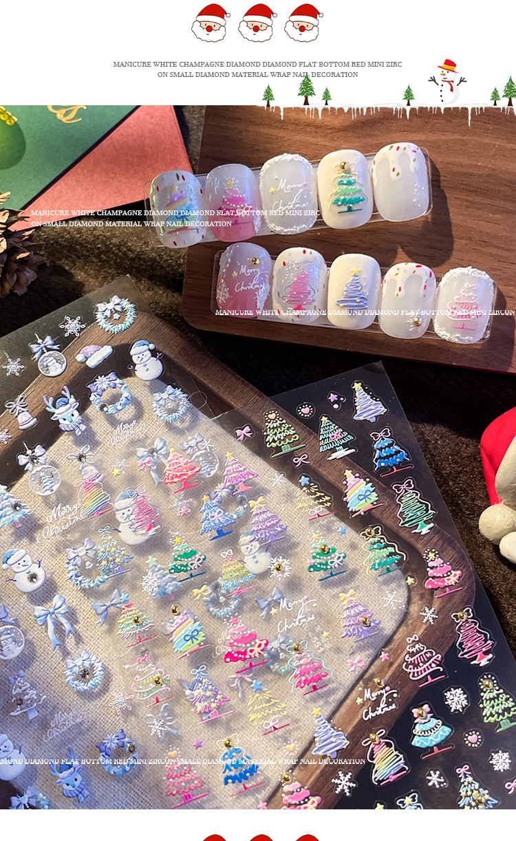 Manicure dopamina dedo pegatinas de cristal perforación calentamiento pegatinas de Navidad 2025 nuevo estereoscopio en relieve pegatinas de uñas decoración al por mayor