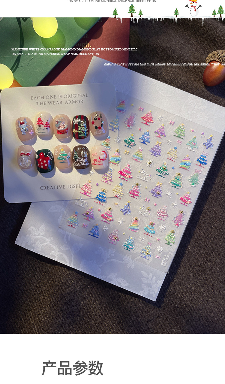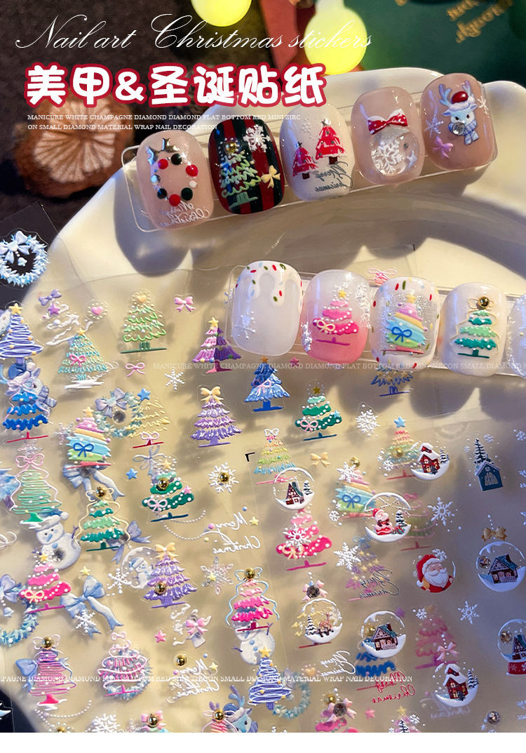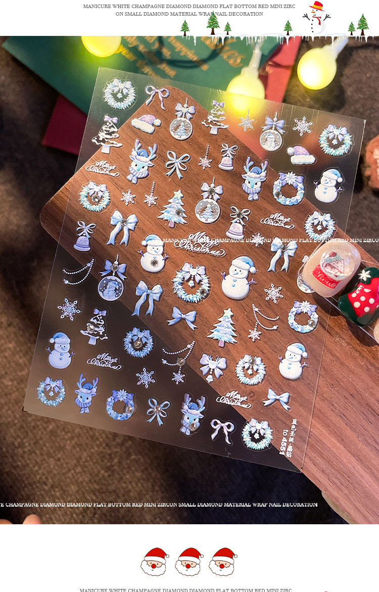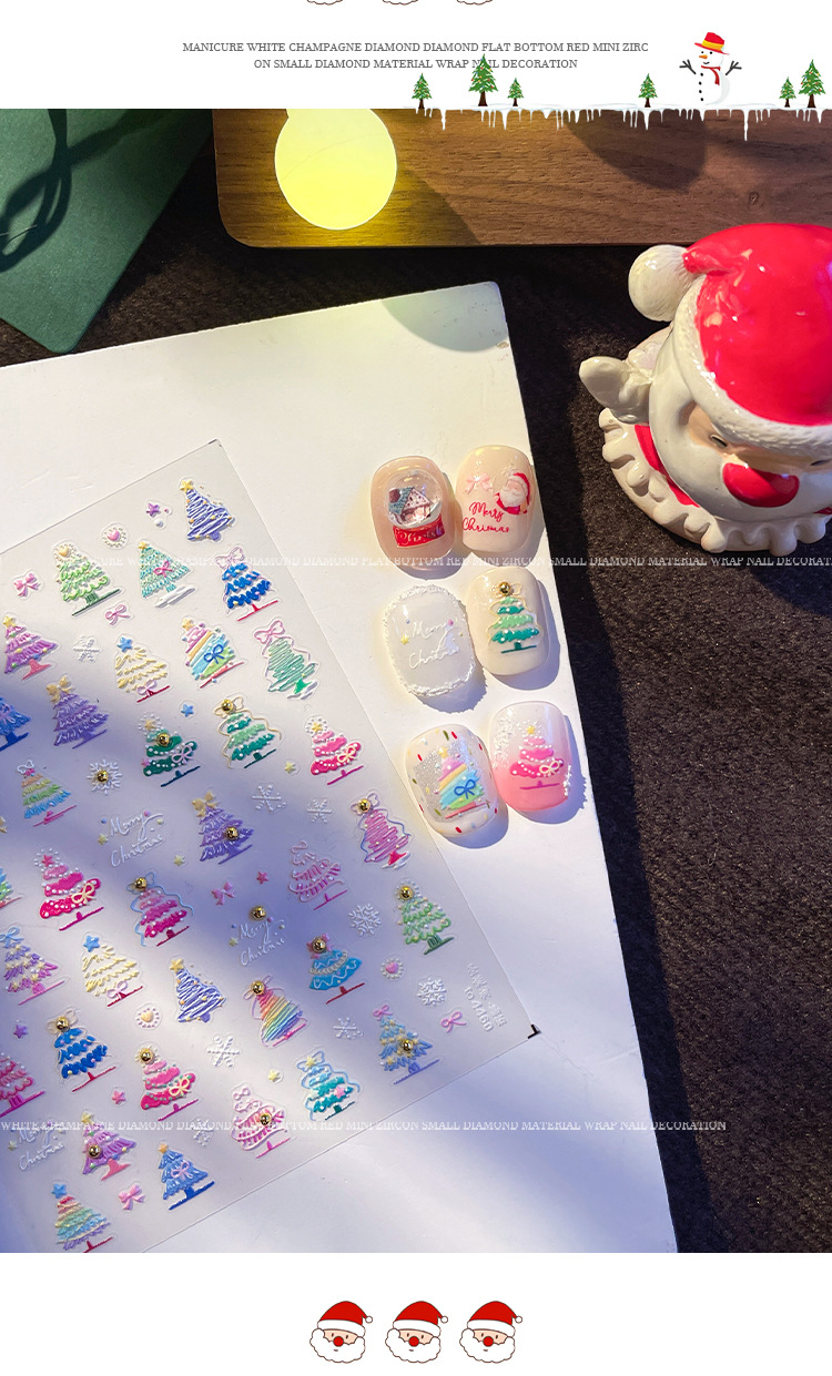 Manicure dopamina dedo pegatinas de cristal perforación calentamiento pegatinas de Navidad 2025 nuevo estereoscopio en relieve pegatinas de uñas decoración al por mayor