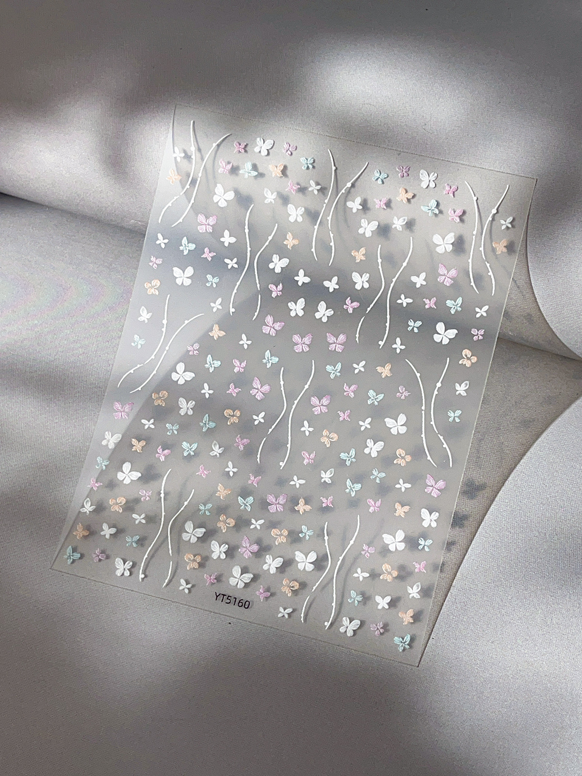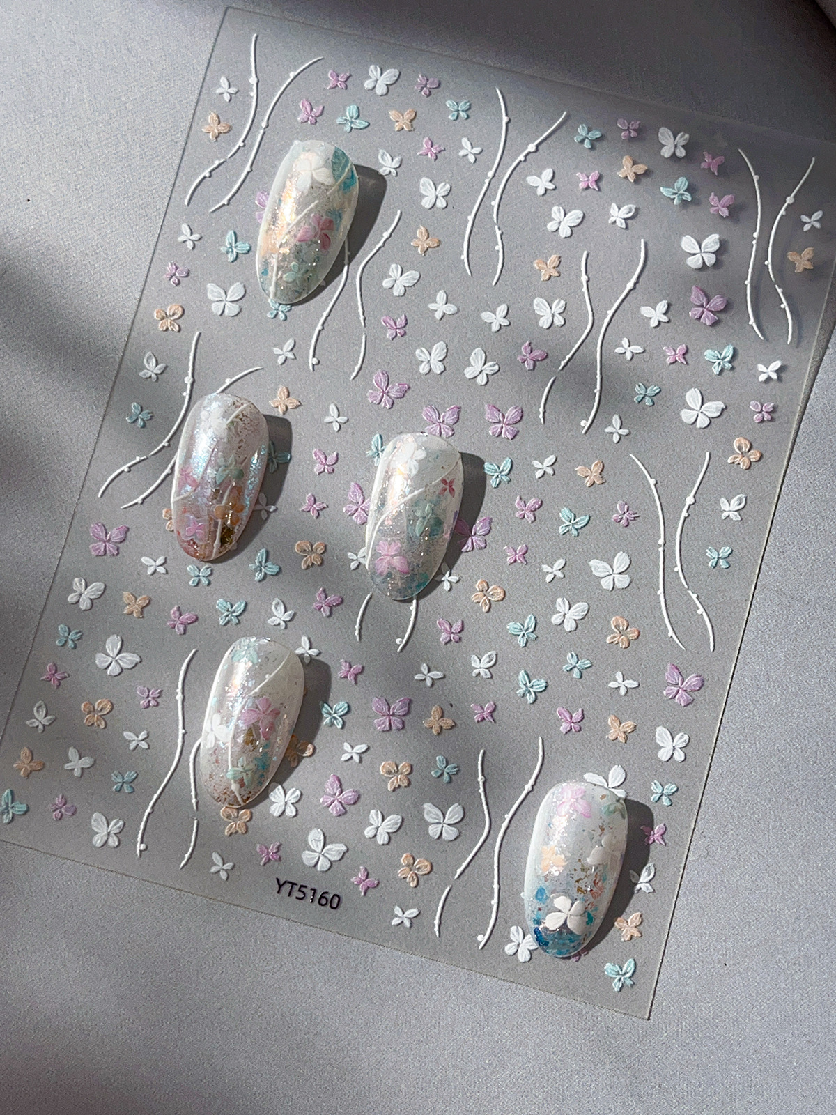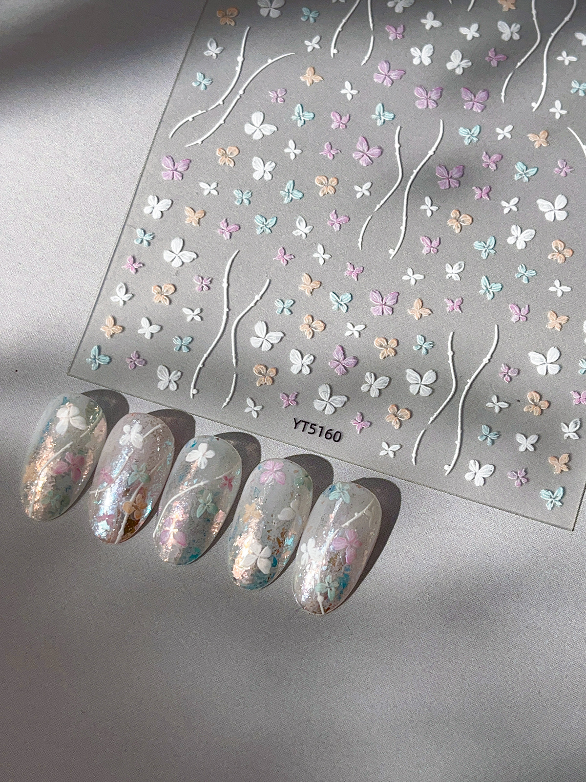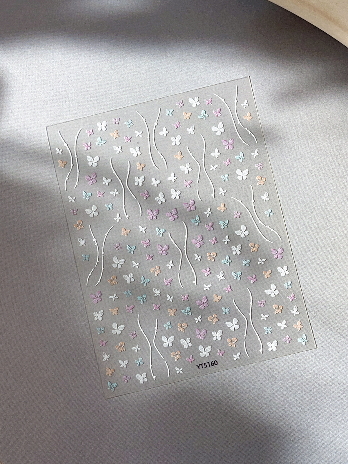 Pegatinas de mariposa de uñas nuevo estilo tridimensional pintado a mano arco de color en relieve exquisito pegamento para uñas decoraciones al por mayor