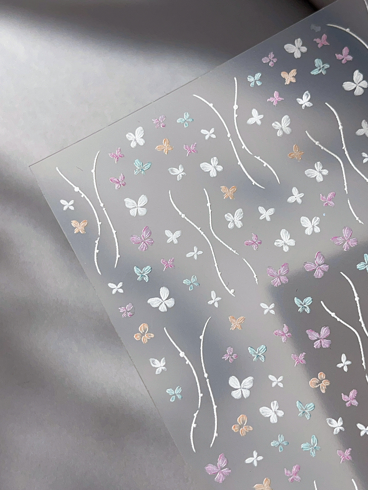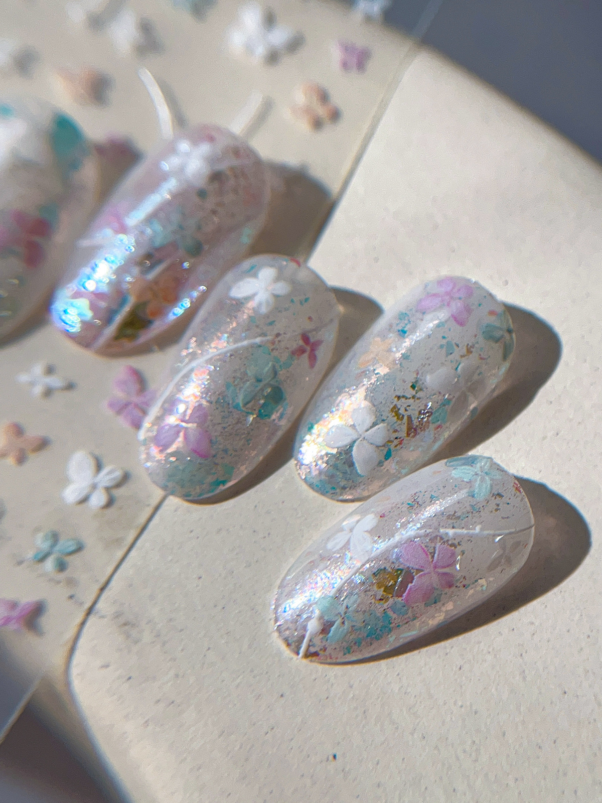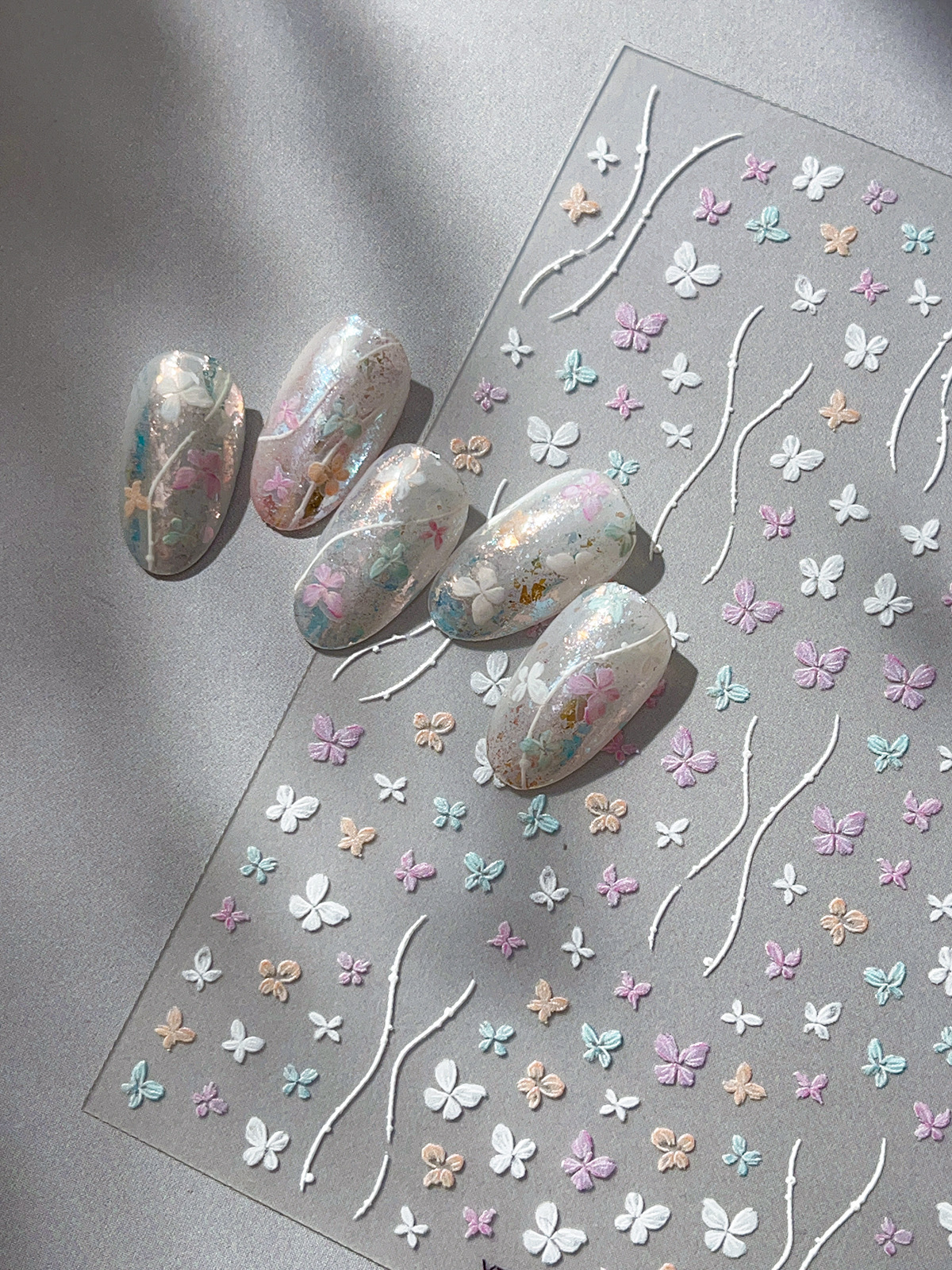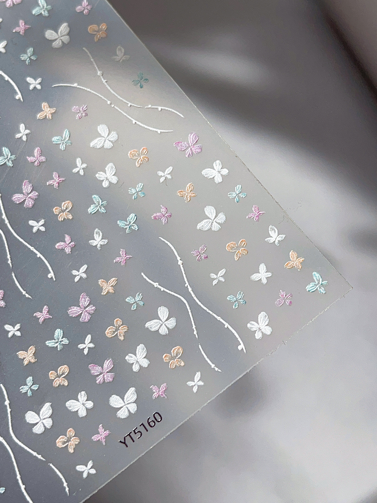 Pegatinas de mariposa de uñas nuevo estilo tridimensional pintado a mano arco de color en relieve exquisito pegamento para uñas decoraciones al por mayor