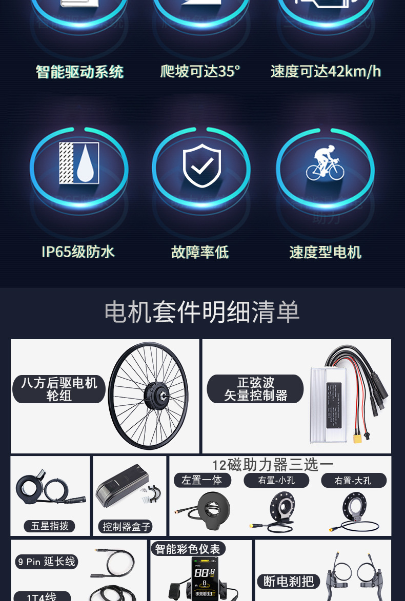 Ocho partes de tracción trasera tipo rotativo 48v500w motor de alta velocidad kit de bicicleta de montaña reconstruida accesorios de vehículo eléctrico