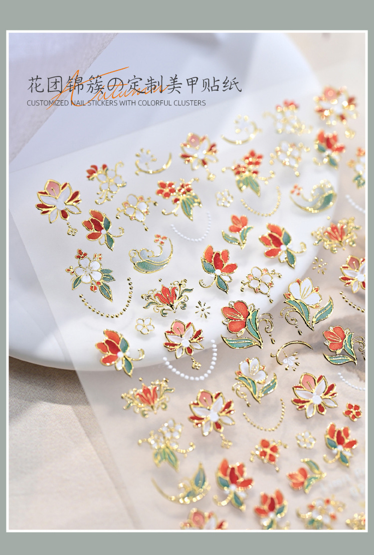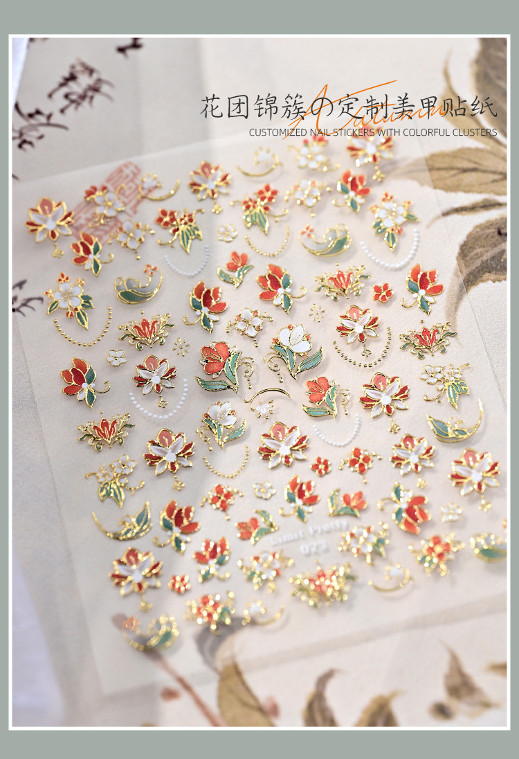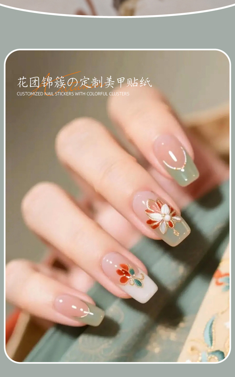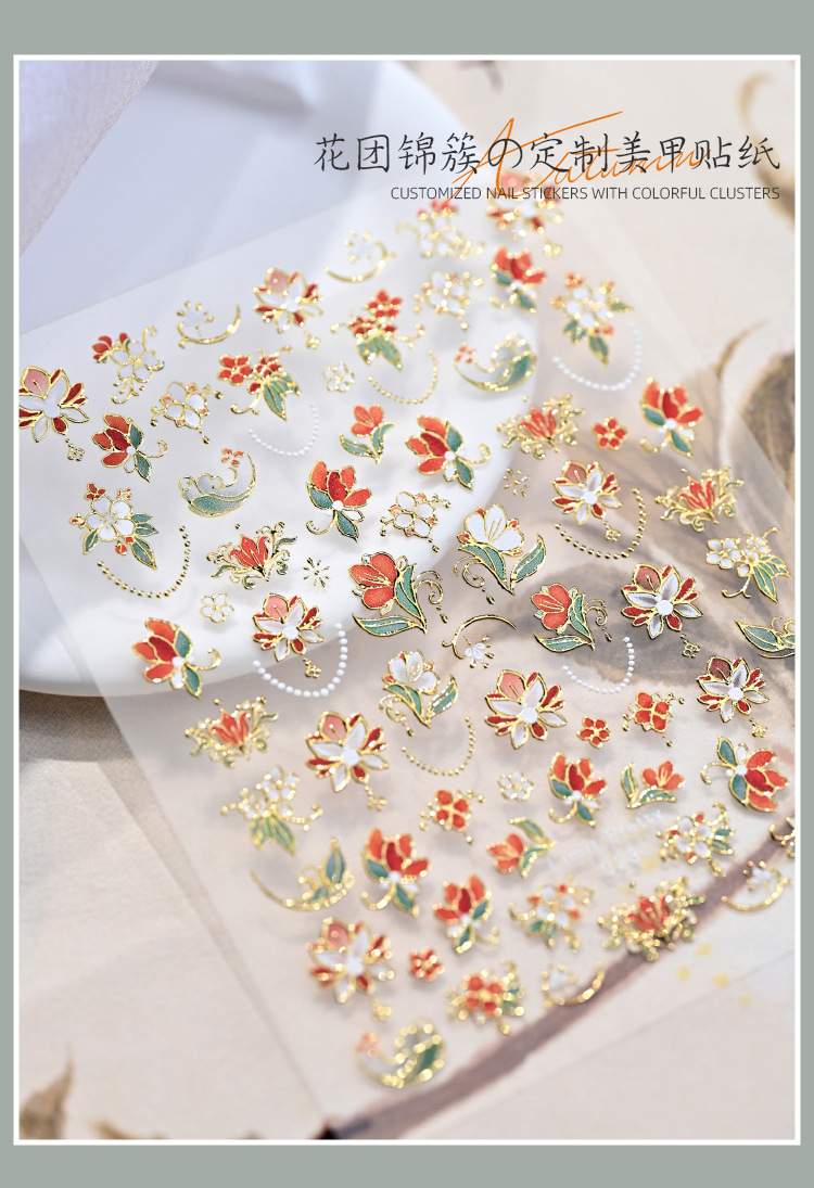 Celebridades de Internet nuevas pegatinas de uñas de racimo de flores chinas flores francesas en relieve decoraciones de uñas de vestir tridimensionales al por mayor