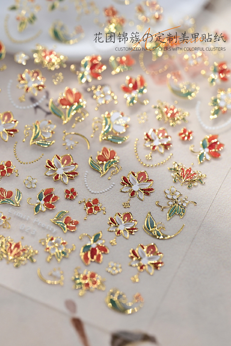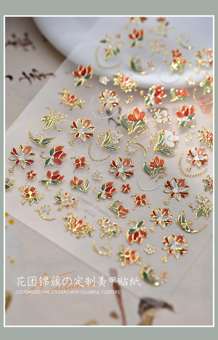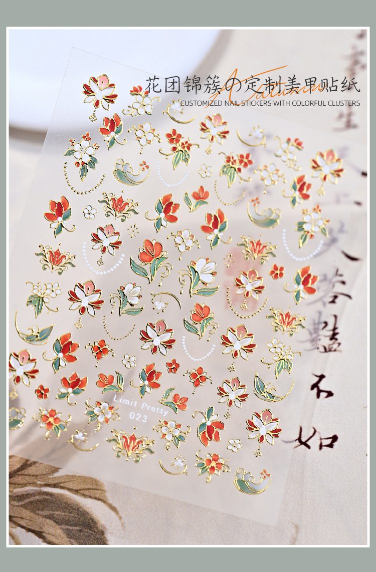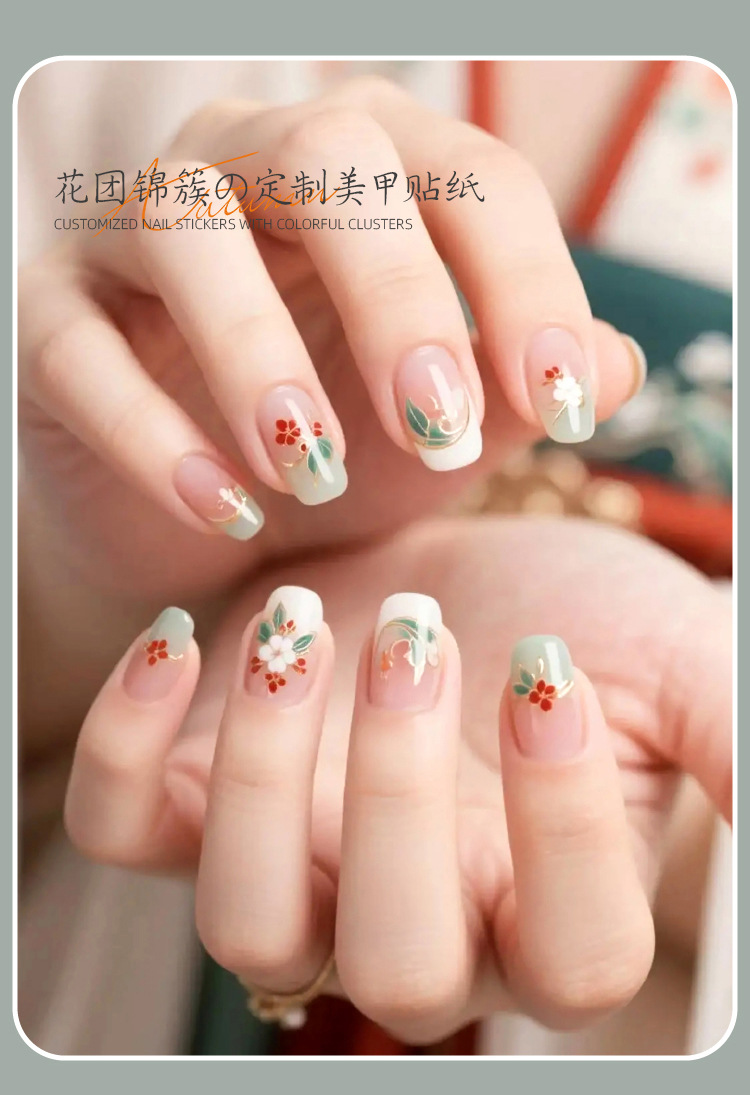 Celebridades de Internet nuevas pegatinas de uñas de racimo de flores chinas flores francesas en relieve decoraciones de uñas de vestir tridimensionales al por mayor