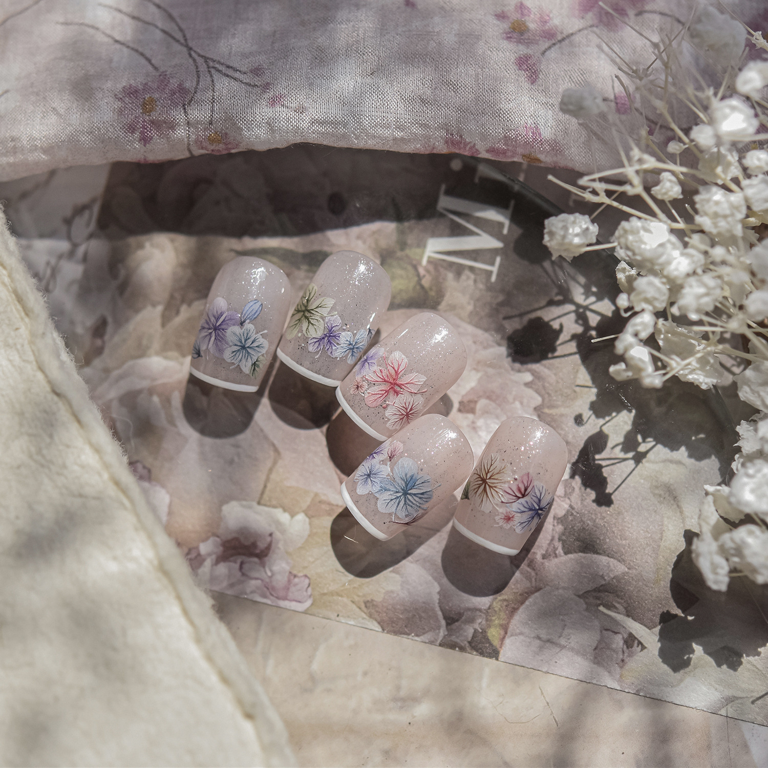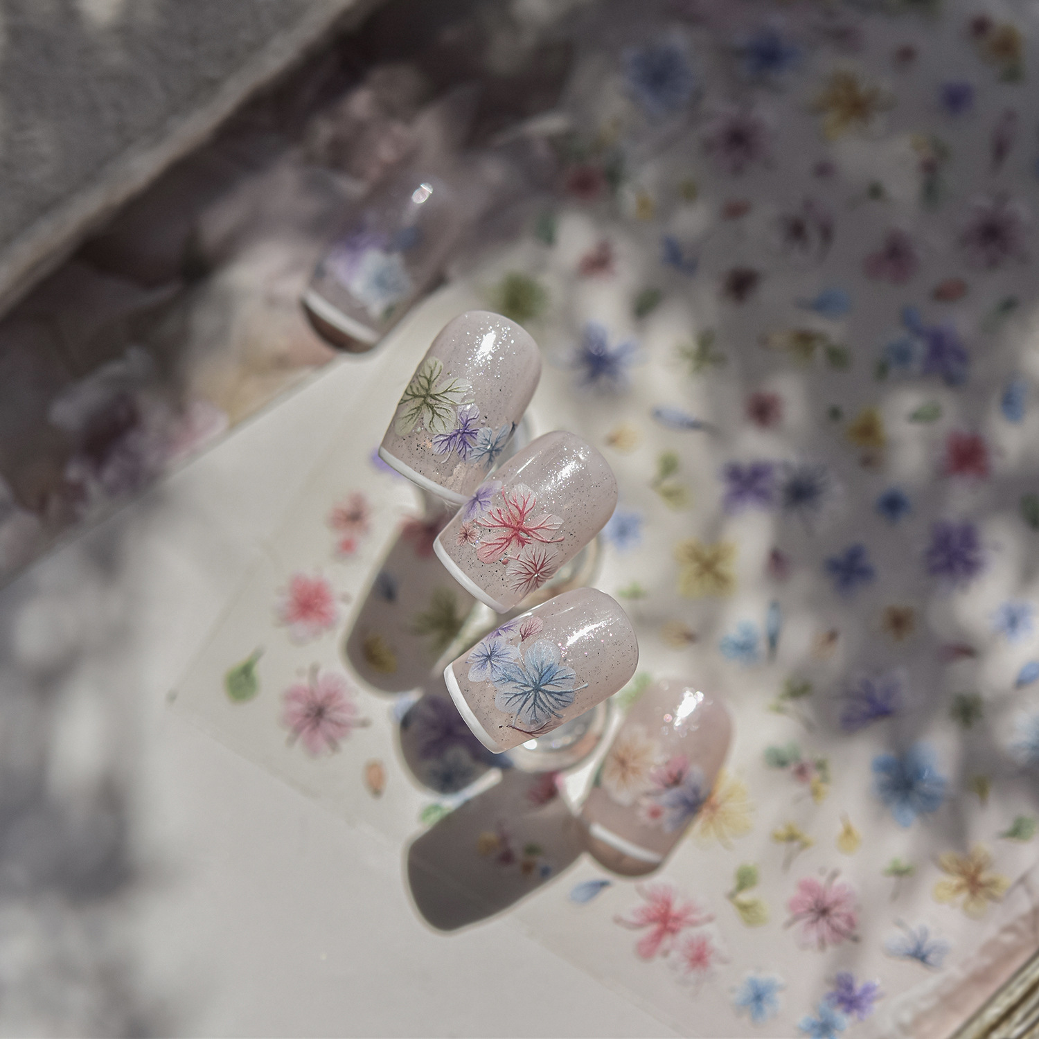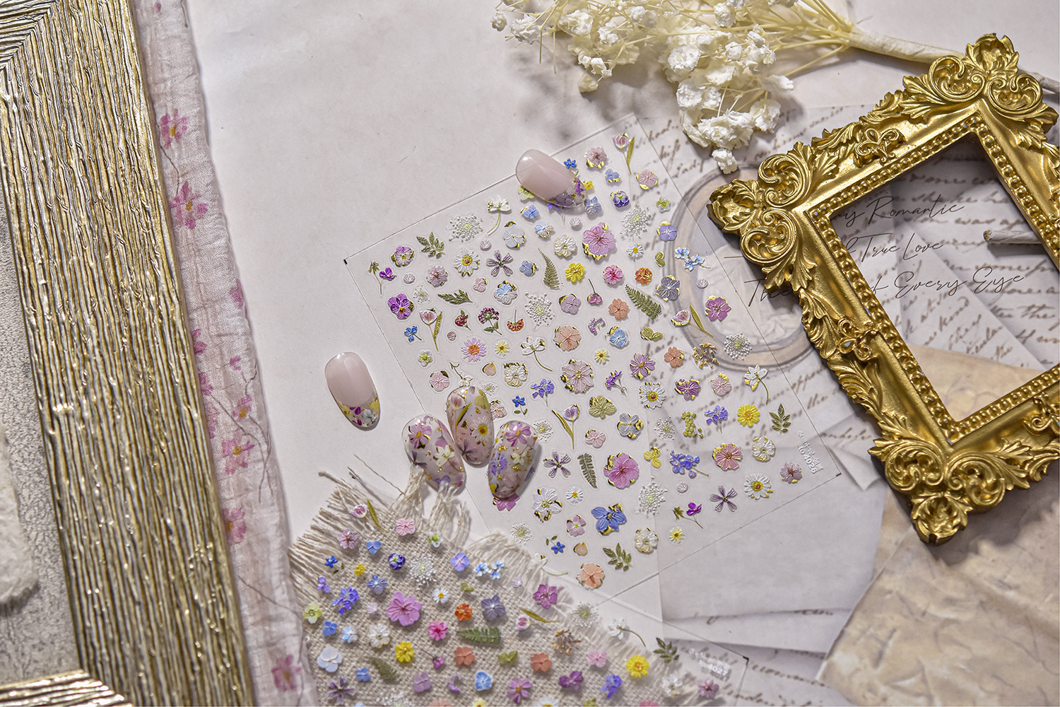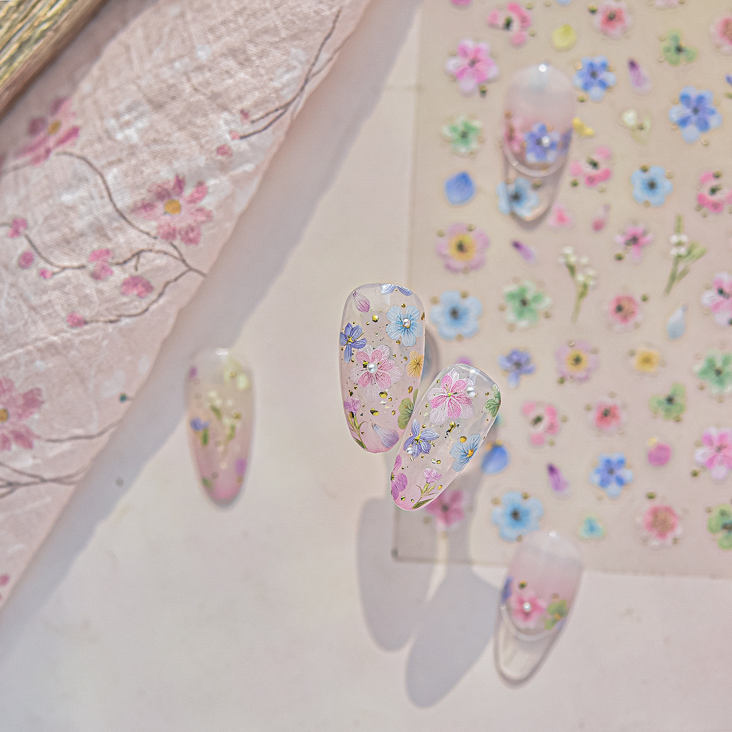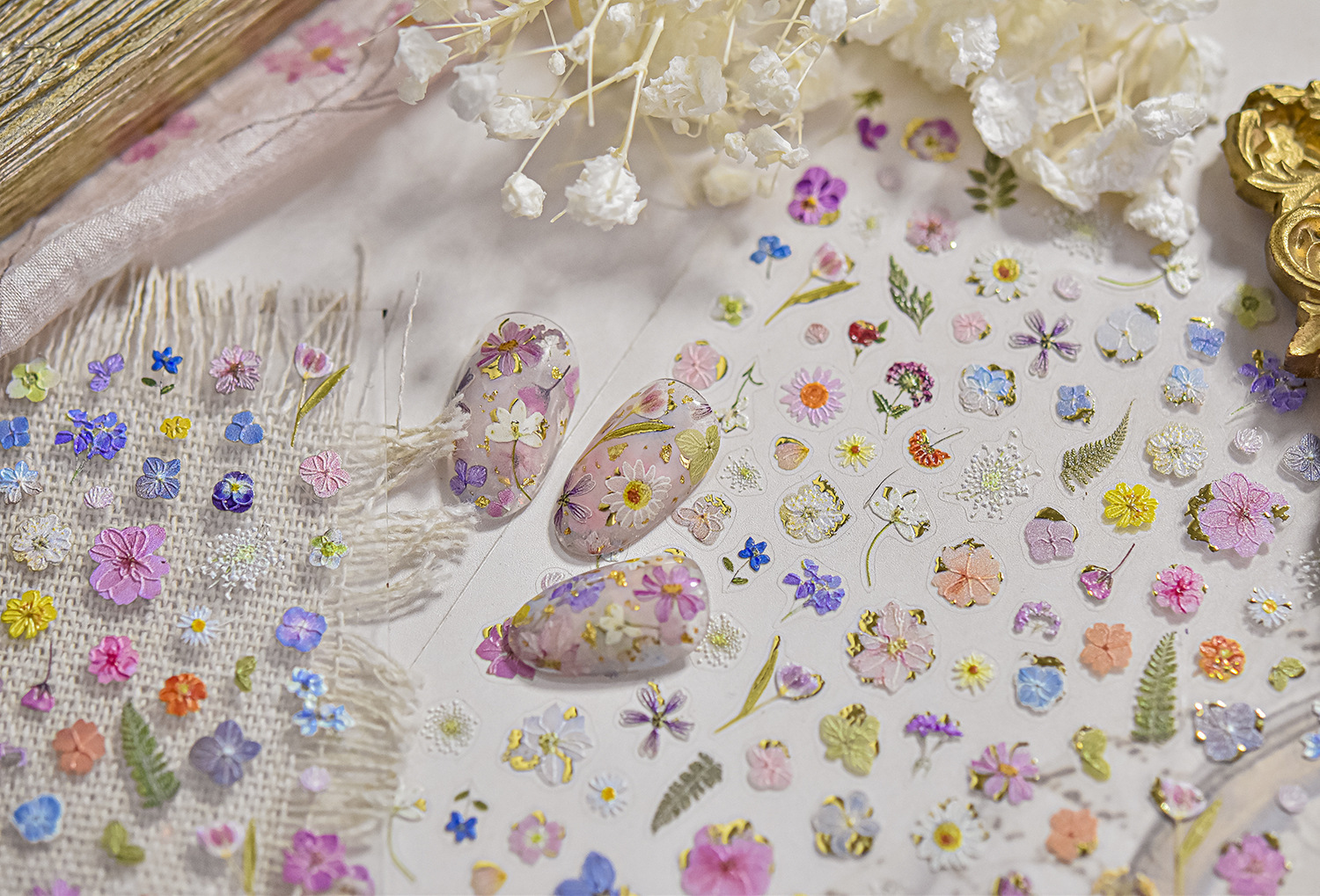 Pegatinas de uñas nuevas flores de primavera celebridades de Internet flores secas joyas de uñas pegatinas adhesivas pegatinas de uñas de todo fósforo flores de cuatro pétalos