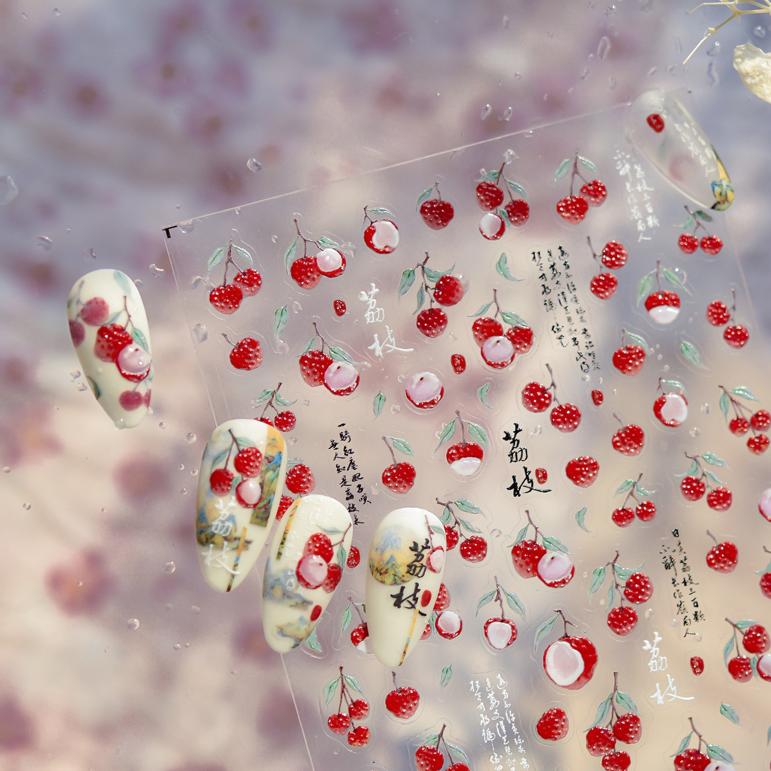 Nail Art New Jelly Changan Litchi Nail Art Sticker suave para hombres hielo a través de las pegatinas de uñas Fairy Wind Material de frutas