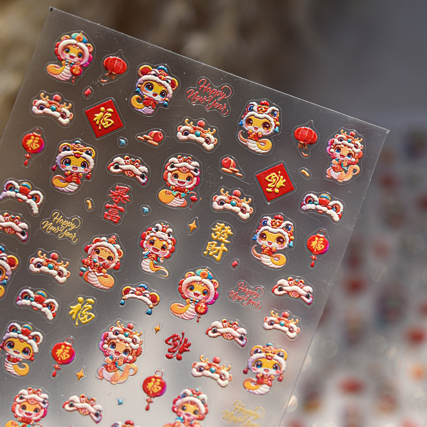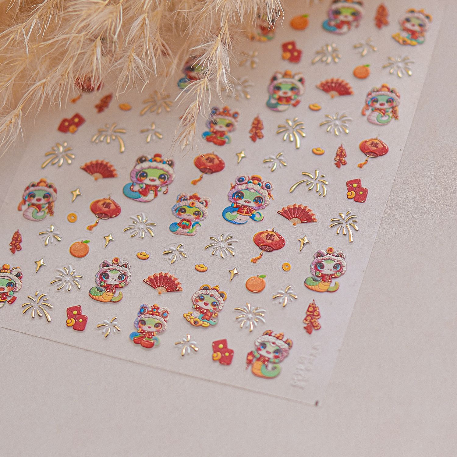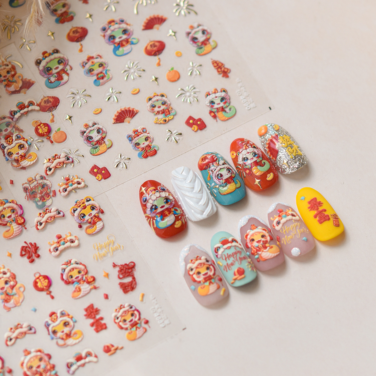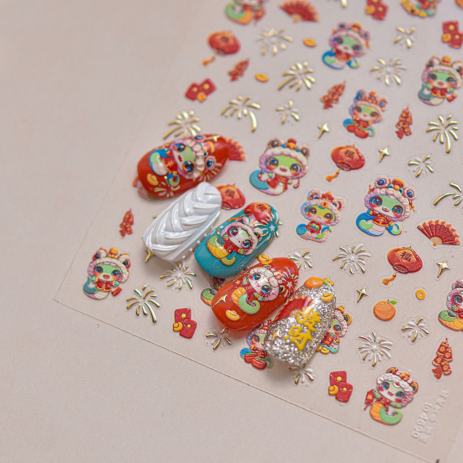 Nuevos pegatinas de uñas en relieve papelería pegatinas de uñas retro Rui Serpente He Chun pegatinas de uñas Año Nuevo del Festival de Primavera 2025