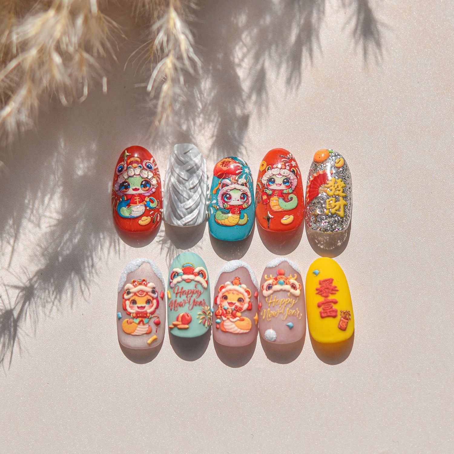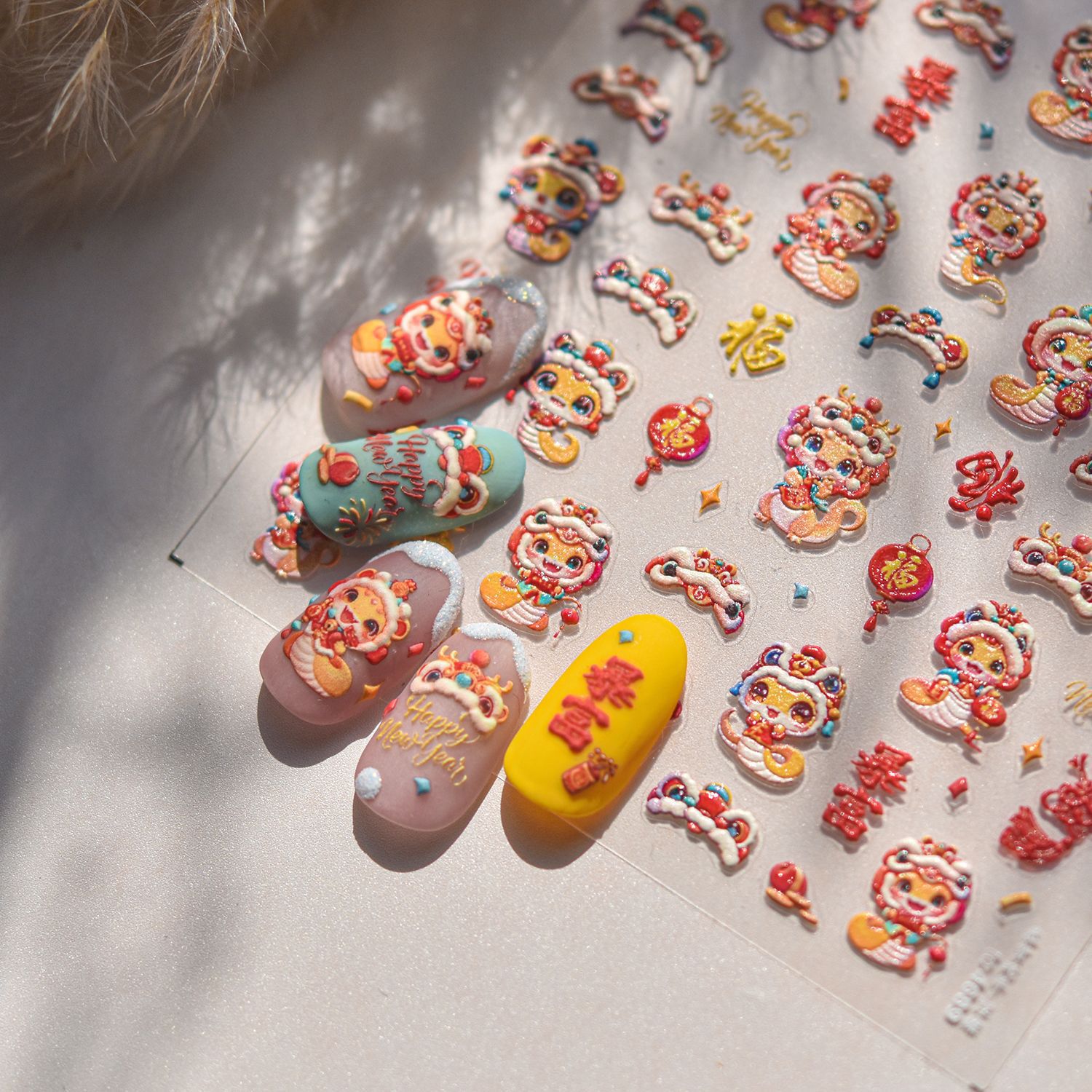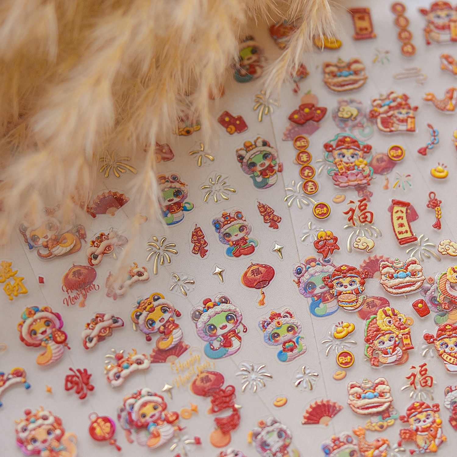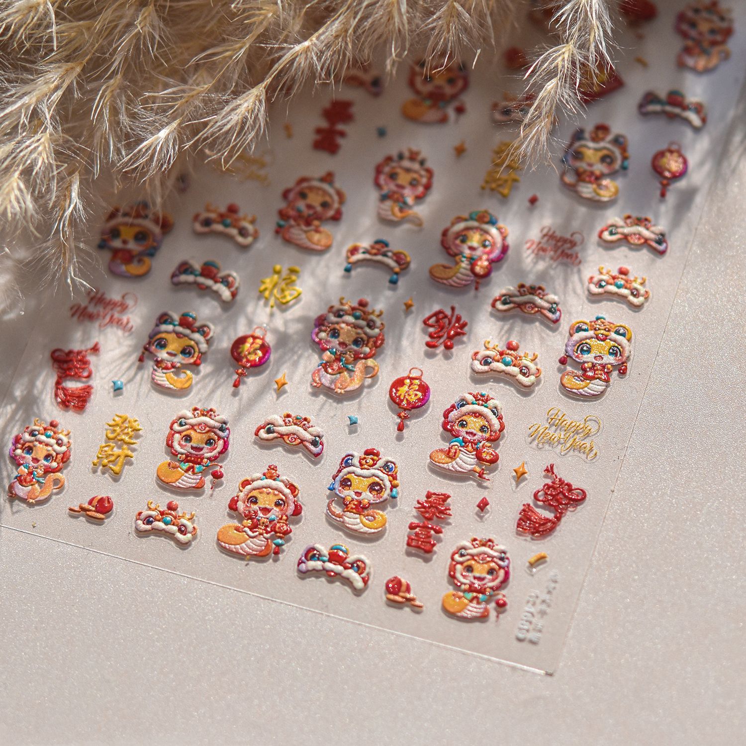 Nuevos pegatinas de uñas en relieve papelería pegatinas de uñas retro Rui Serpente He Chun pegatinas de uñas Año Nuevo del Festival de Primavera 2025