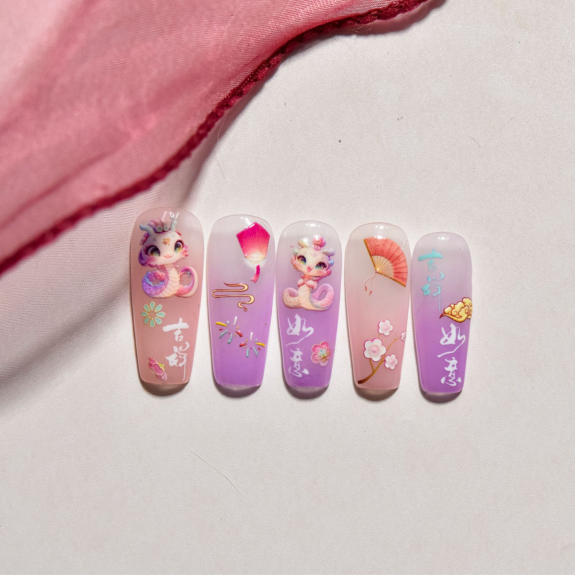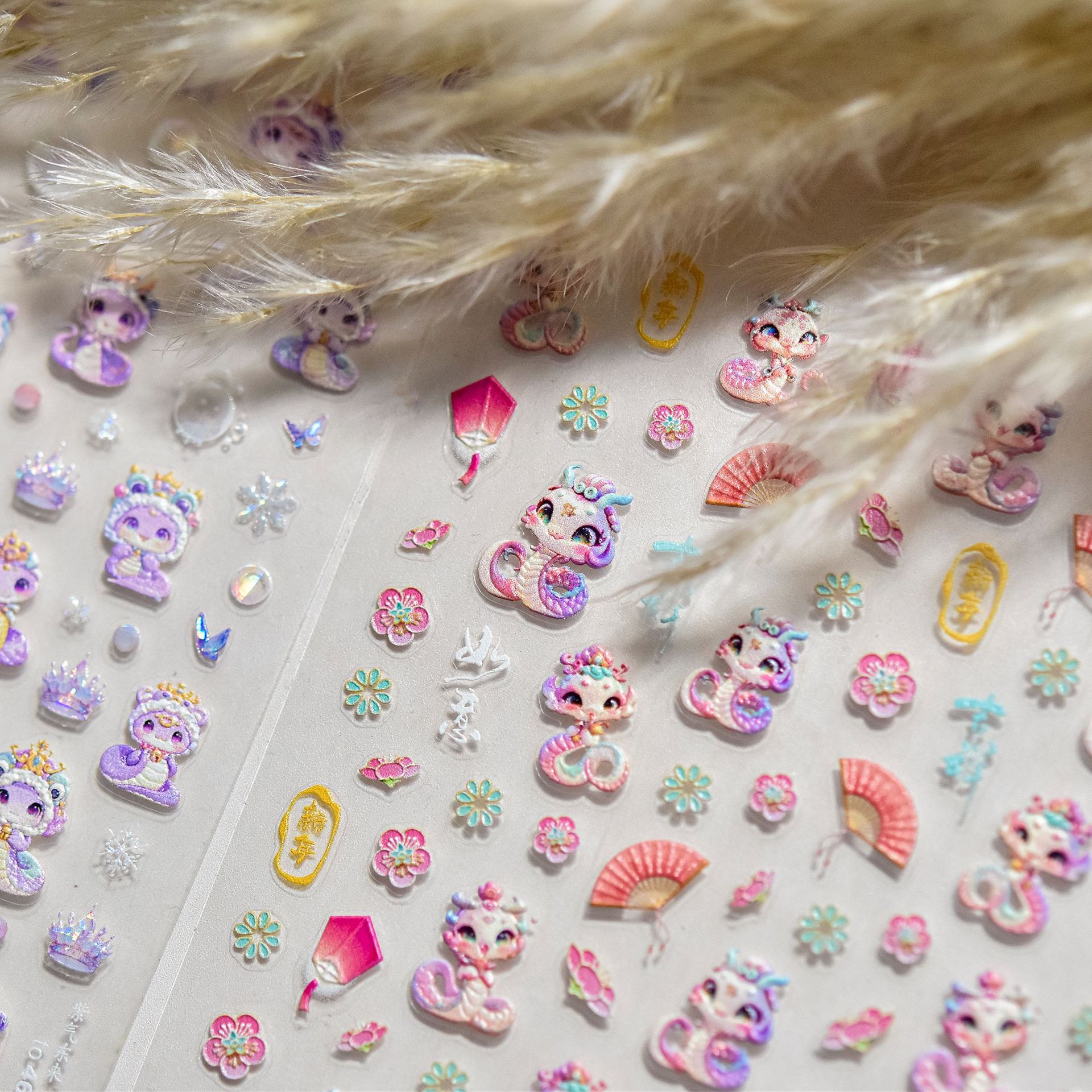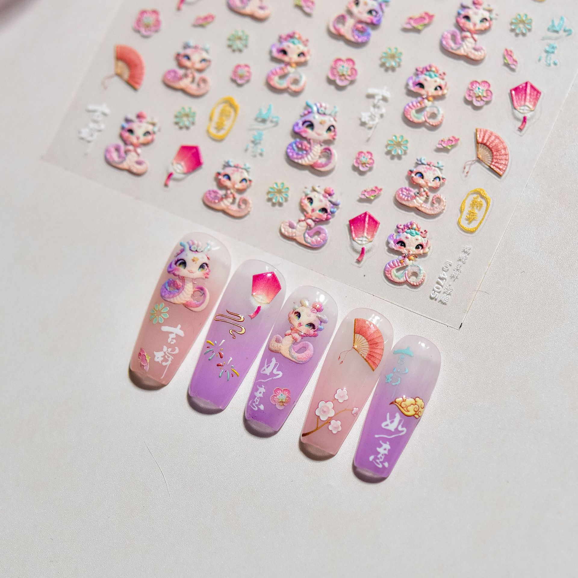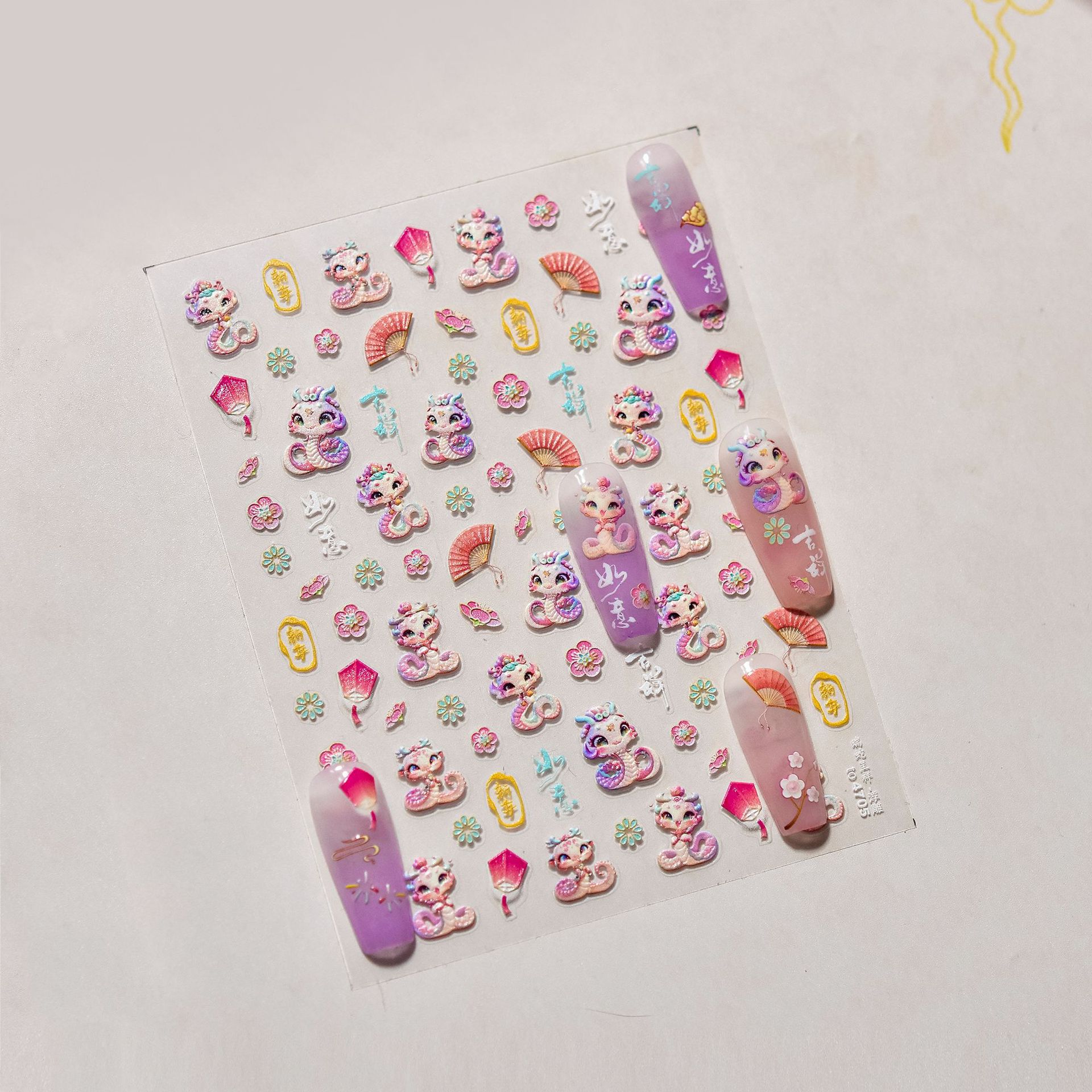 Manicure nuevo pegatinas en relieve en la explosión japonesa pegatinas de uñas para niños Rui Serpente Chengxiang pegatinas de uñas al por mayor