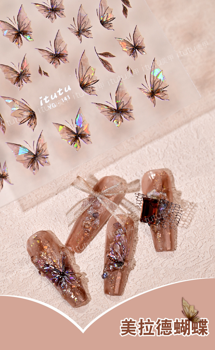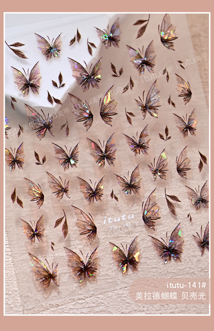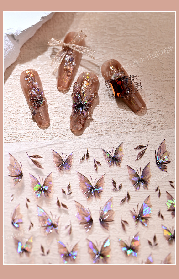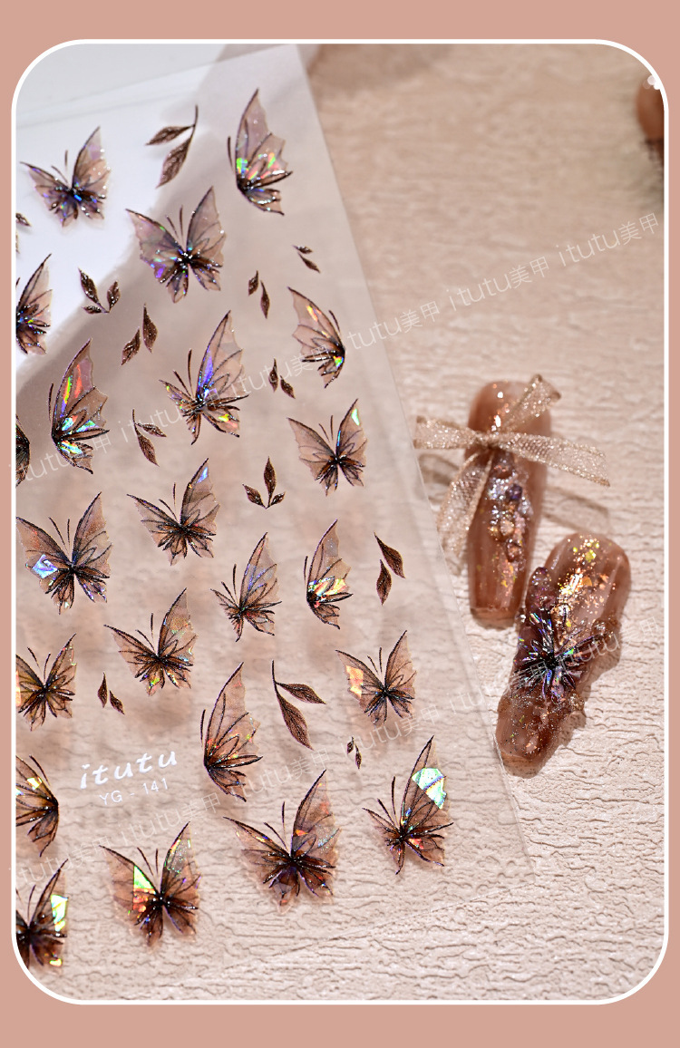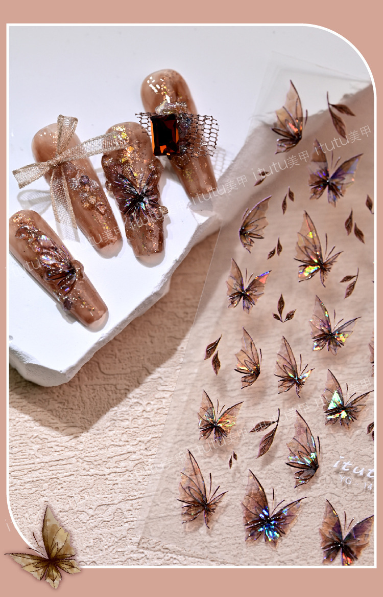 Nuevo otoño y invierno melard mariposa concha luz pegatinas de uñas retro otoño marrón mariposa hoja muerta pegatinas de uñas semipermeables