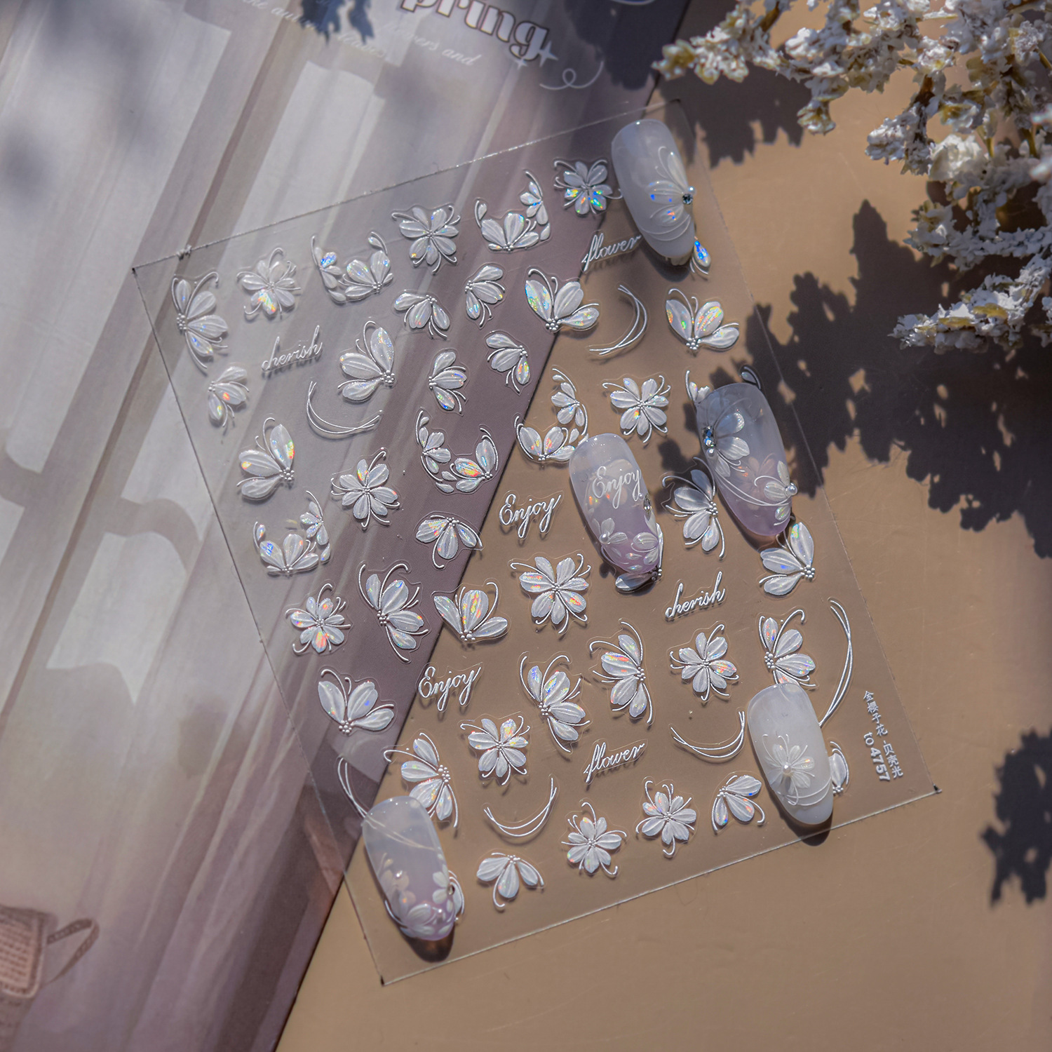 Tomoni cristal diamante uñas pegatinas popular japonés retro uñas pegatinas fábrica al por mayor semi-transparente flor nieve corte 3324