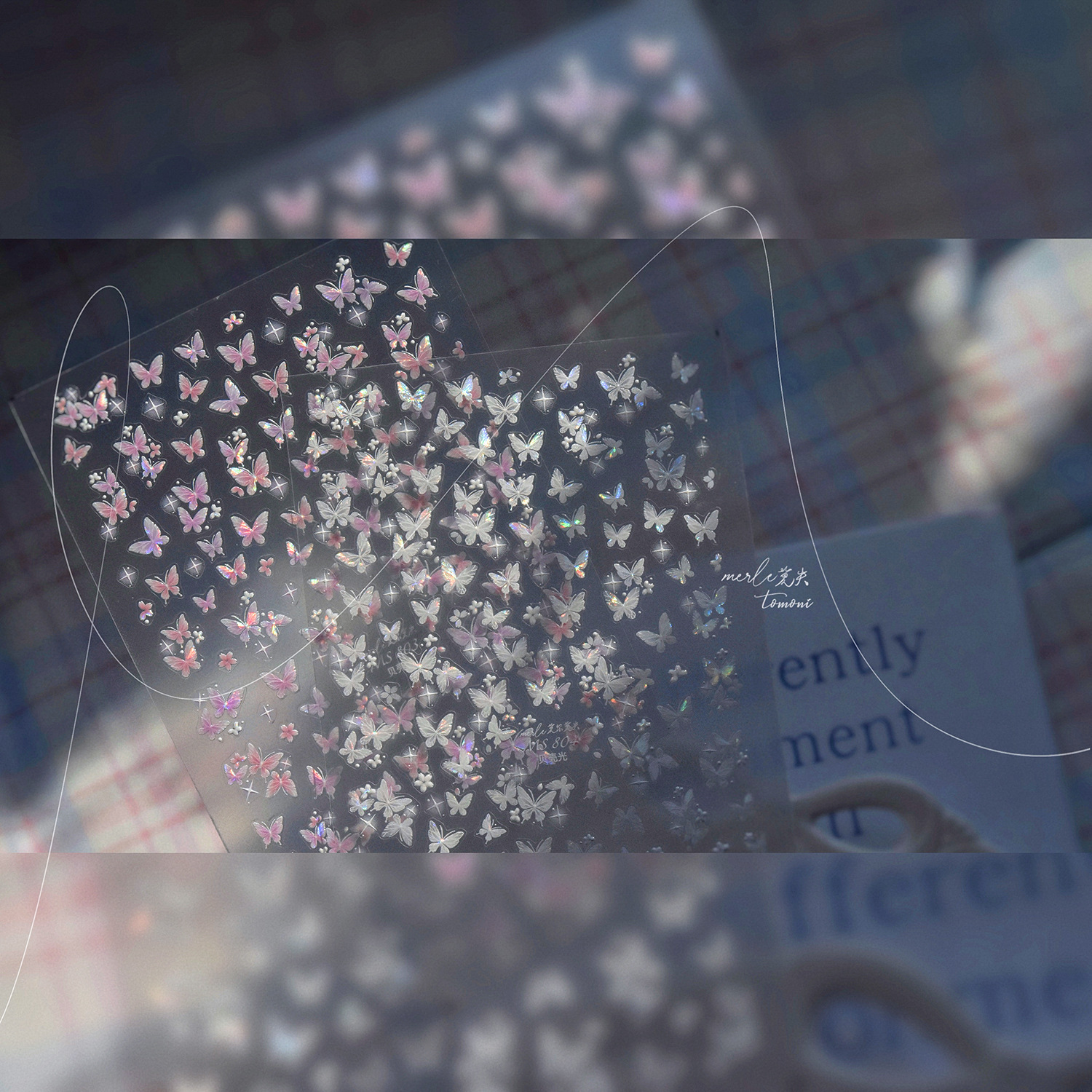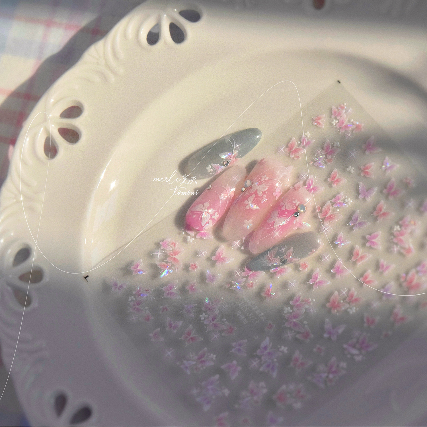 Nail Art New Butterfly Fairy Qi Relief Shell Light Crystal Diamond Nail Sticker Mo Low Aurora Green Uñas Pegatinas