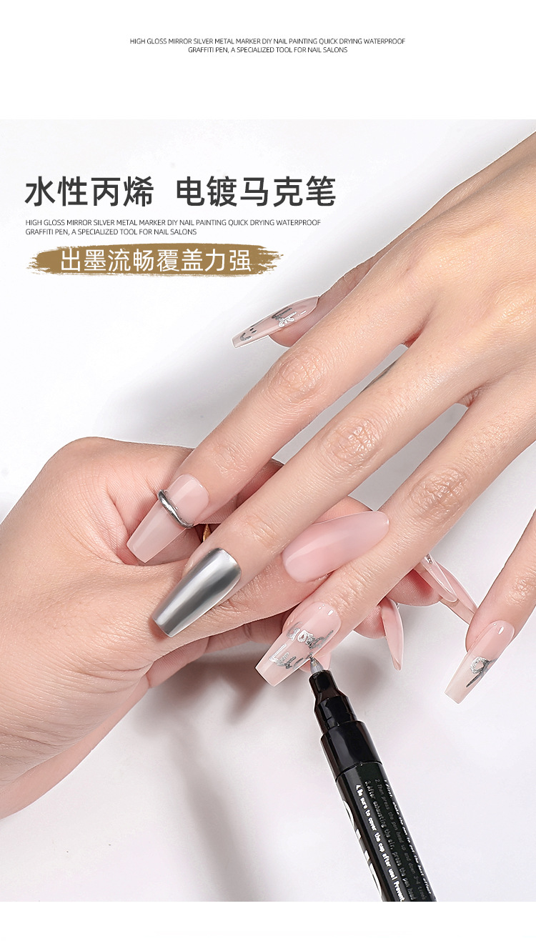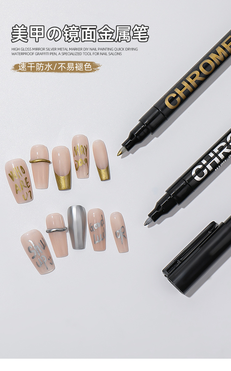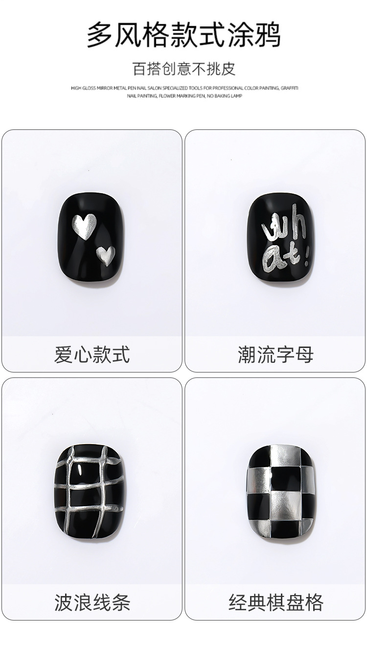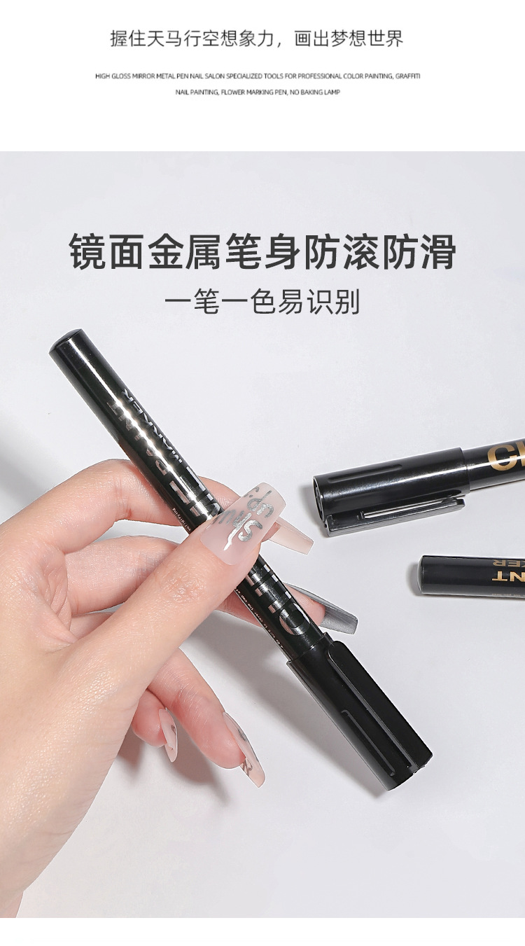 Espejo de alto brillo plateado metal marcado pinza DIY nail pintado rápido secado impermeable pinza graffiti tienda de uñas especial al por mayor