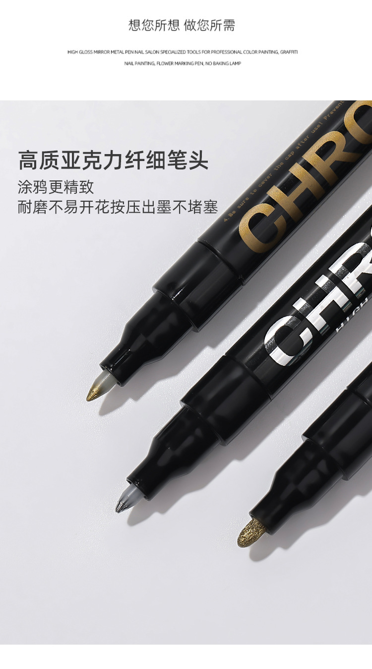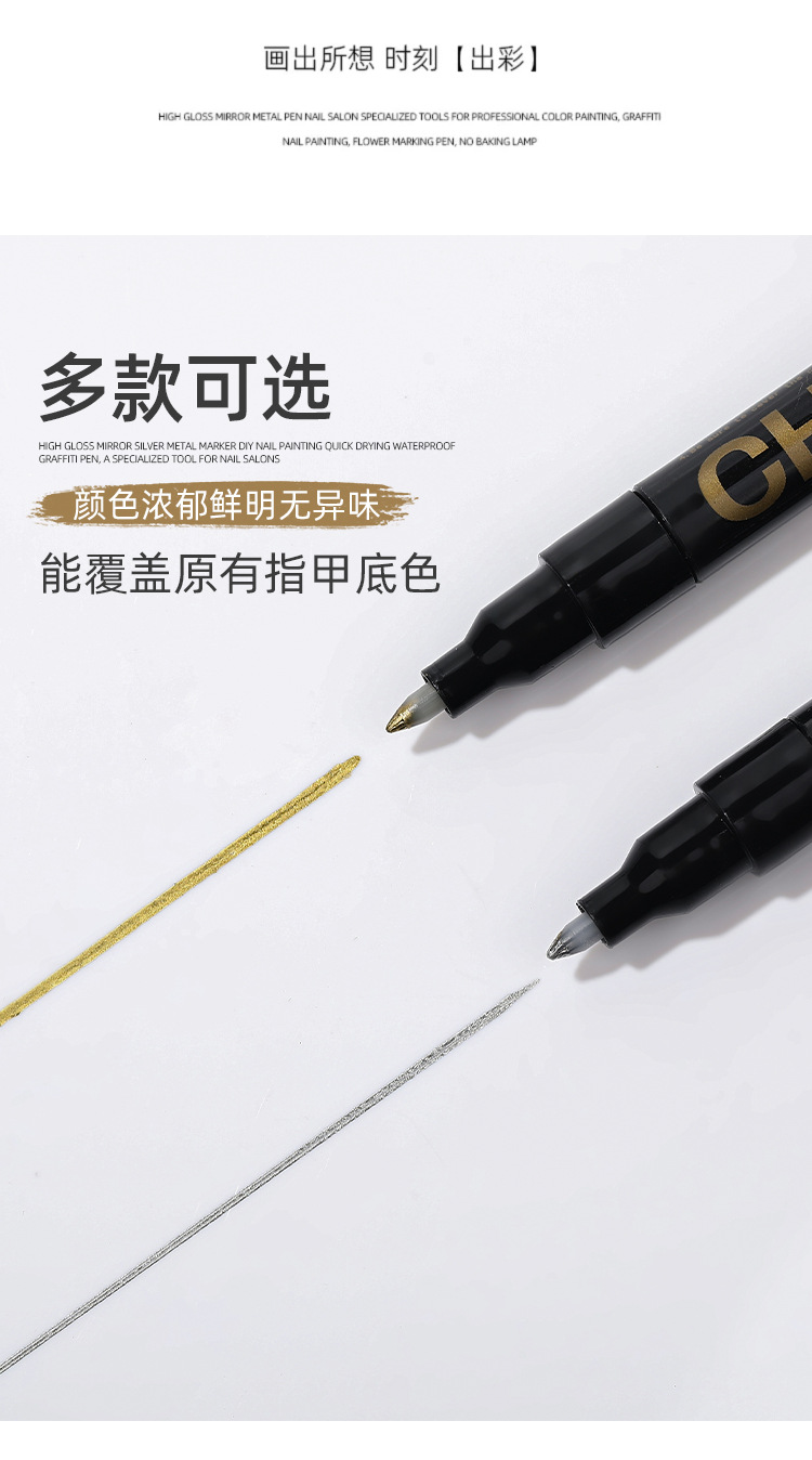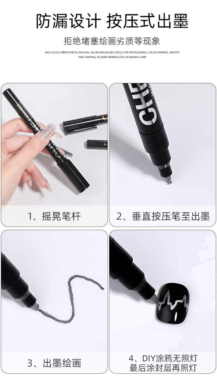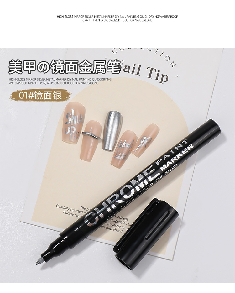 Espejo de alto brillo plateado metal marcado pinza DIY nail pintado rápido secado impermeable pinza graffiti tienda de uñas especial al por mayor