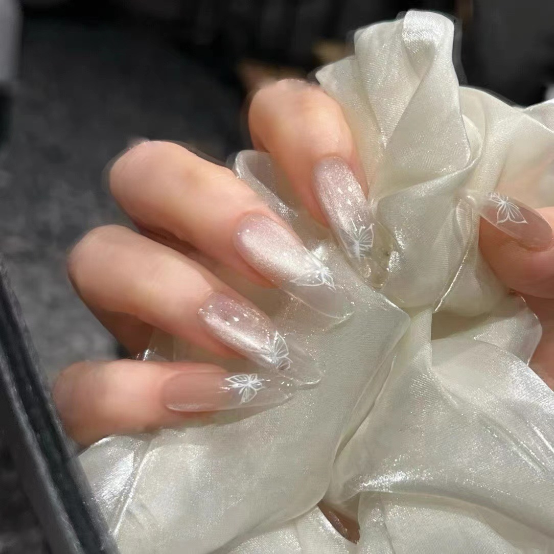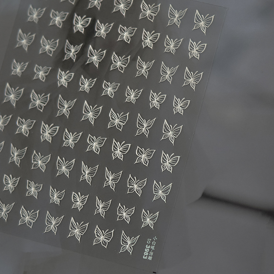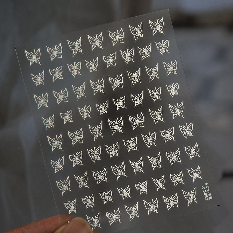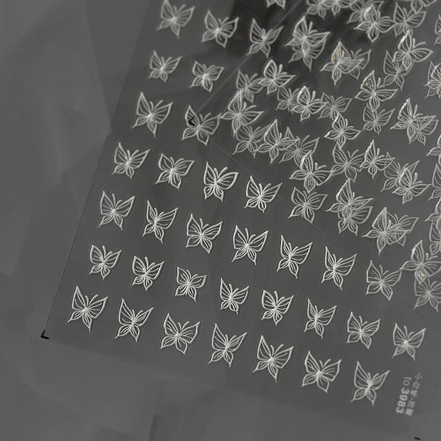 Nuevos pegatinas de uñas mariposa blanca en relieve estereoscópico pintado pegatinas de uñas mariposa explosión arco japonés al por mayor