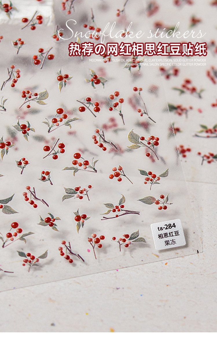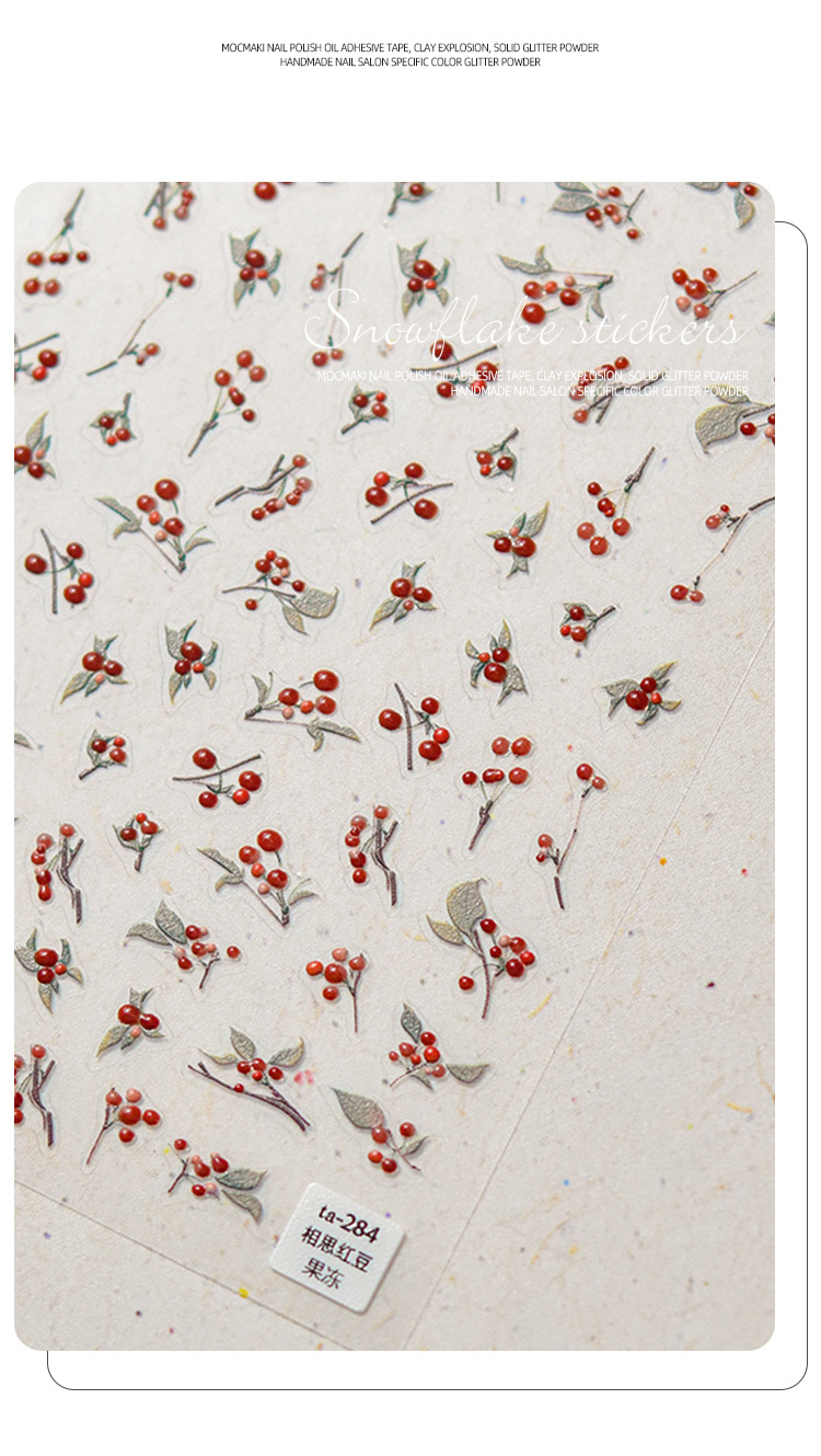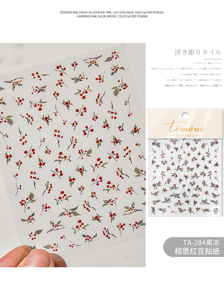 Nuevo estilo nacional acacia frijoles rojos pegatinas de uñas nueva acuarela en relieve pegatinas de uñas en relieve nacionales al por mayor