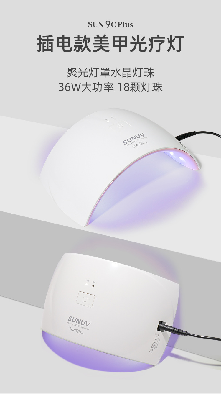 SUN9C PLUS Lámpara de manicuras Lámpara de asado UV 36W no negro enchufe de uñas Lámpara de fototerapia de manicuras especial al por mayor