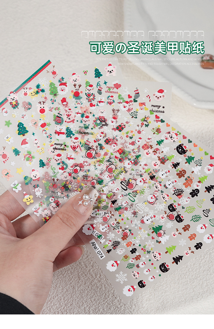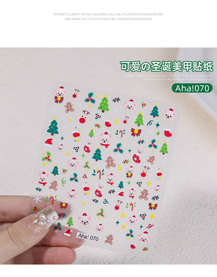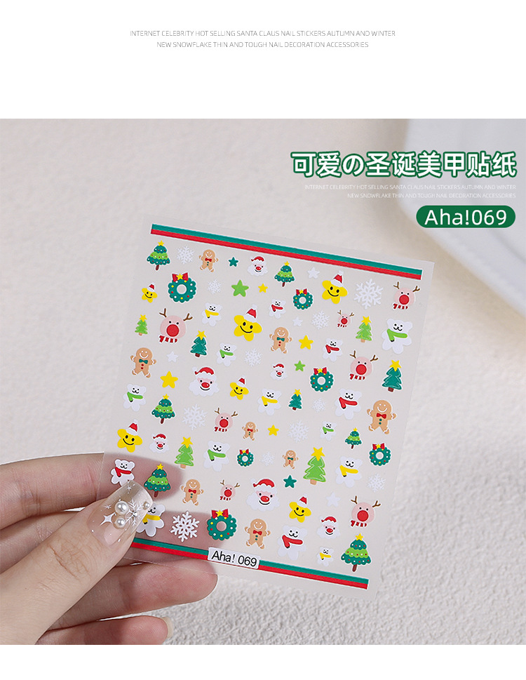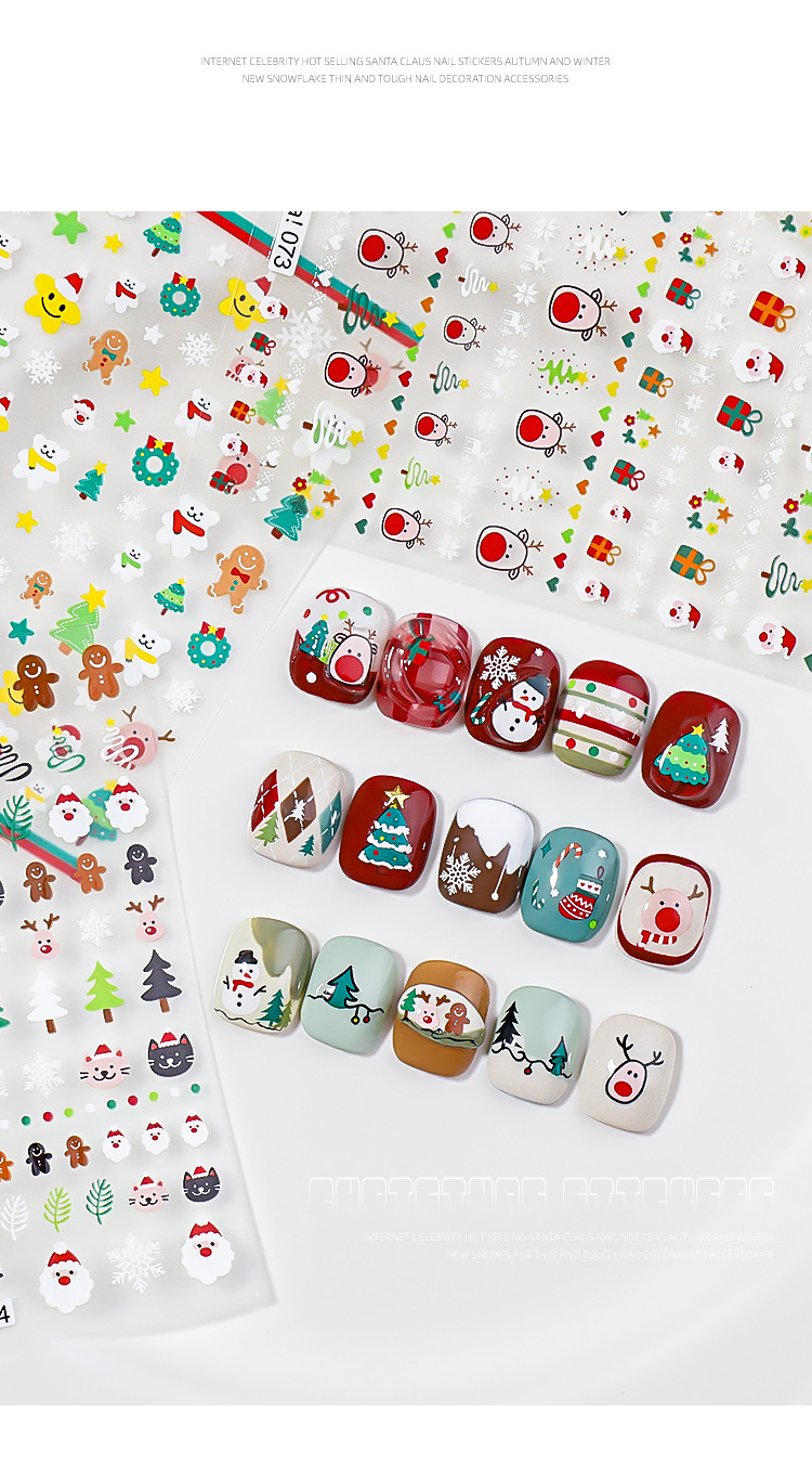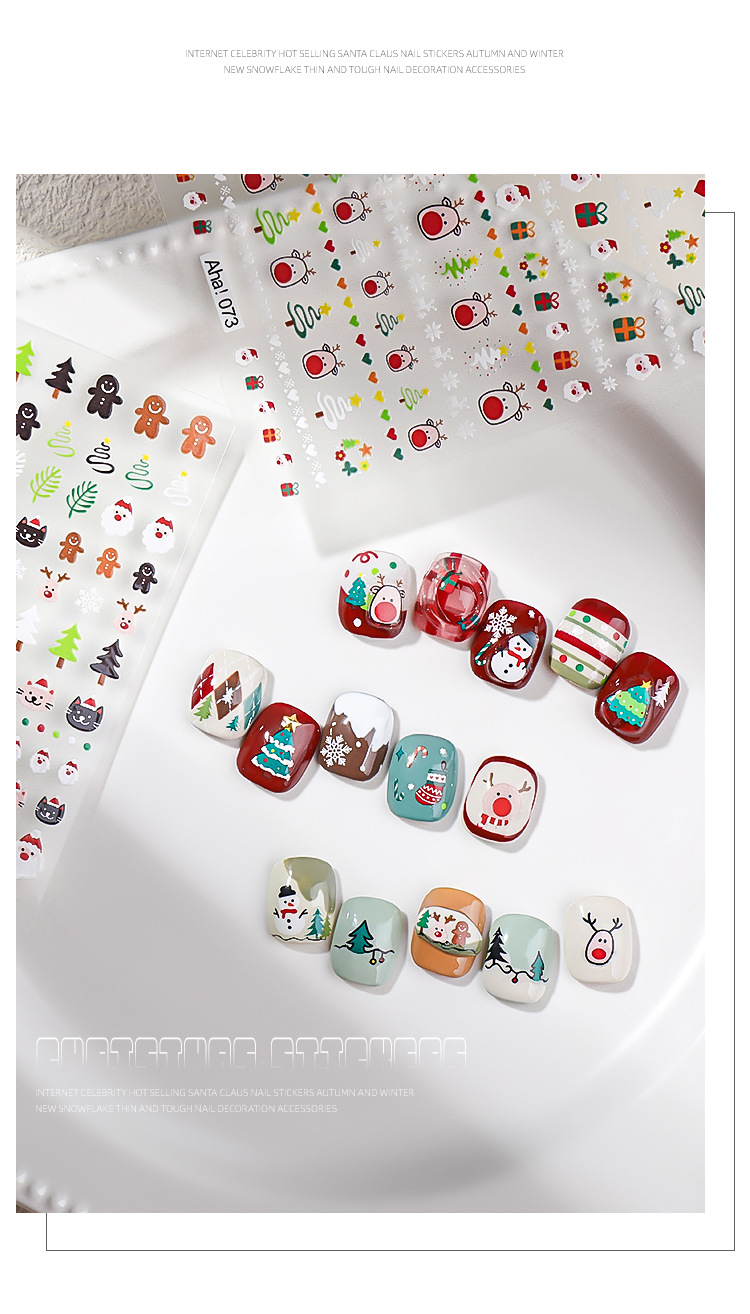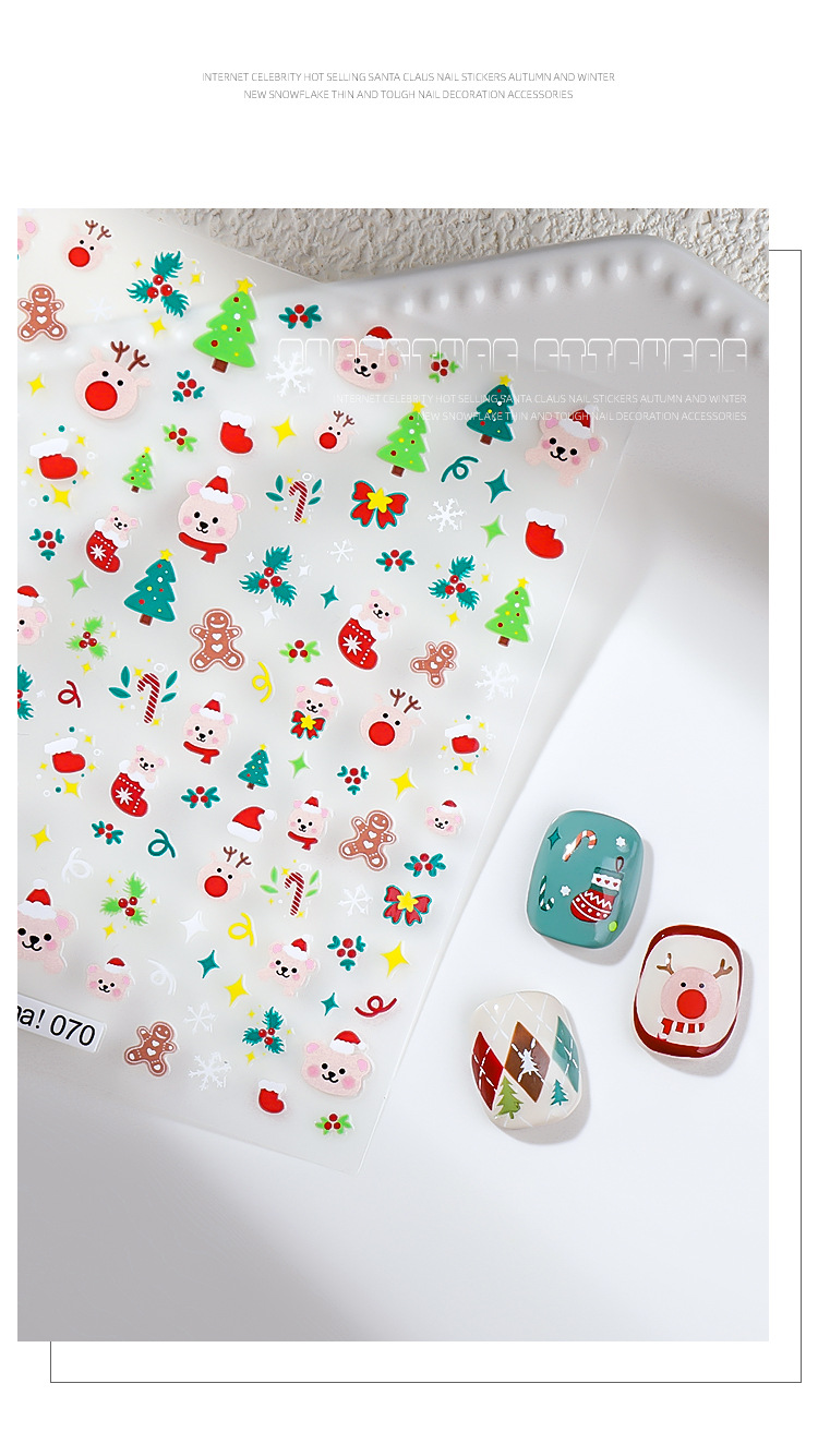 Pegatinas de uñas en relieve Navidad muñeco de nieve copo de nieve Santa Claus 3D tridimensional Internet celebridad pegamento de uñas parche decorativo al por mayor