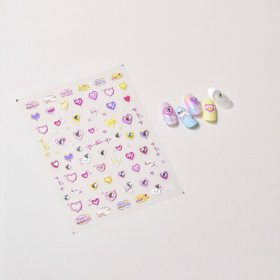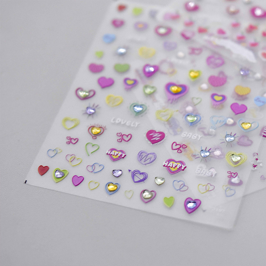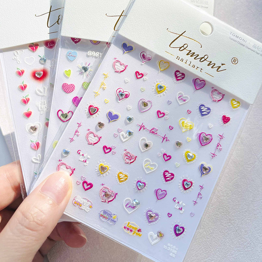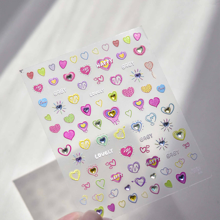 Cristal diamante uñas pegatinas lindo amor color pretty Girl uñas pegatinas fábrica al por mayor Rosa amor con diamante