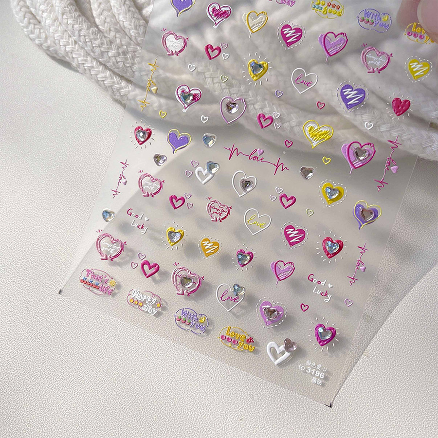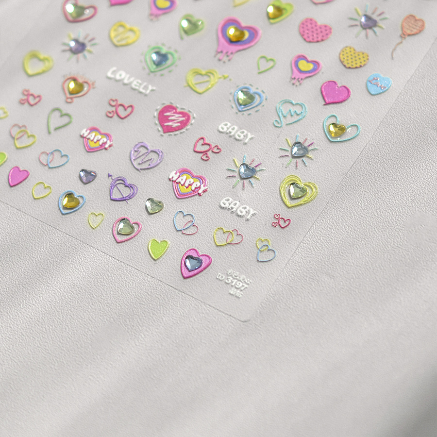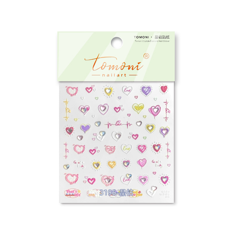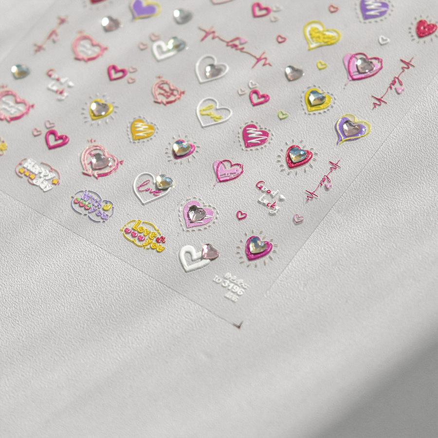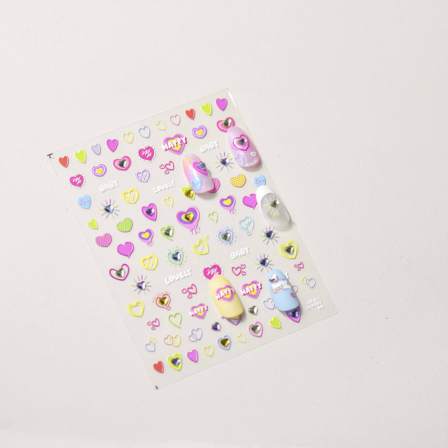 Cristal diamante uñas pegatinas lindo amor color pretty Girl uñas pegatinas fábrica al por mayor Rosa amor con diamante
