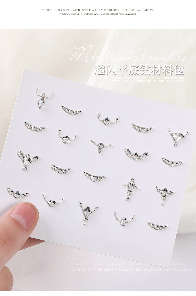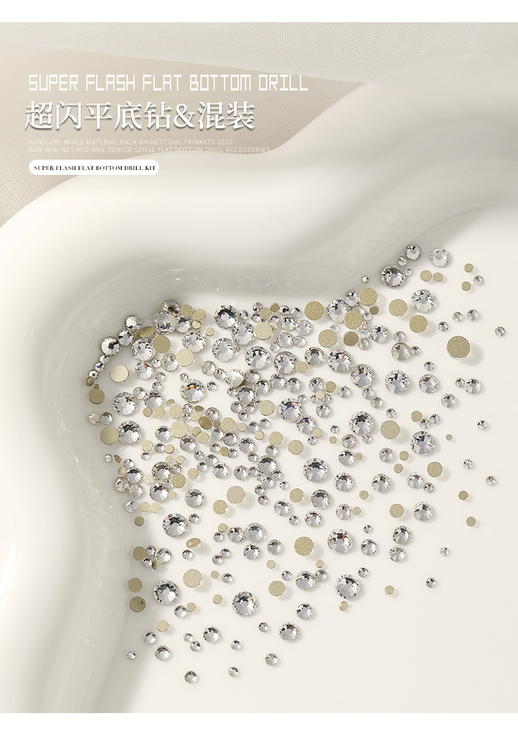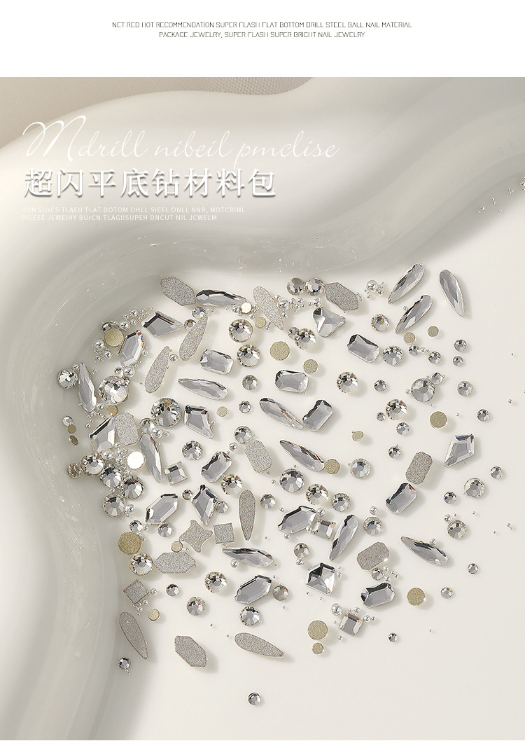 | Especificaciones | Paquete de material de diamante plano,Muy pequeño diamante blanco mezclado 100 piezas,Muy pequeño diamante blanco mezclado 50 piezas,Alrededor de 300 diamantes redondos planos mezclados,Plata bola de acero mezclado |