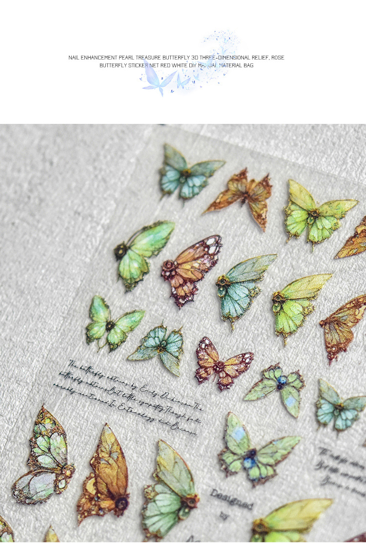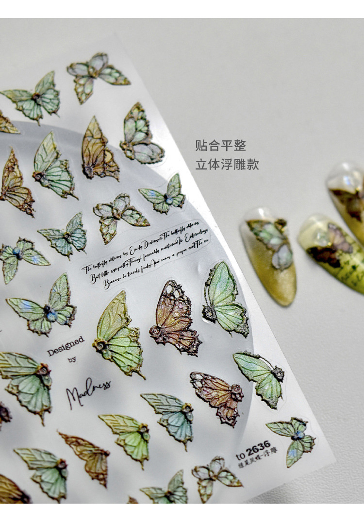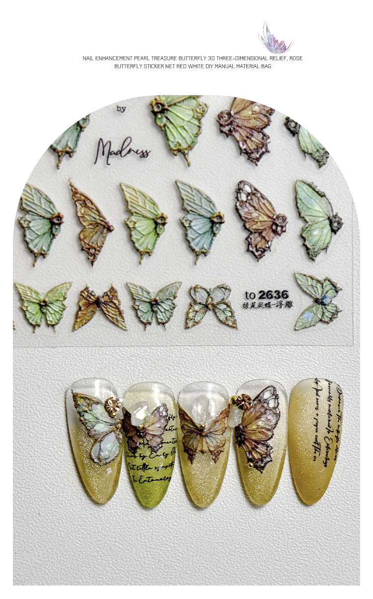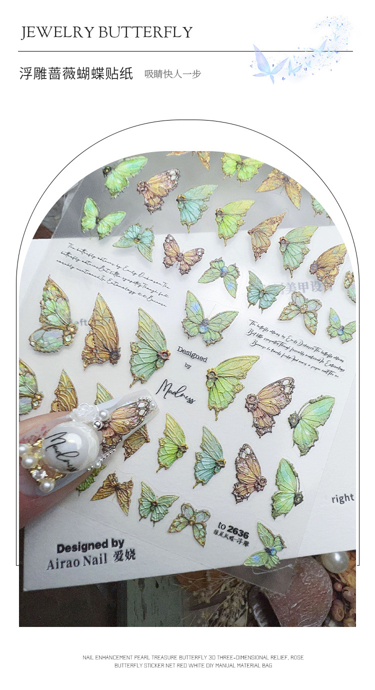Pequeño libro rojo estilo caliente cabeza de clase Aurora mariposa pegatinas de uñas INS viento jade blanco pegatinas de uñas de mariposa armadura de bricolaje
