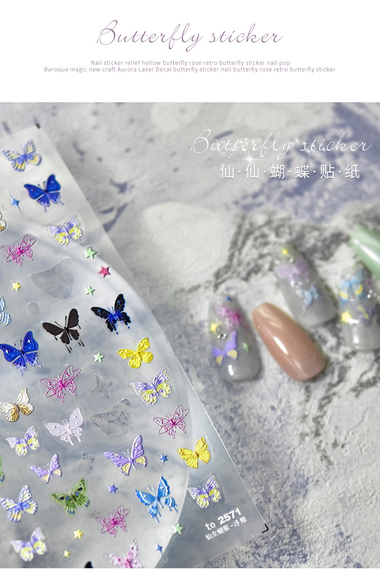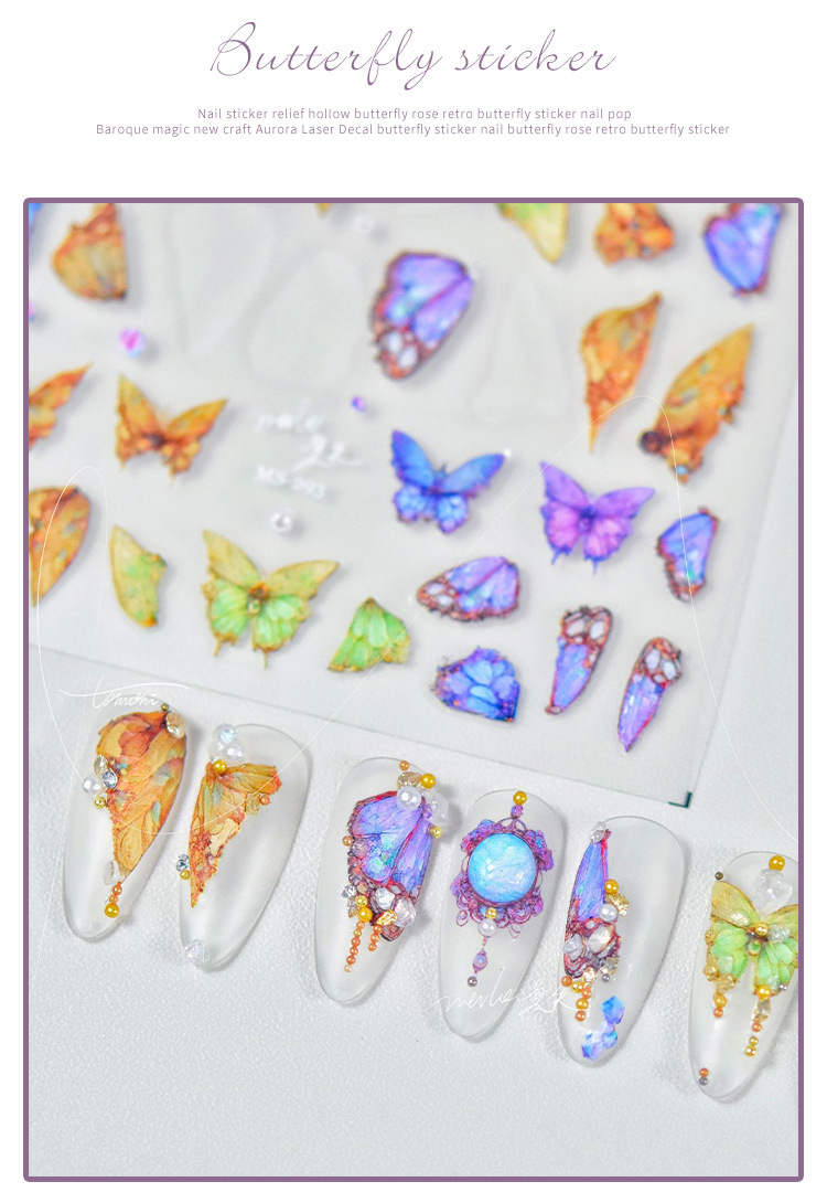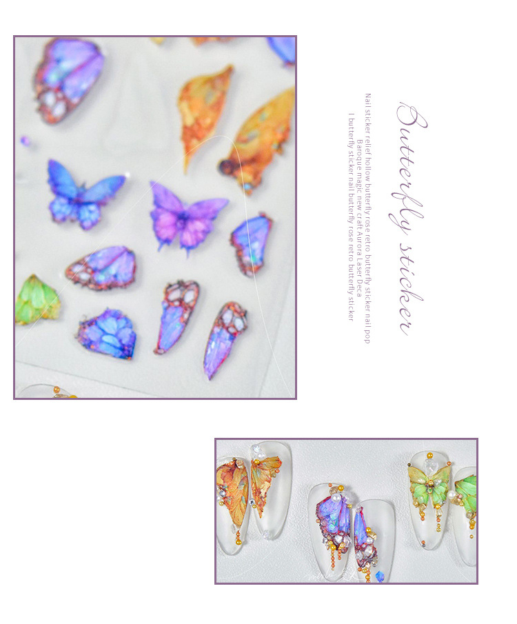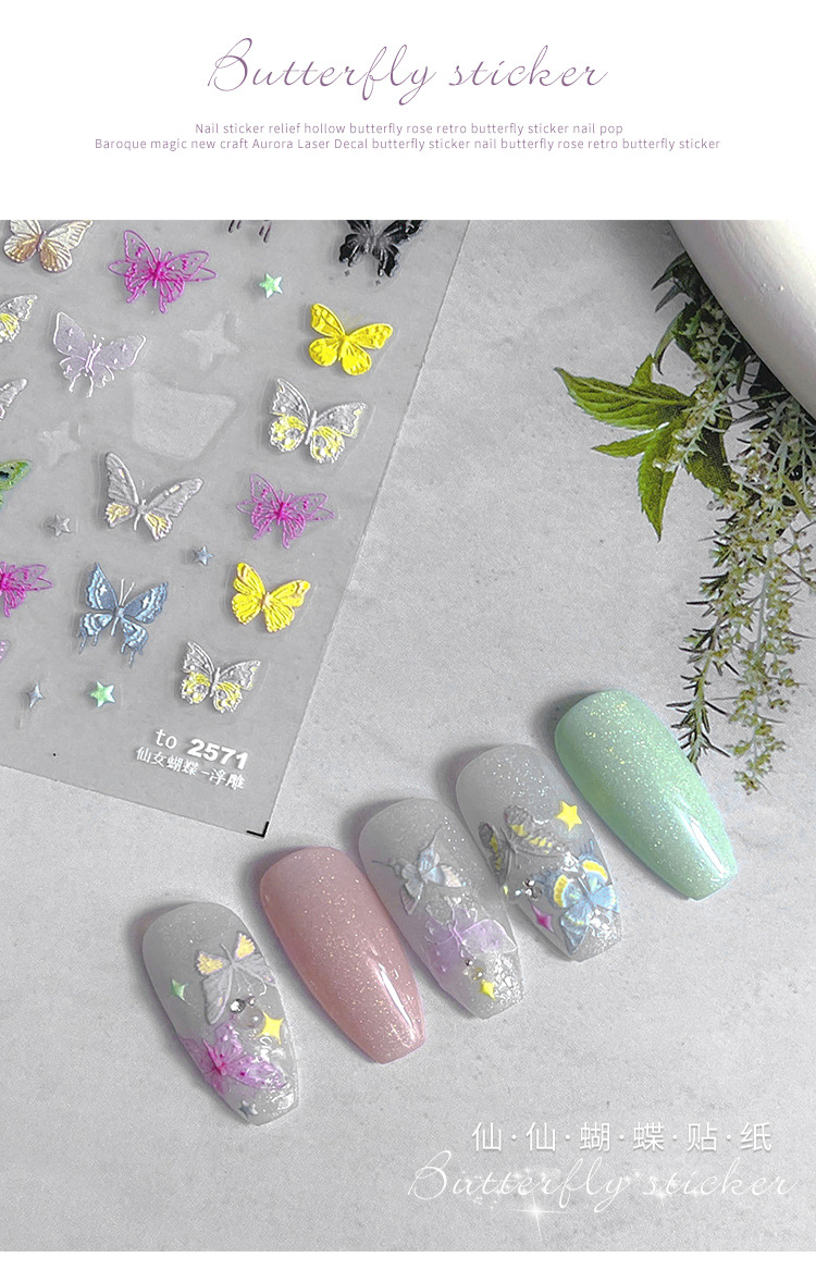 Manicura pegatinas de alto grado sentido Hada mariposa Super Hada tridimensional alivio japonés Internet celebridad caliente empuje seco Rosa verde planta