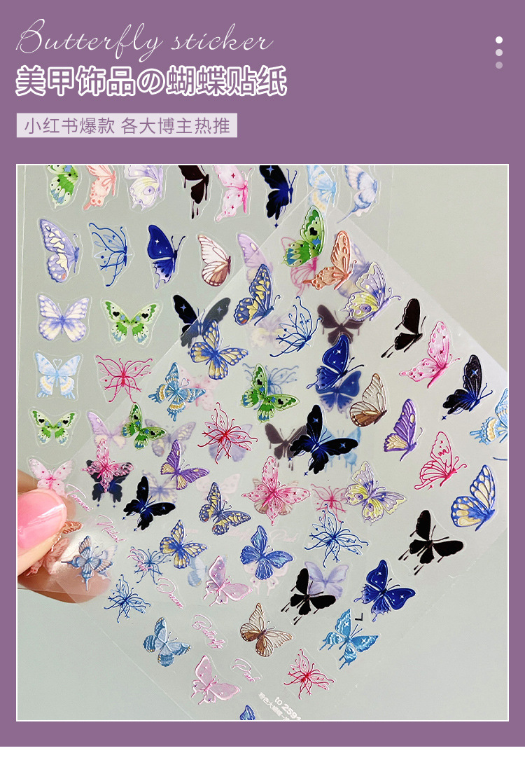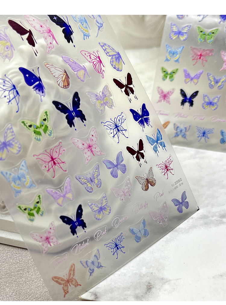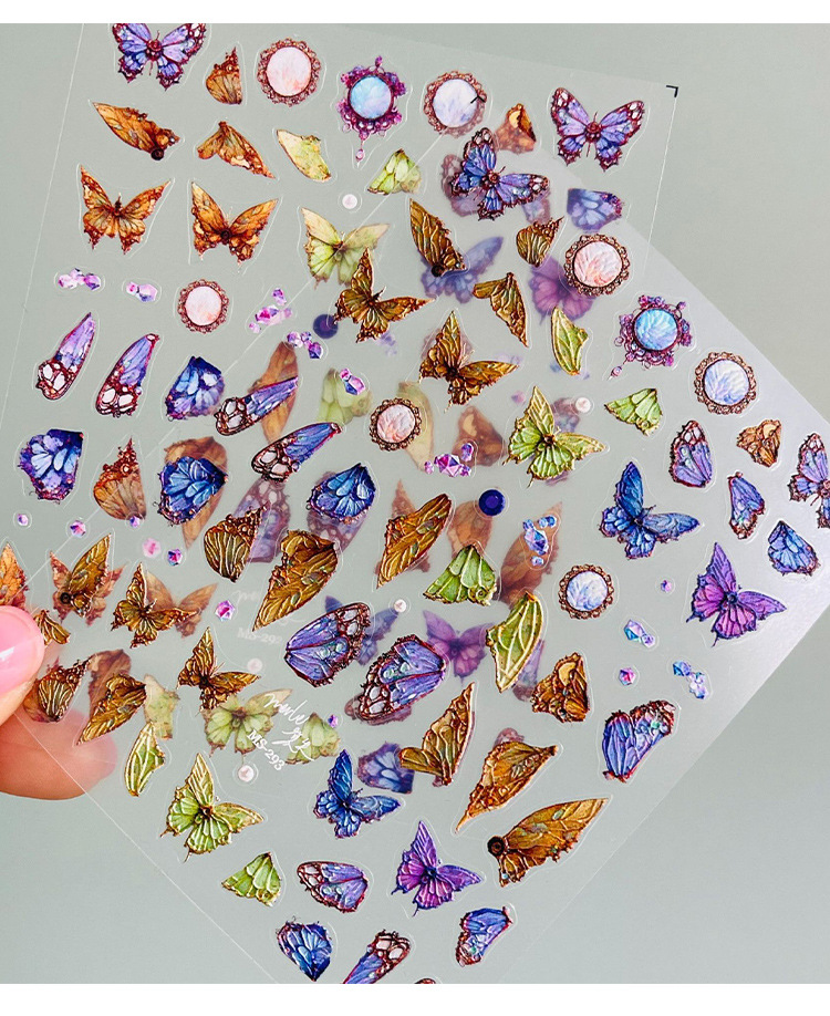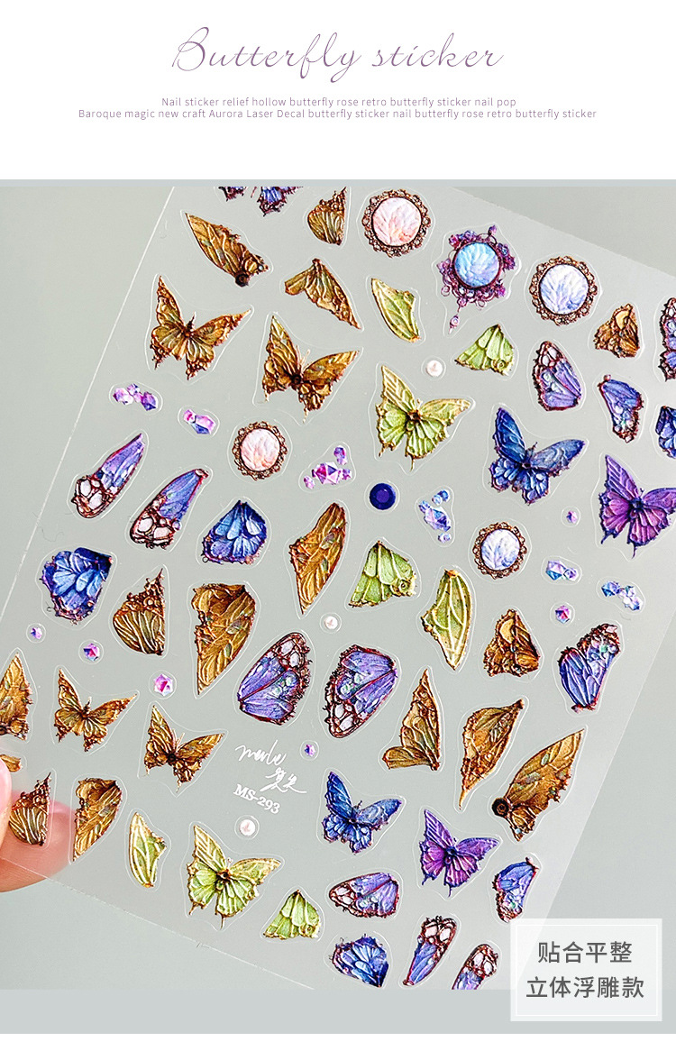 Manicura pegatinas de alto grado sentido Hada mariposa Super Hada tridimensional alivio japonés Internet celebridad caliente empuje seco Rosa verde planta