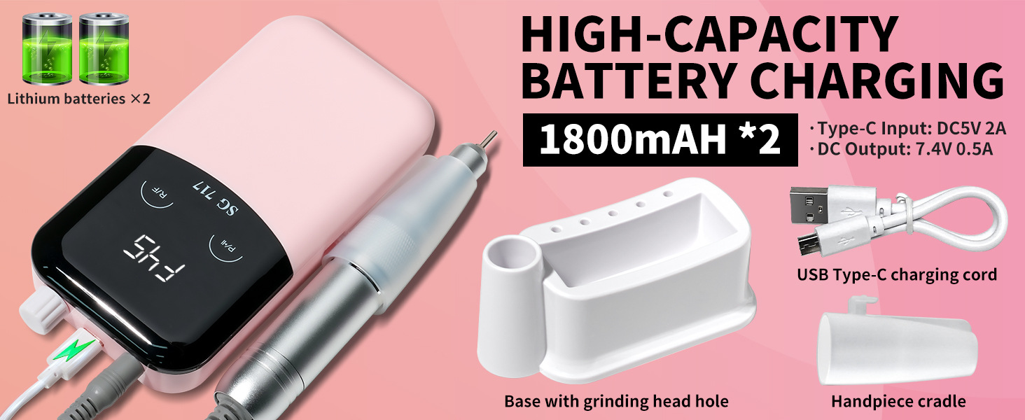 Nuevo tipo de amolador de uñas doméstico de almacenamiento eléctrico amolador de uñas especial 45000RPM amolador de uñas de velocidad ajustable