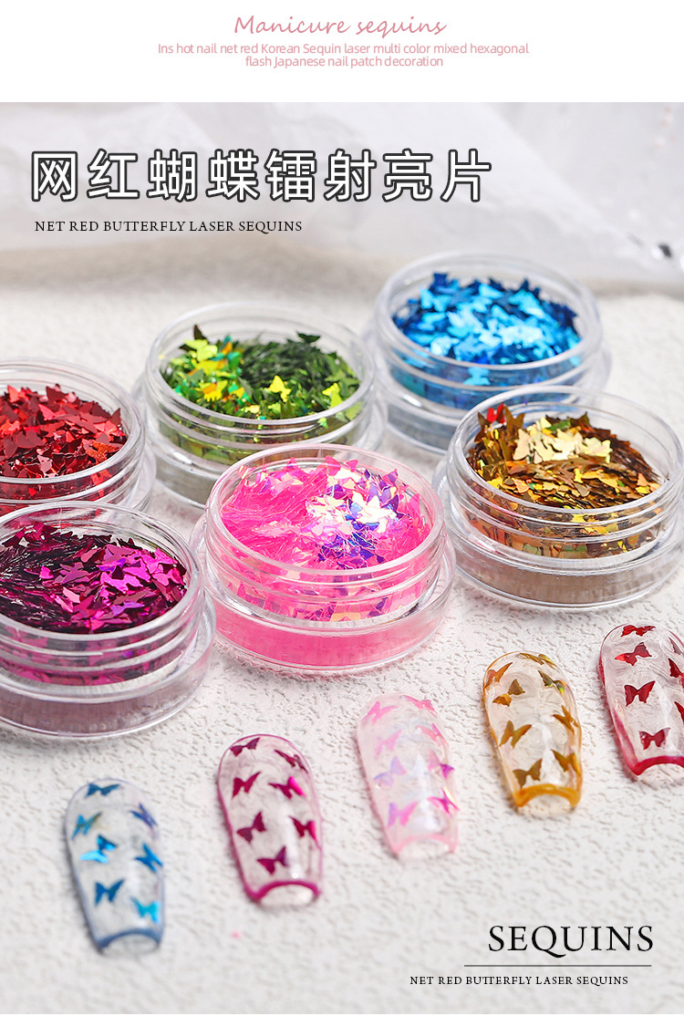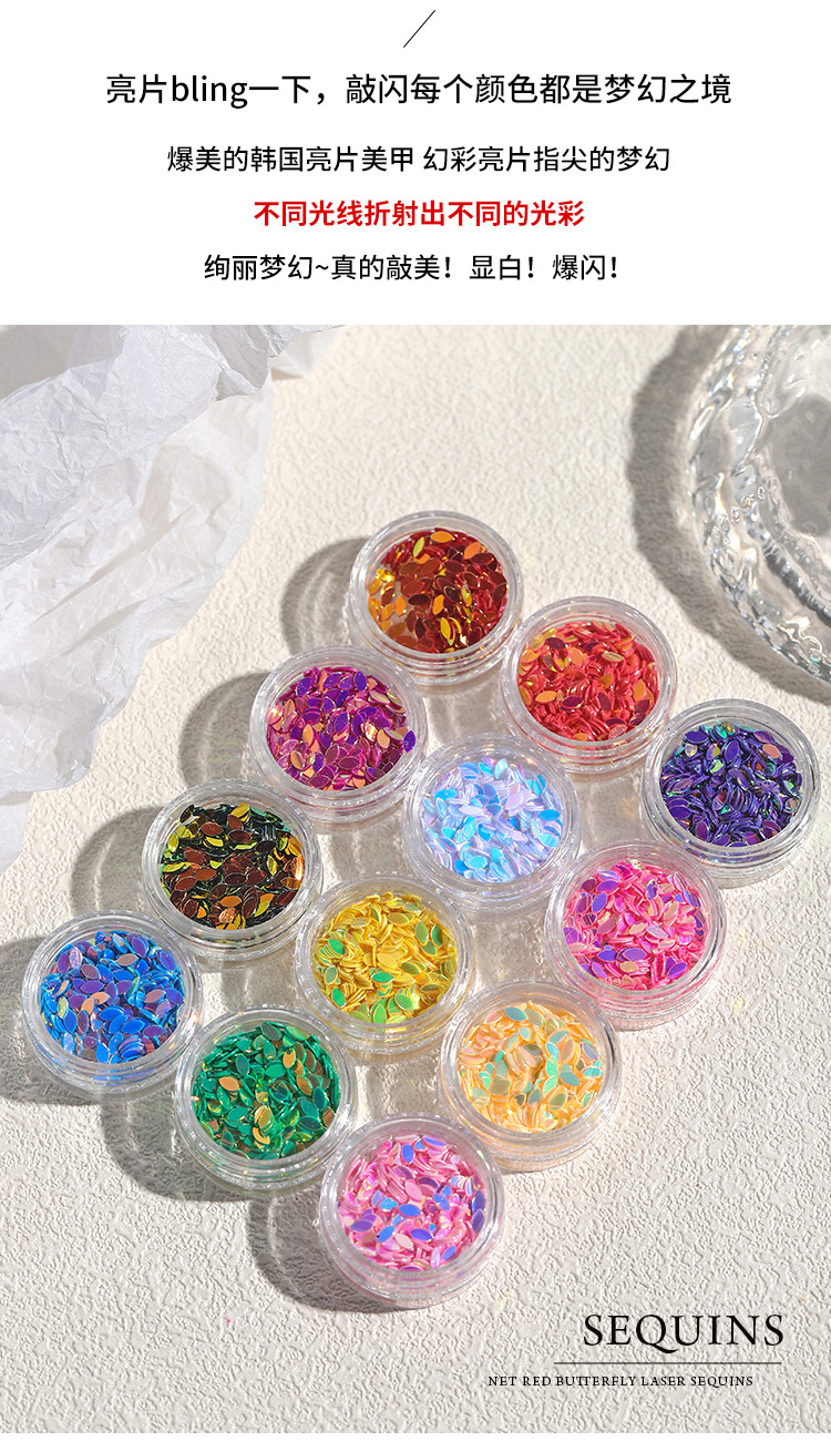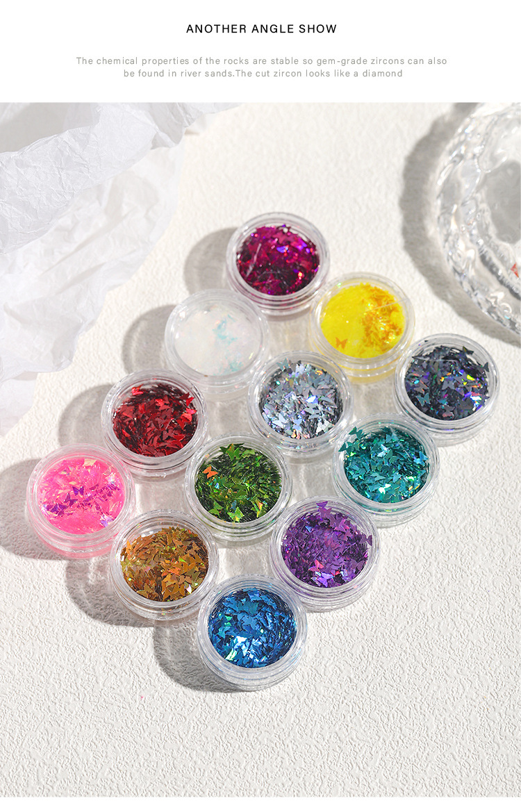 | Especificaciones | 01 #12 rejilla láser largo,02 #12 lentejuelas de ojo de caballo de rejilla,03 #12 mariposa rejilla |
