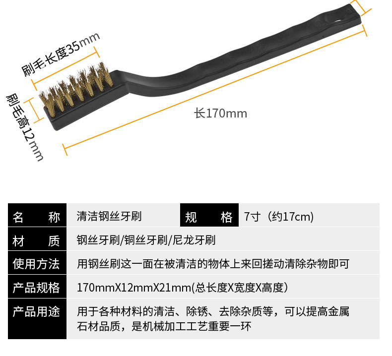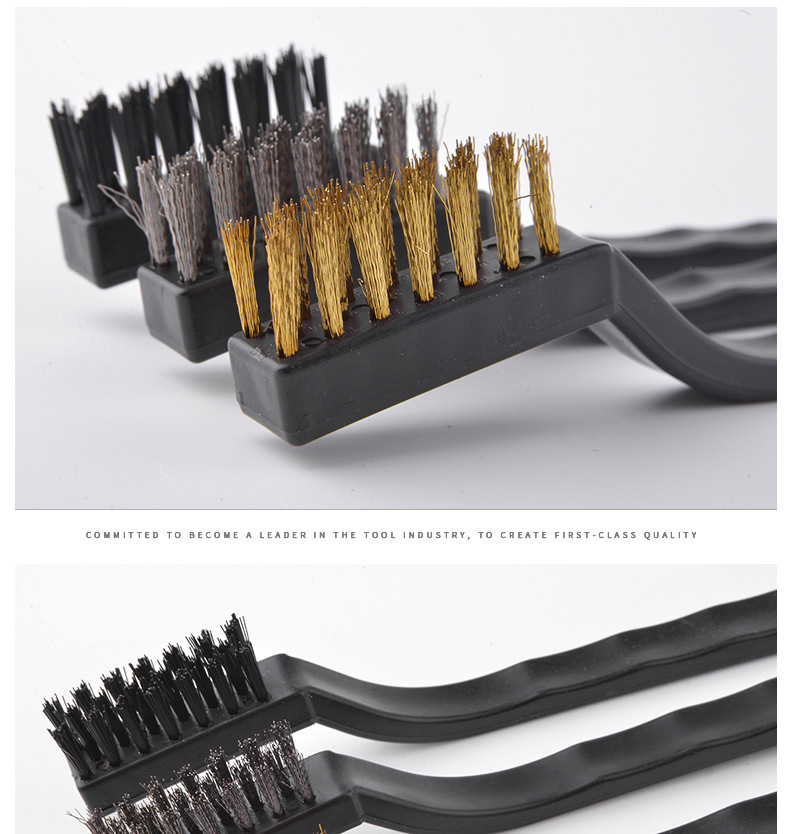 | Especificaciones | Tres juegos (uno cada uno), cepillo de dientes de alambre de acero de mango negro, cepillo de dientes de alambre de cobre de mango negro, cepillo de dientes de nylon de mango negro |