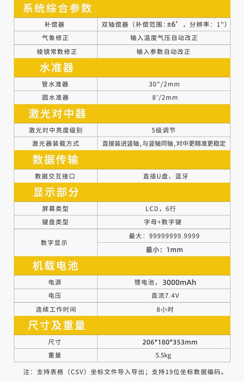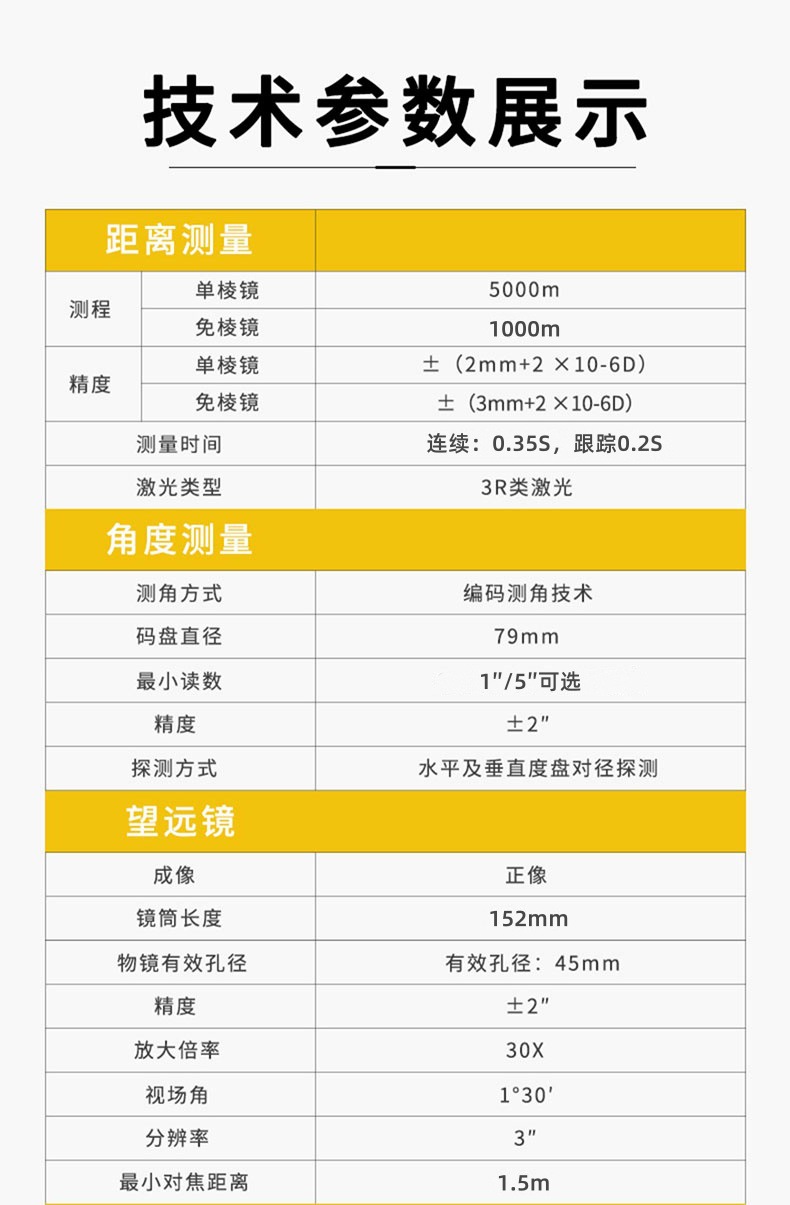| Especificaciones | Estándar oficial de la Estación total nts332r10, Estación total nts332r10 + barra de centro + Prism + trípode |