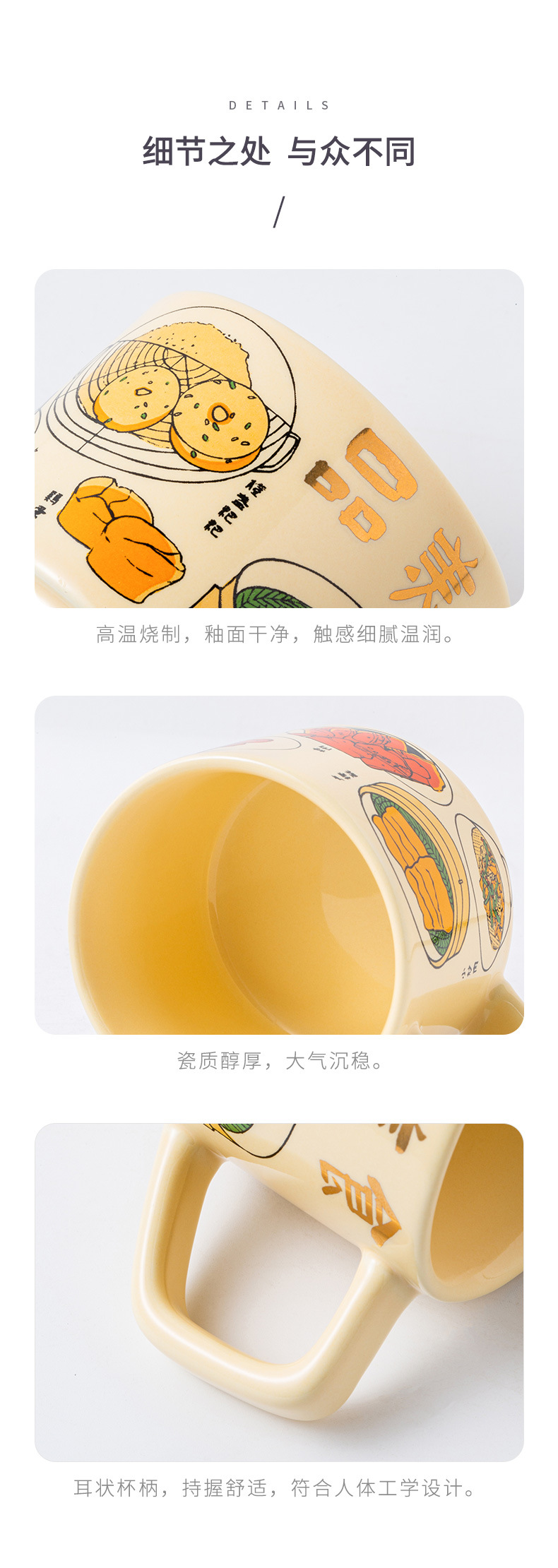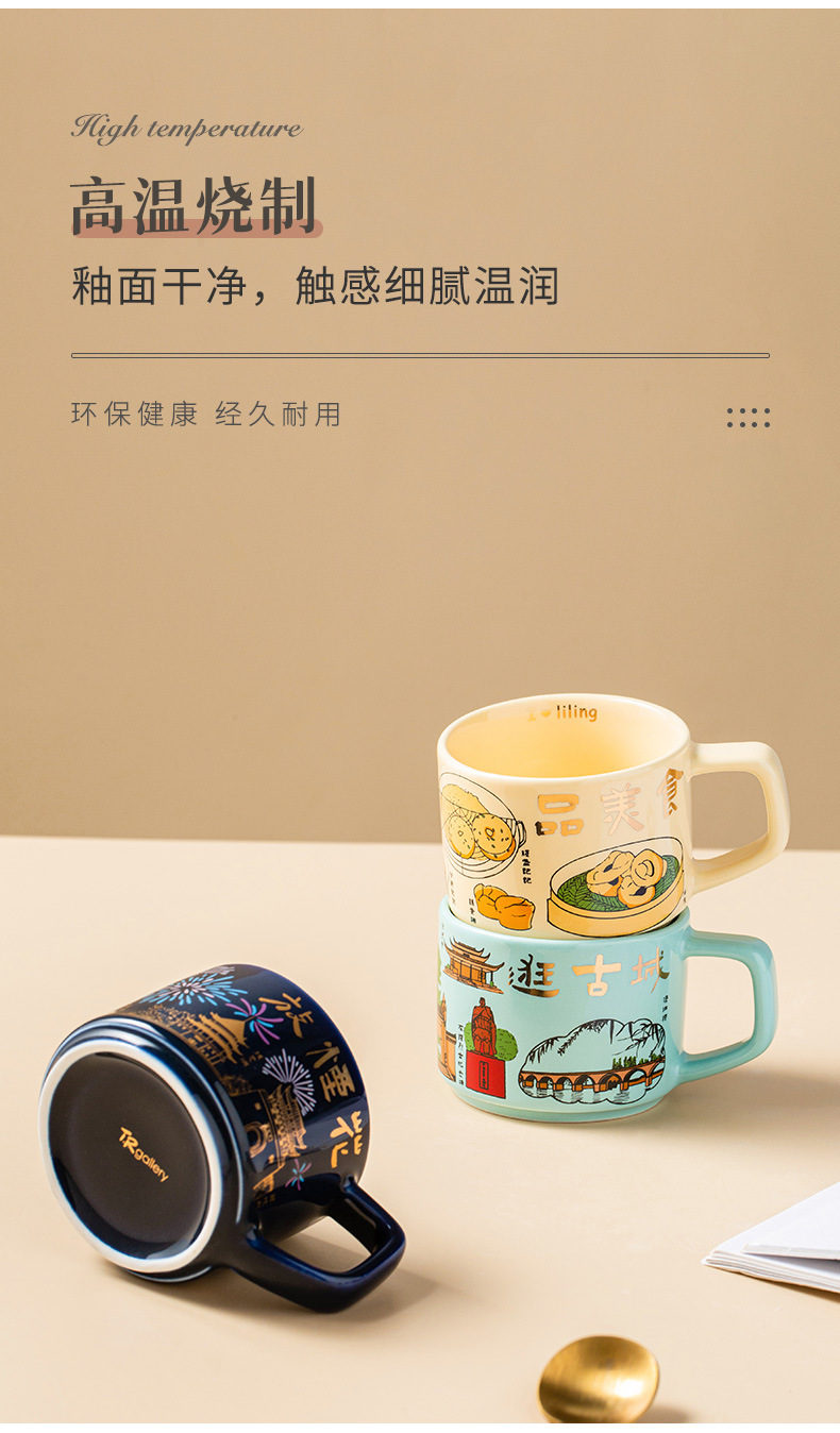 Con utensilios de comida de montaña y río, taza de fideos de corte de cerámica de estilo nórdico, taza de café de hotel personalizado, taza de pareja, regalo