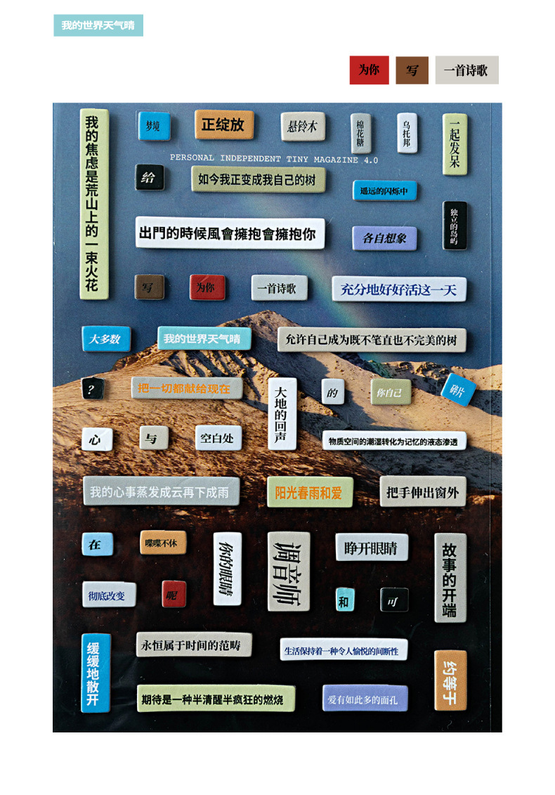 | Colores | Escribe un poema para ti,Tienes una larga carta en tus ojos,Dedicado a las cosas que te gustan,El viento es un río transparente |