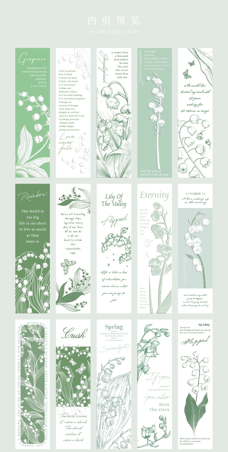 Mr. Paper bronceado PVC marcador renacimiento romántico valor alto ins flor lectura marca tarjeta lectura marcador