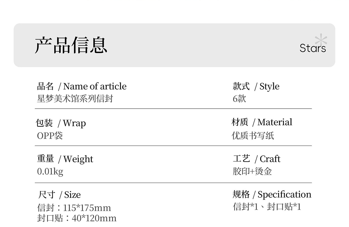 | Especificaciones | Sobre 1 Pegatinas de sellado 1 |